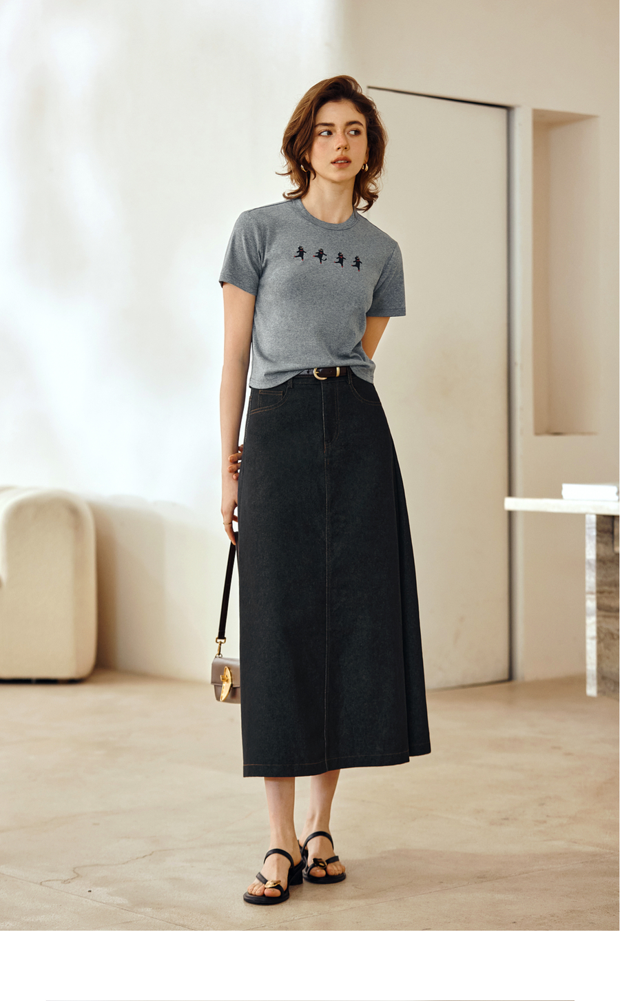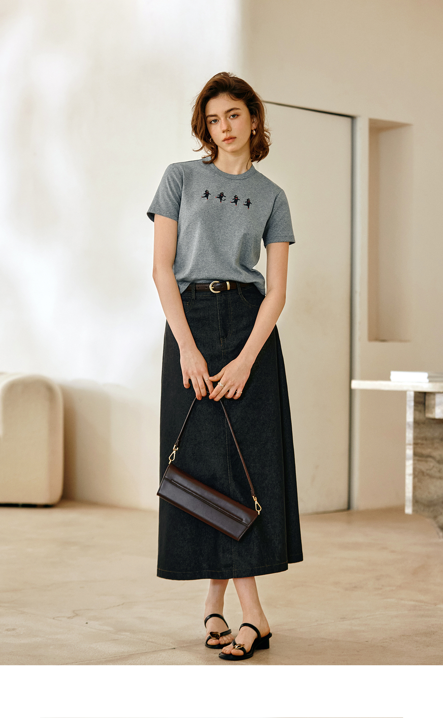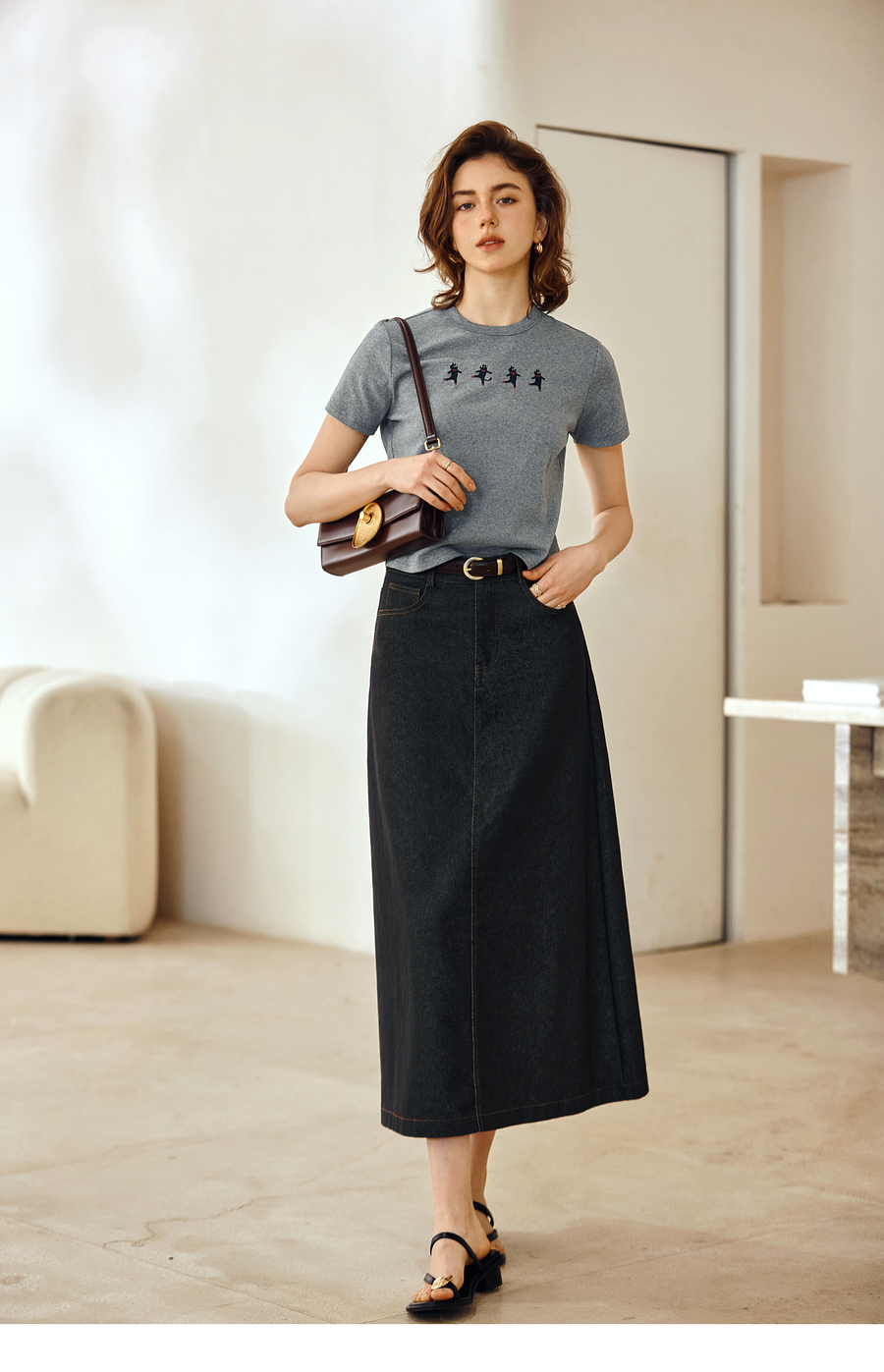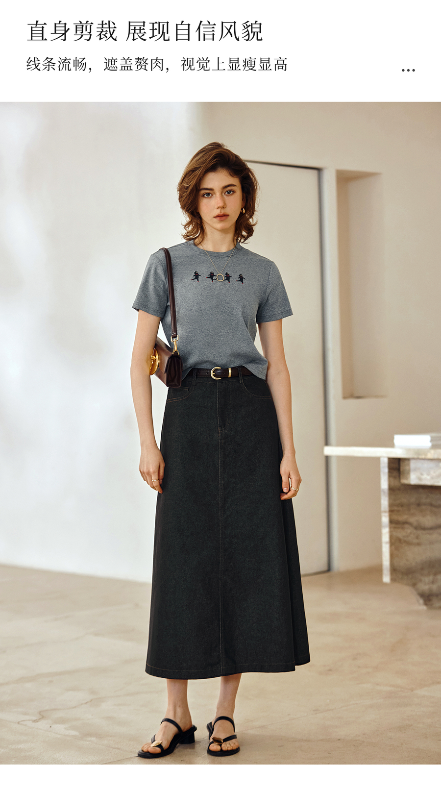 OLrain欧芮儿2025新款夏季猫咪趣味绣花正肩简约短袖T恤女上衣