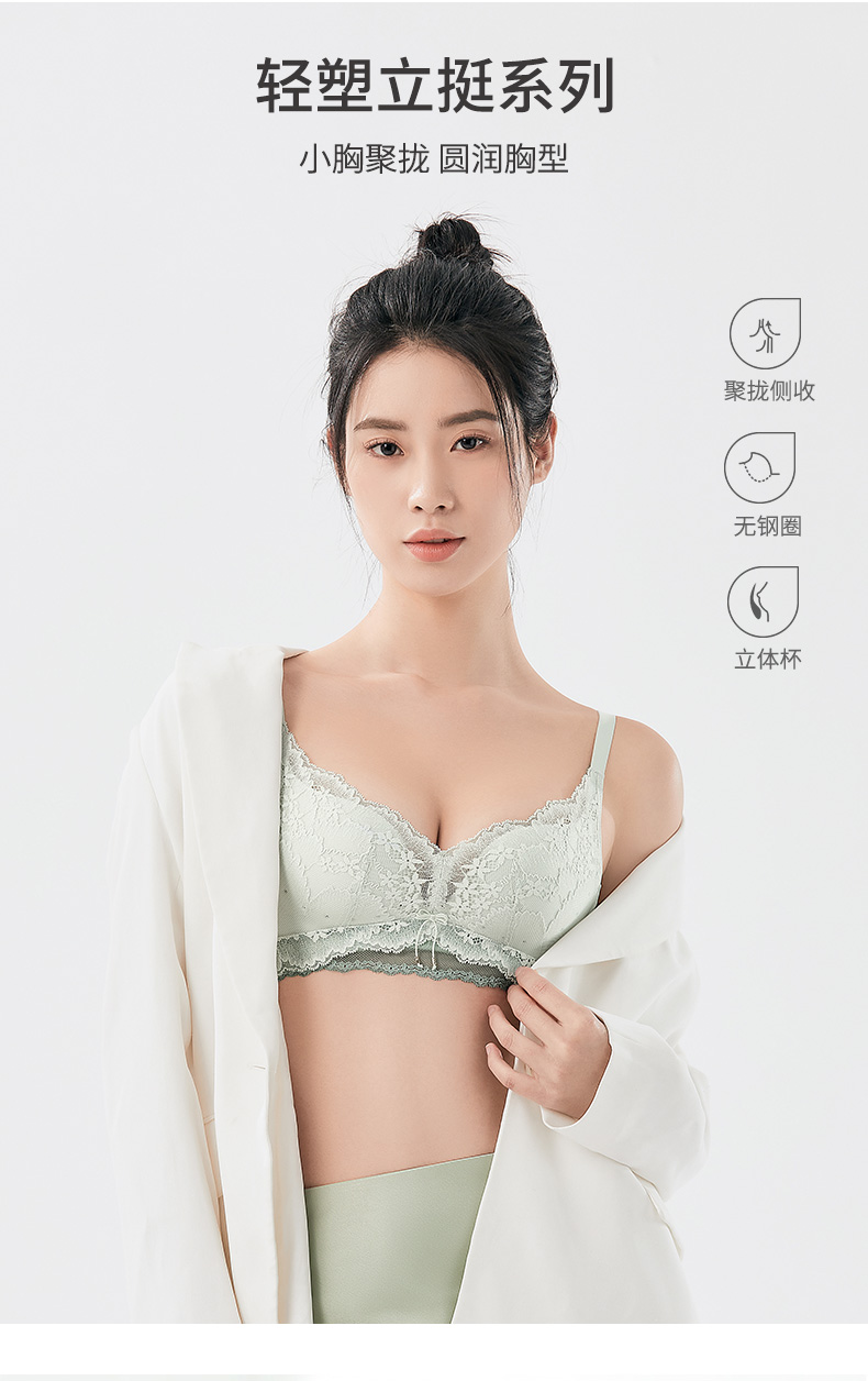 熳洁儿 呼吸洞洞杯小胸聚拢内衣轻塑立挺文胸性感蕾丝内衣22761533