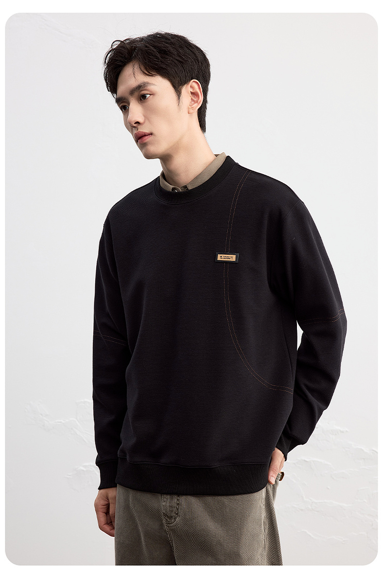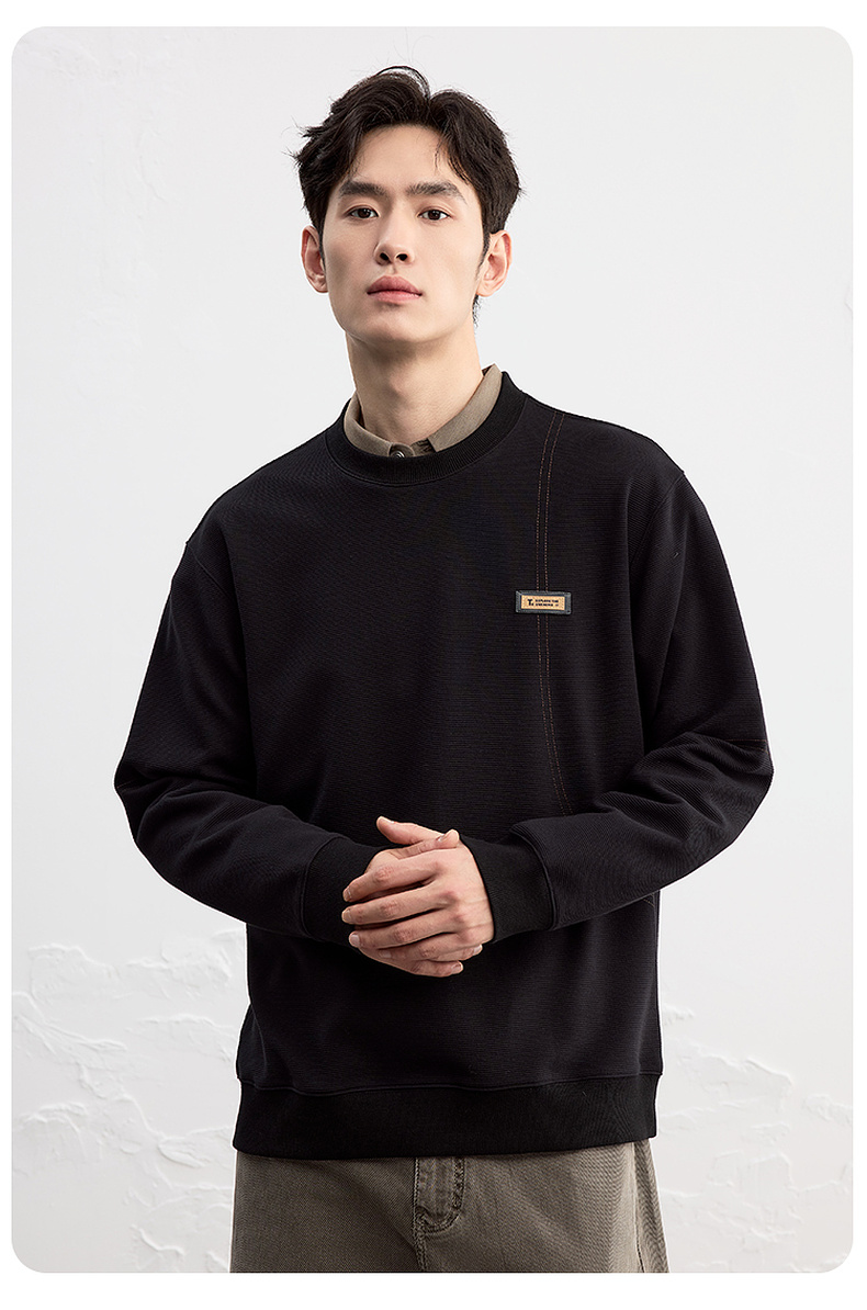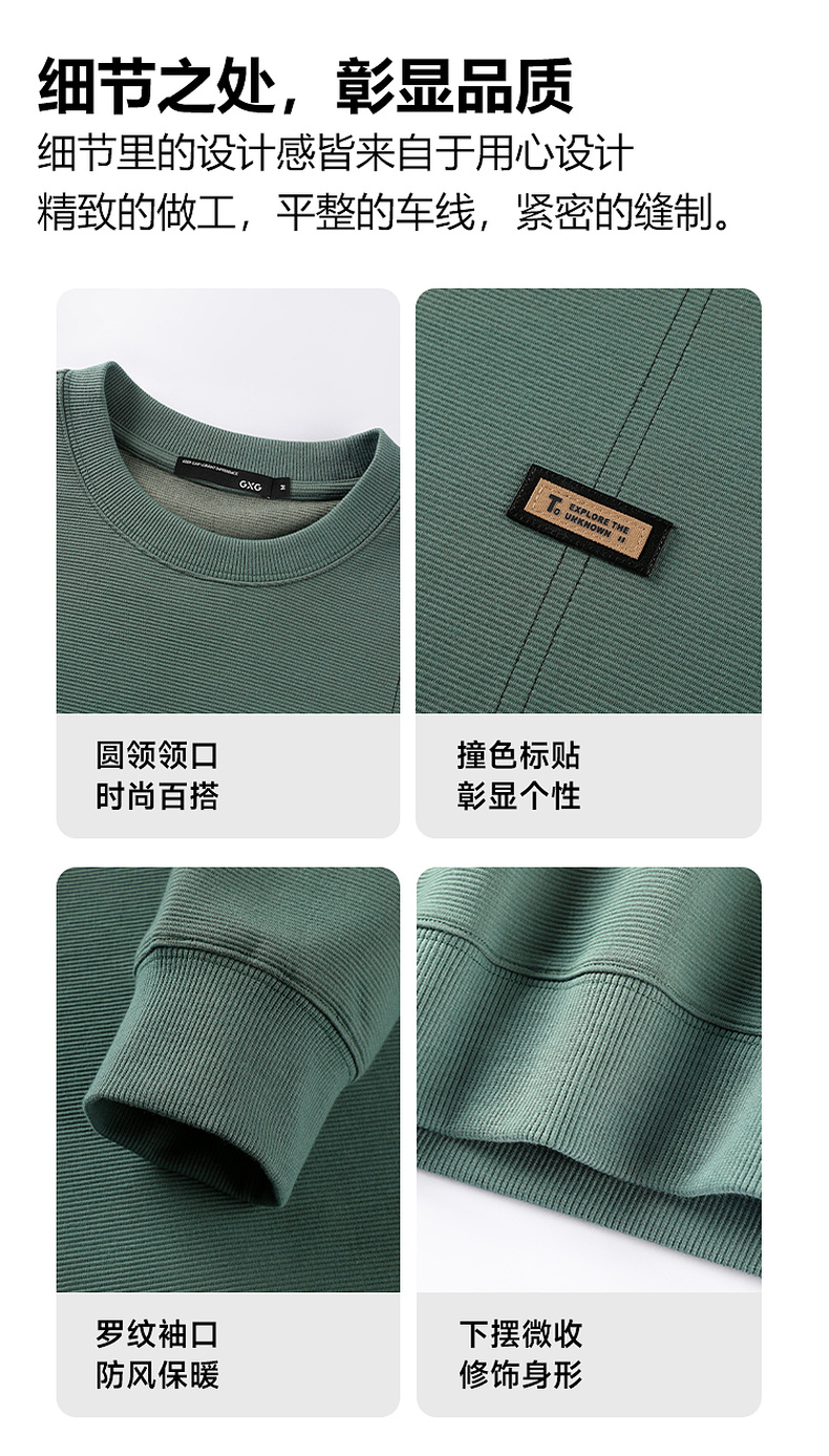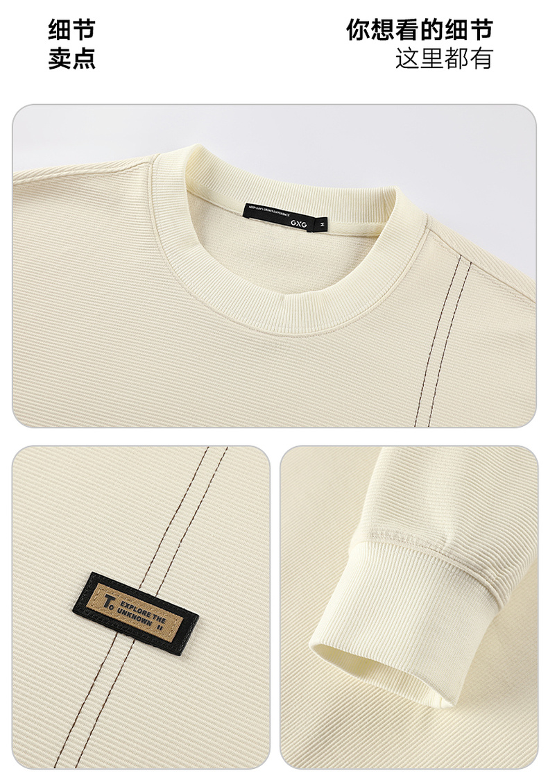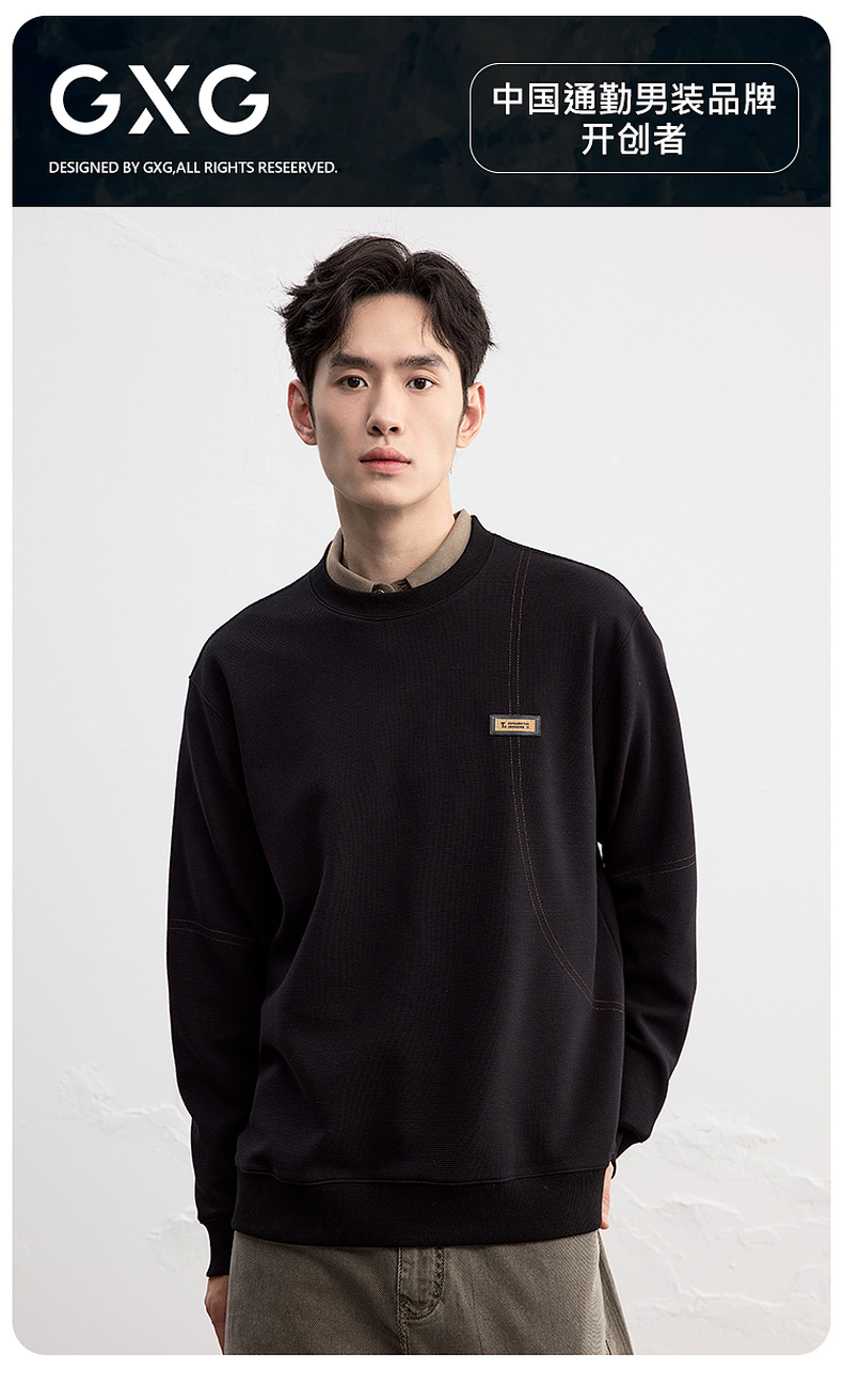 GXG男装【肌理质感】25秋季简约百搭运动宽松休闲男式圆领卫衣K&C