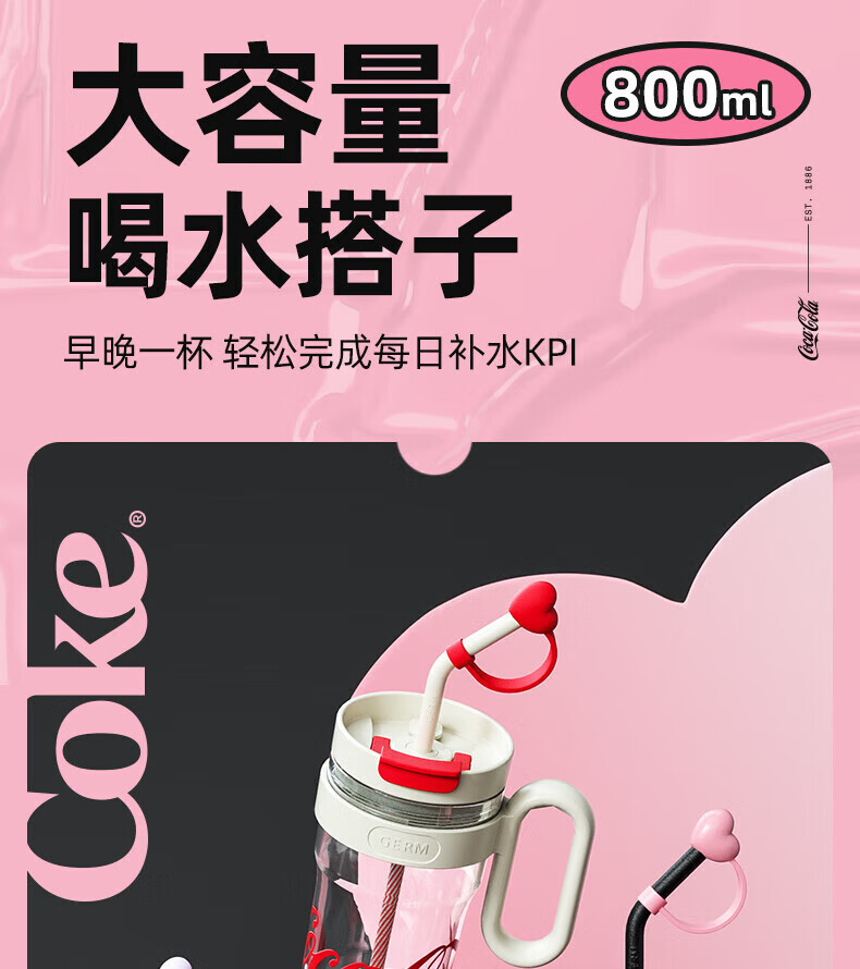 格沵800mL可口可乐联名款冰霸水杯(西瓜啵啵)