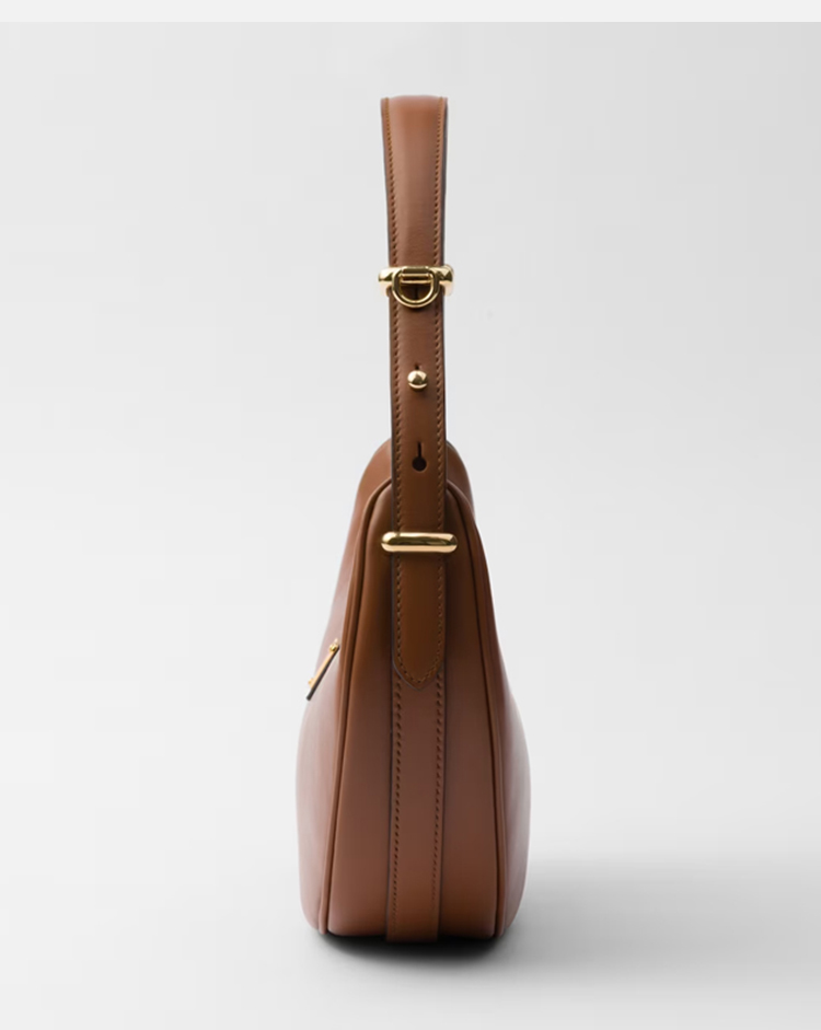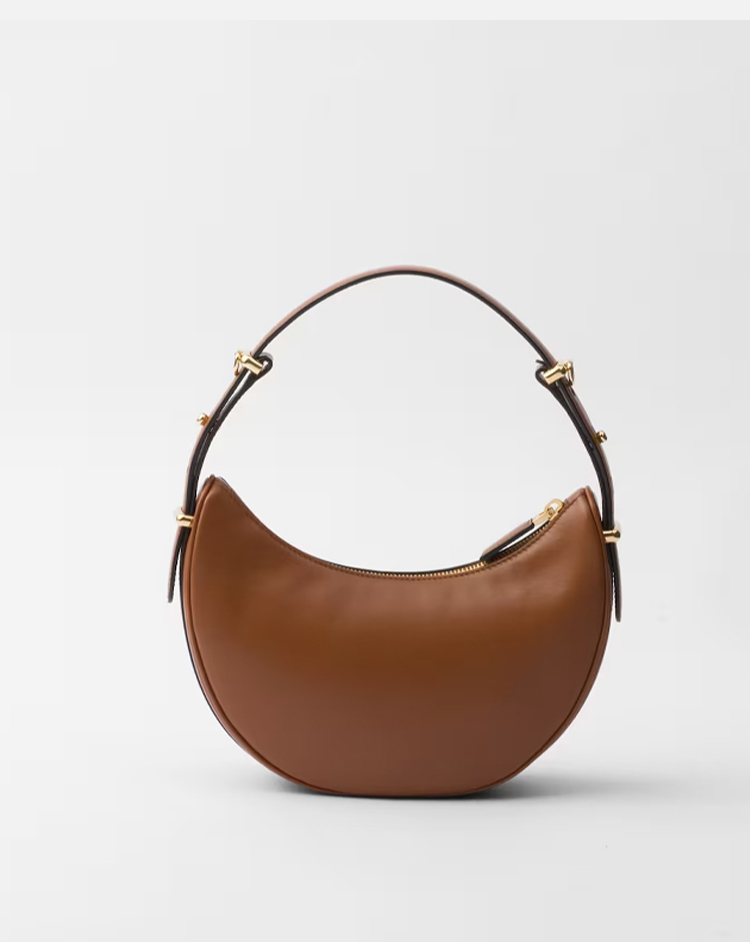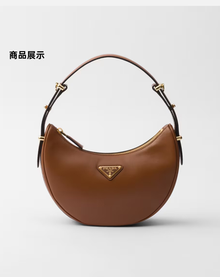 PRADA 普拉达 女士 Arqué 皮革珐琅三角形金属徽标单肩包 棕色 1BC194 ASK F0XUG OOO