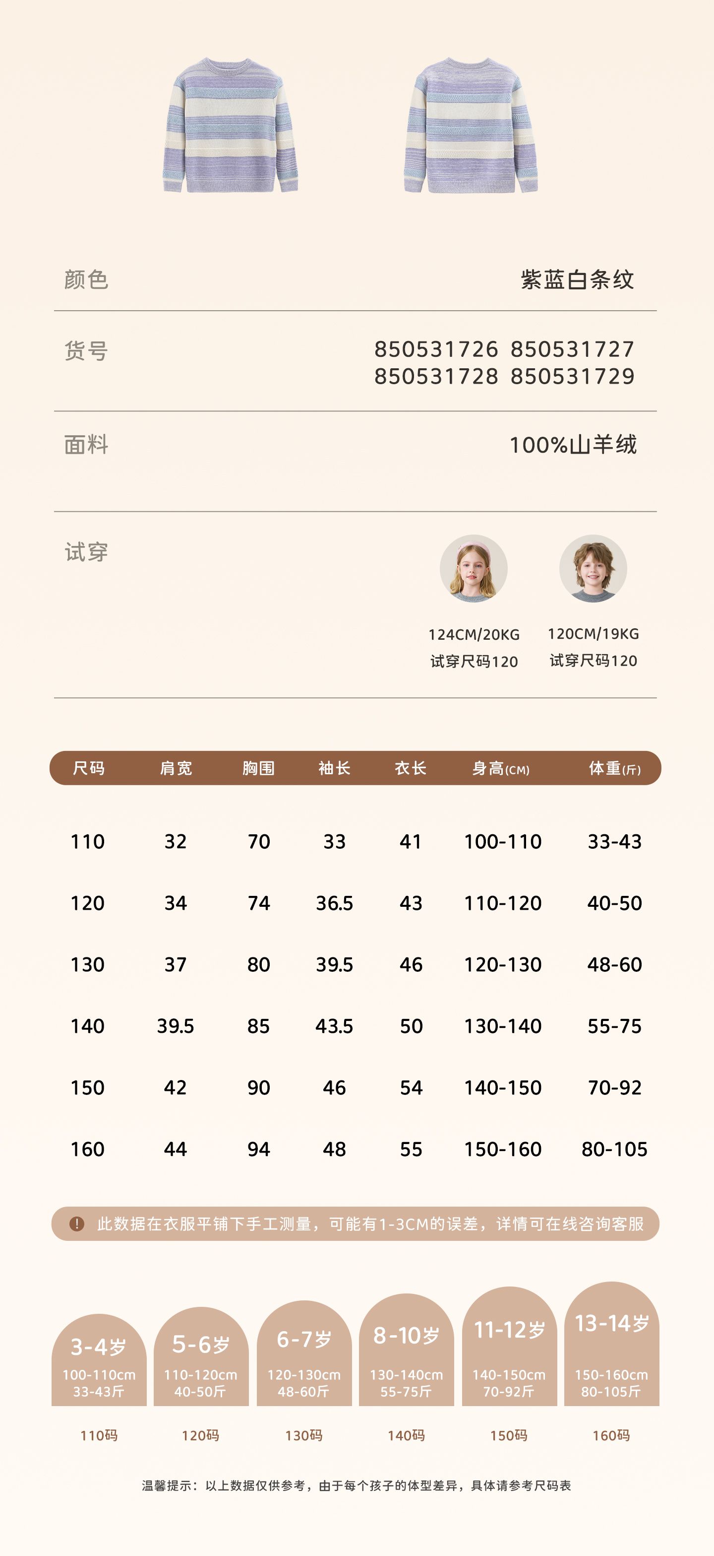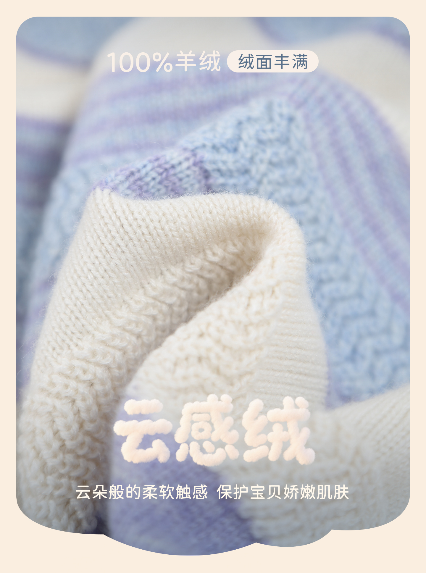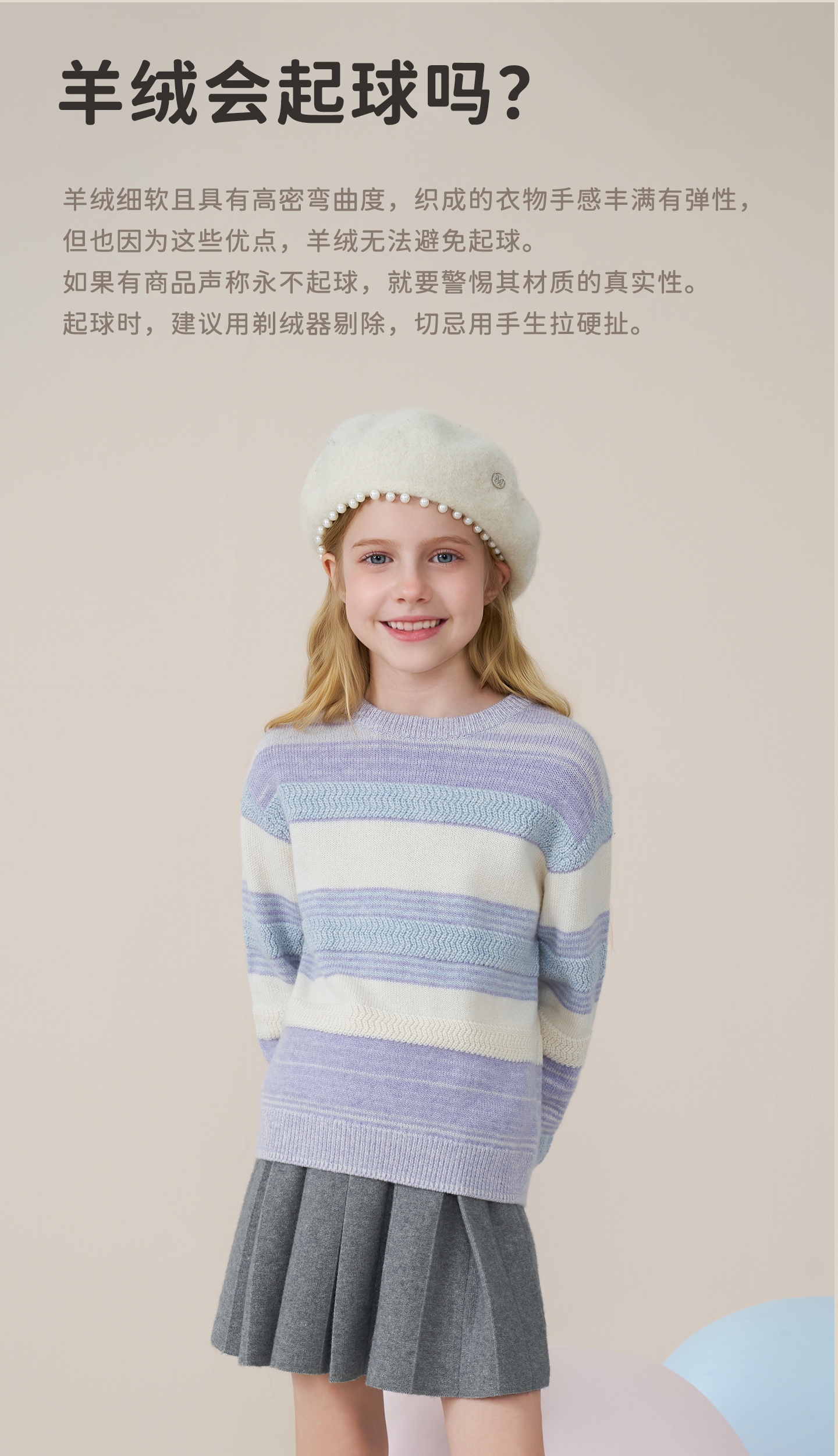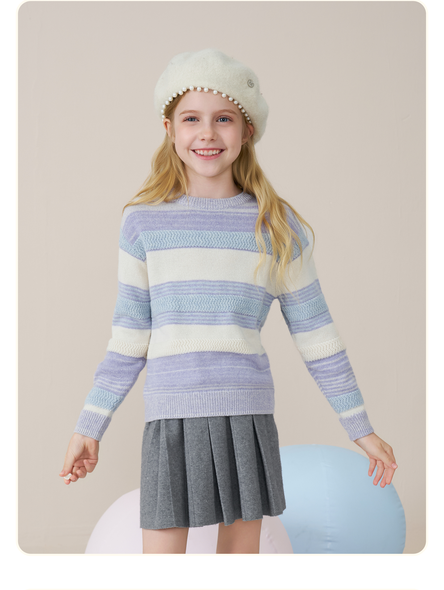 儿童100%羊绒衫2025秋冬女童圆领撞色条纹洋气针织套头毛衣打底衫