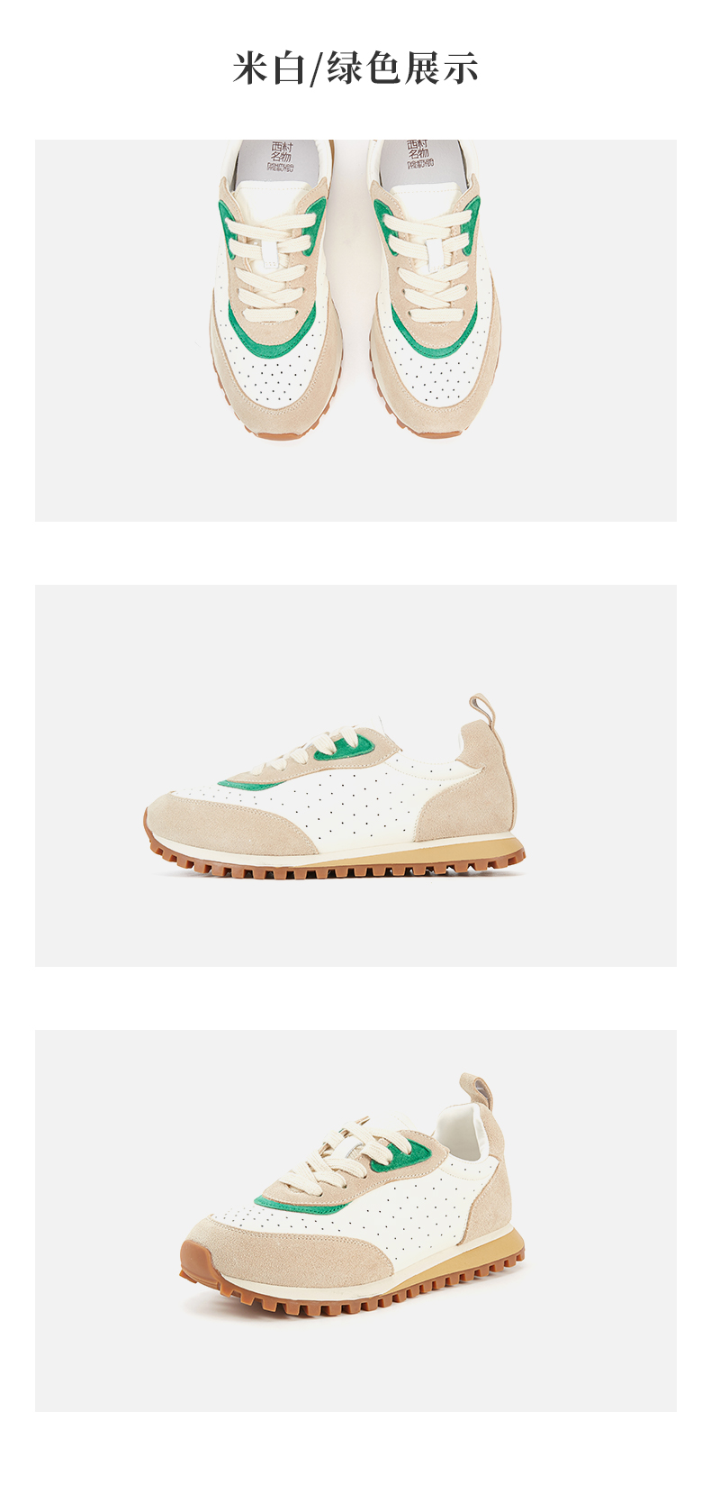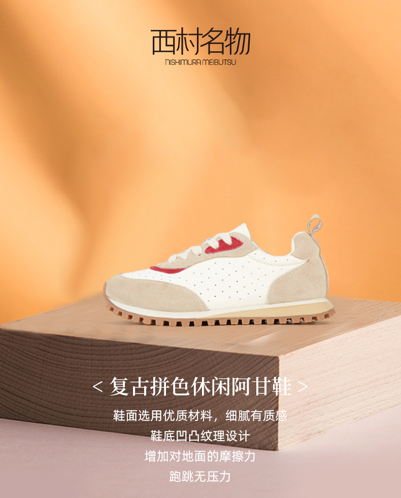 西村名物2023年秋季新款复古平底圆头运动鞋拼色潮流阿甘鞋X23CM34521