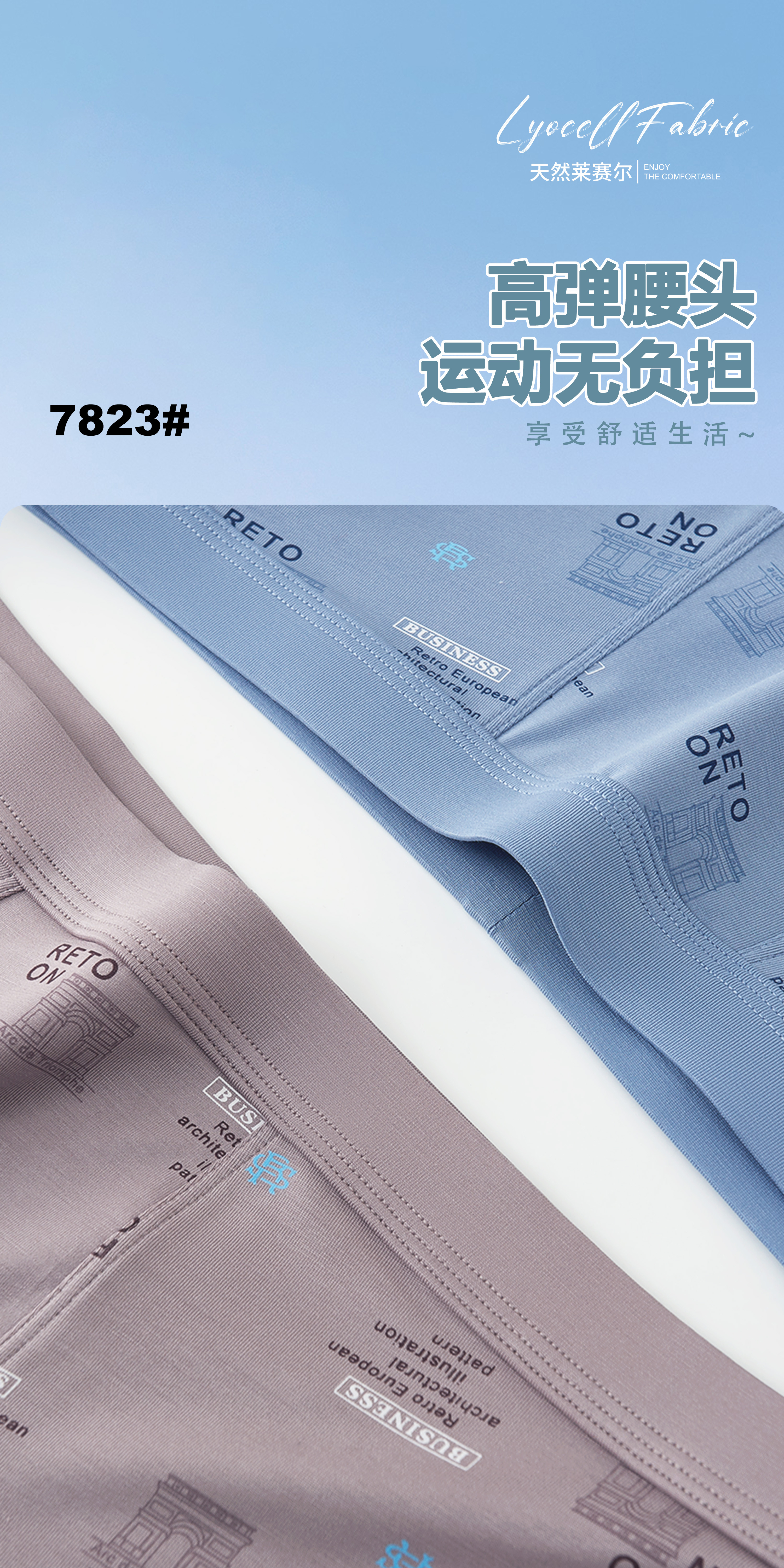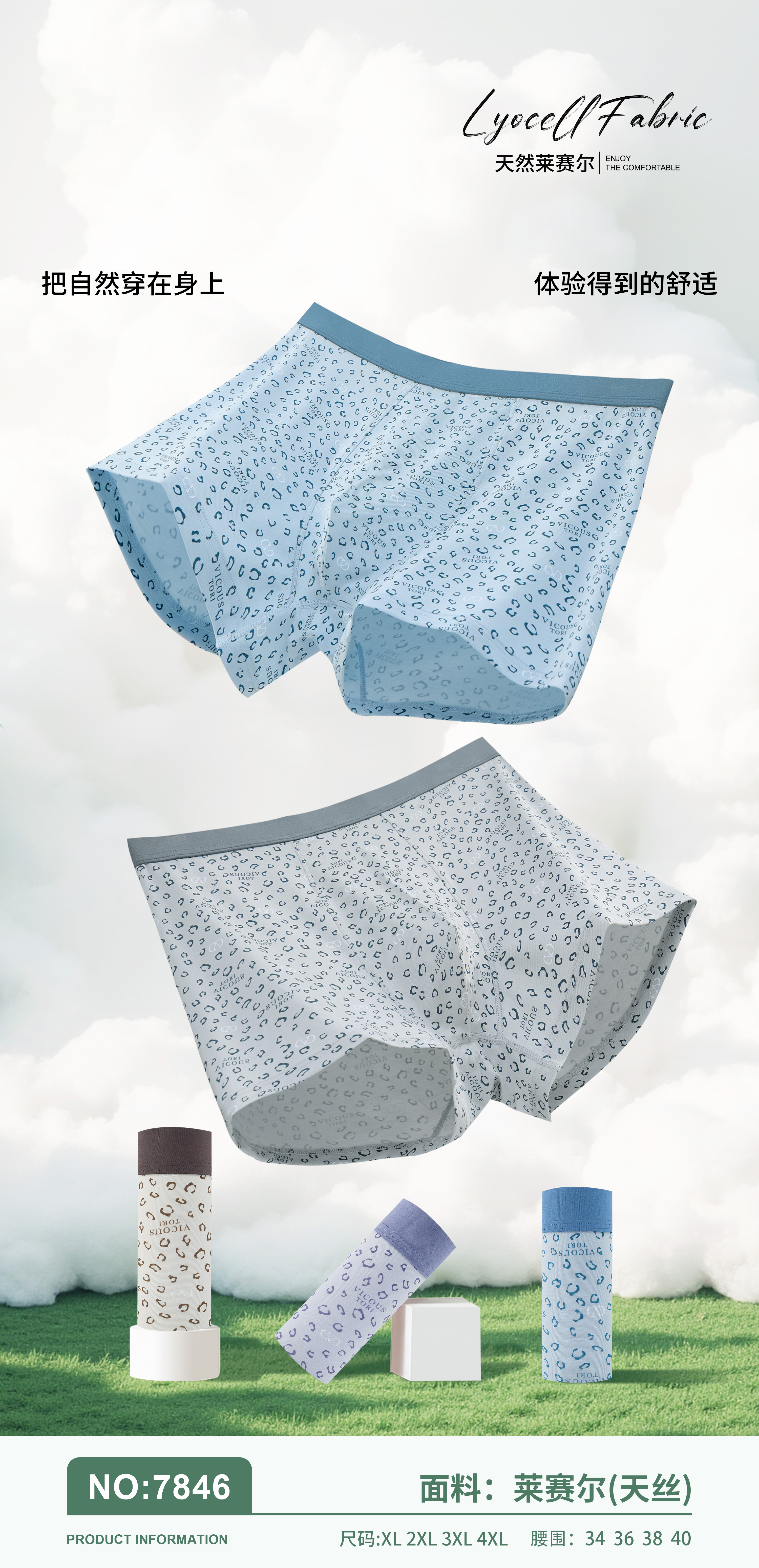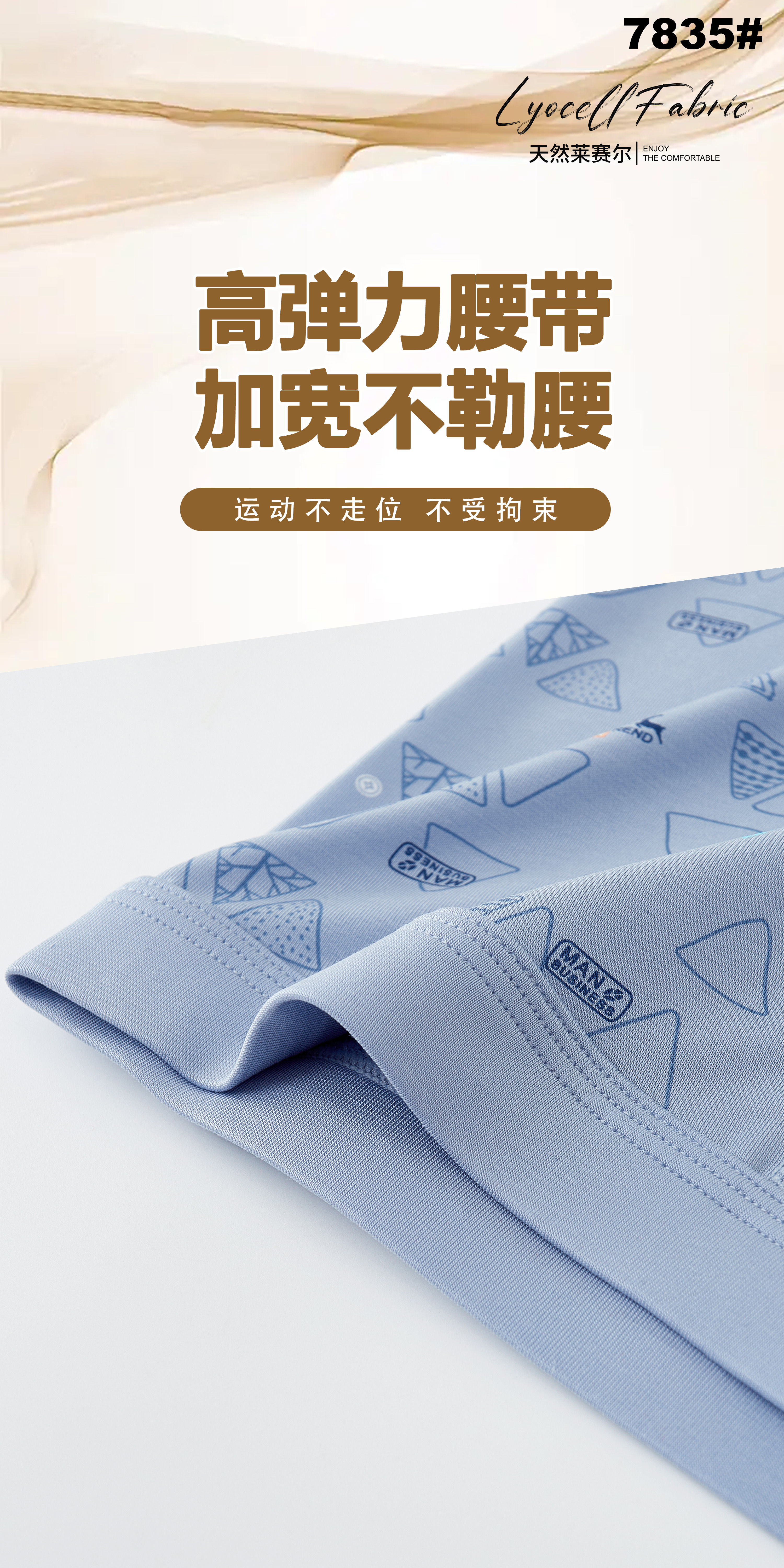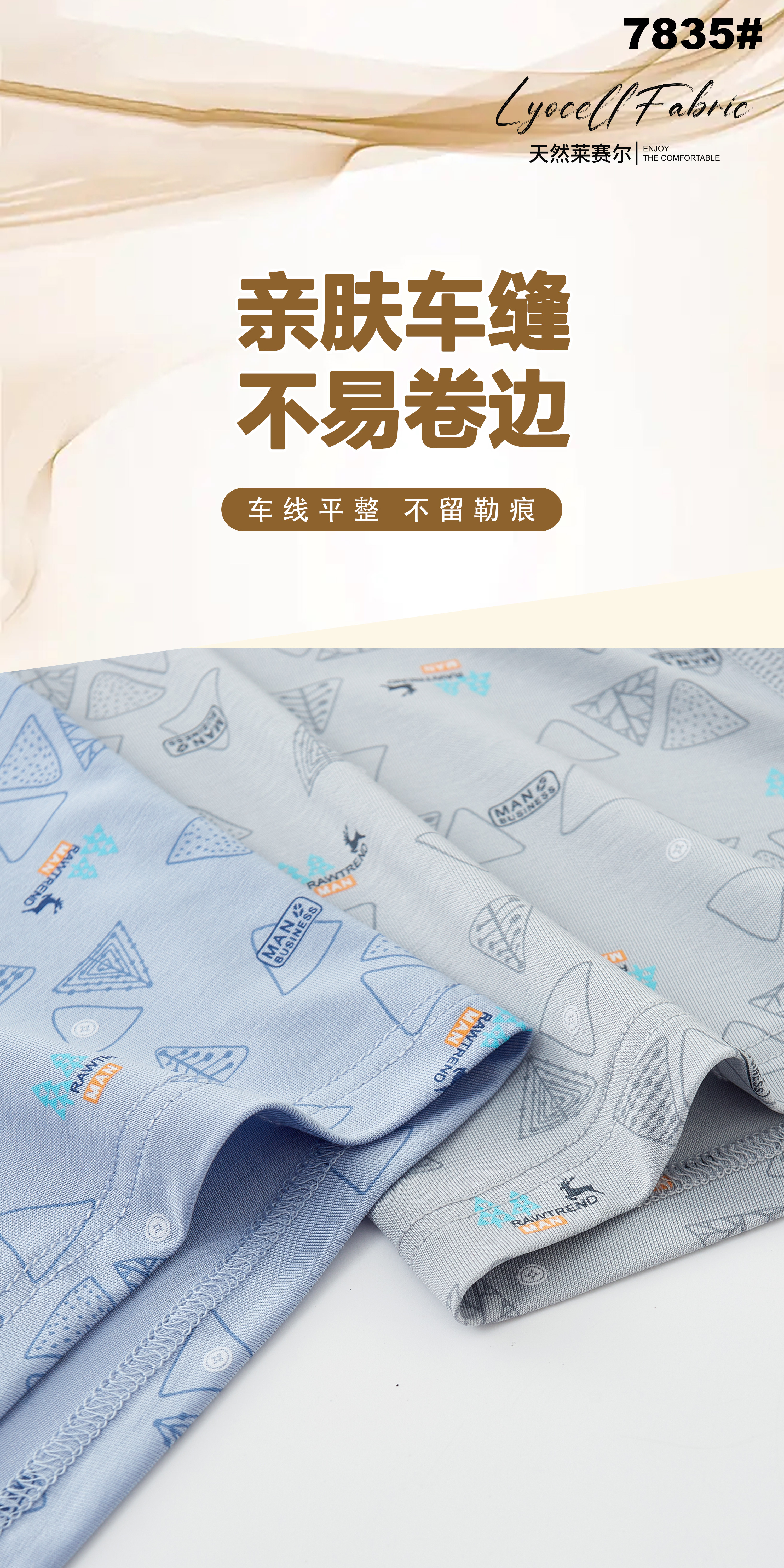 新款男士莱赛尔天丝包头印花平角内裤7823/7835/3627/7842/7846