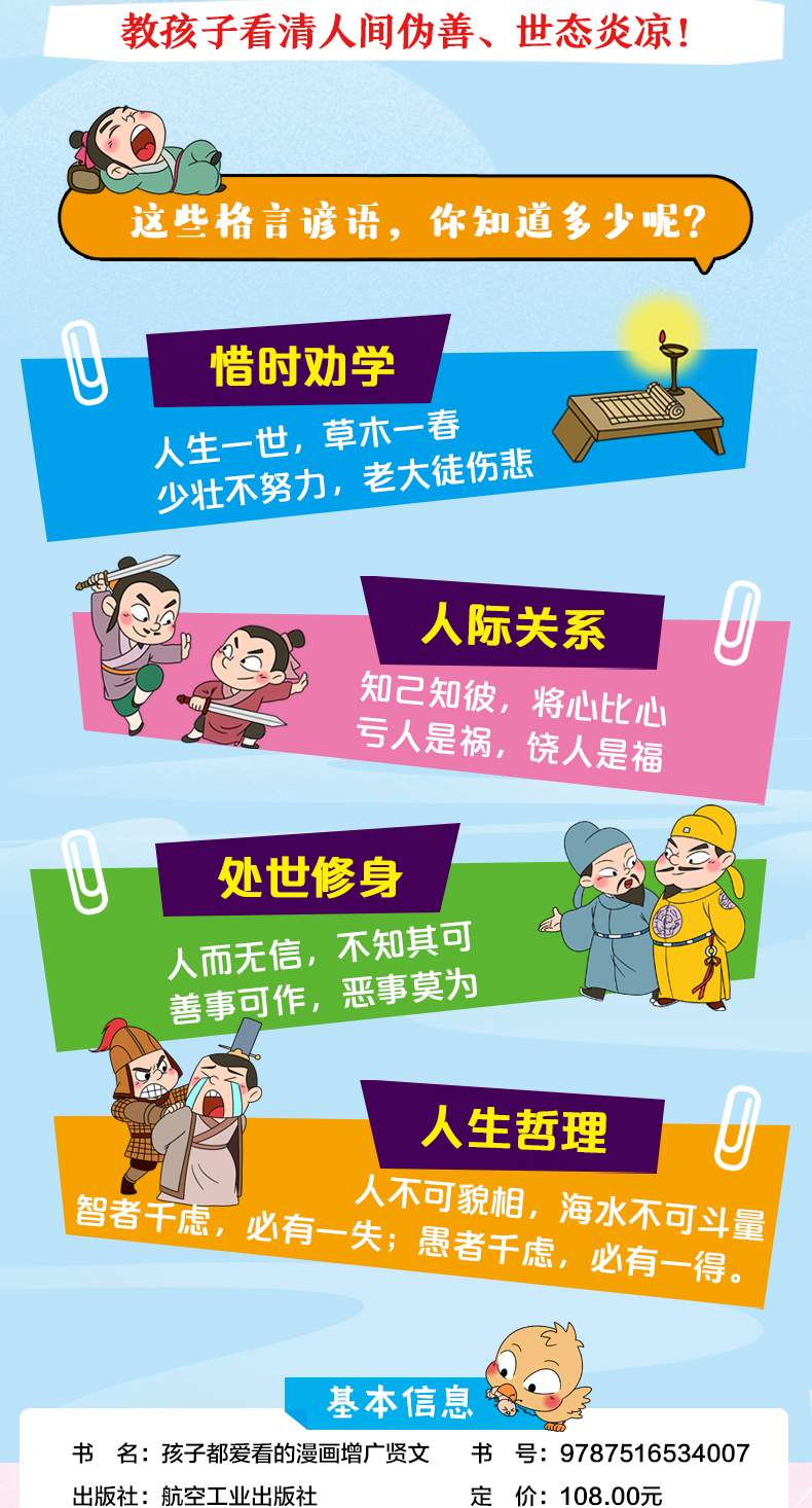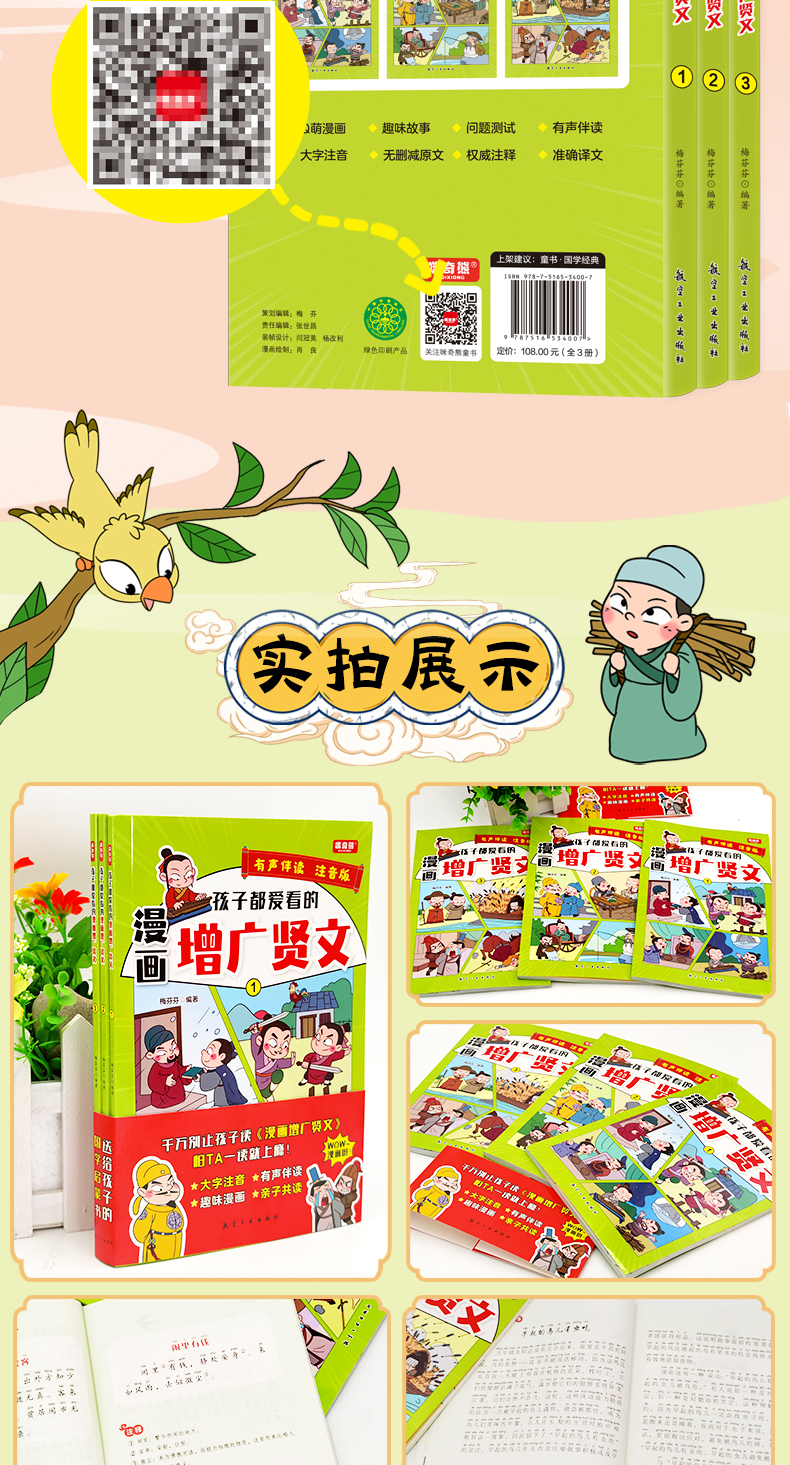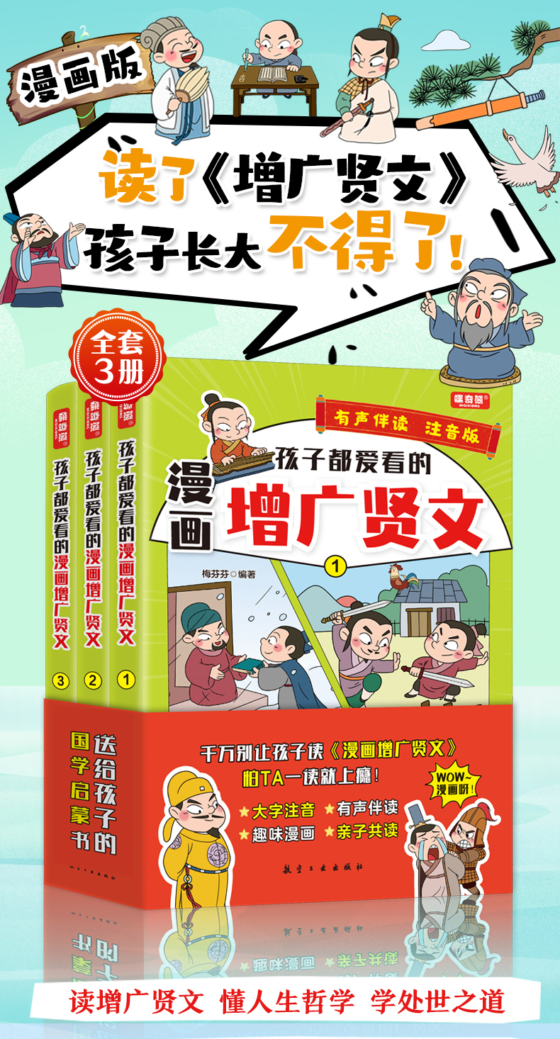 全3册 孩子都爱看的漫画增广贤文 足本完整无删减 扫码免费听音频 积累做作文素材 全文注音通俗易懂注释 考一考板块 Q萌漫画