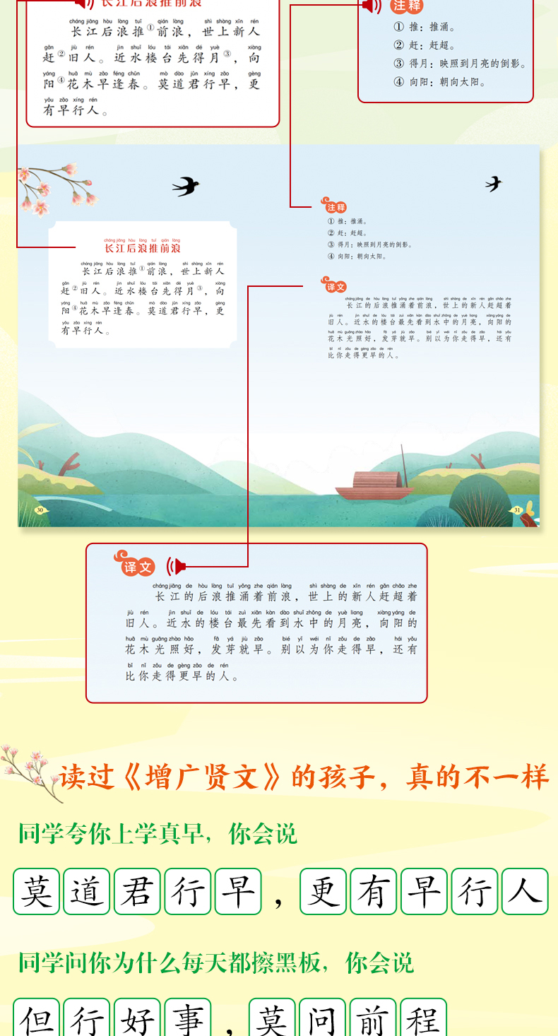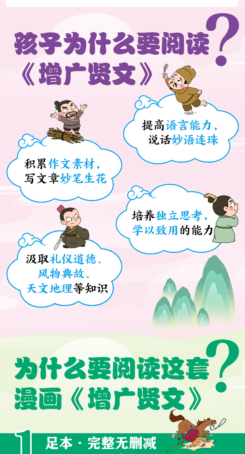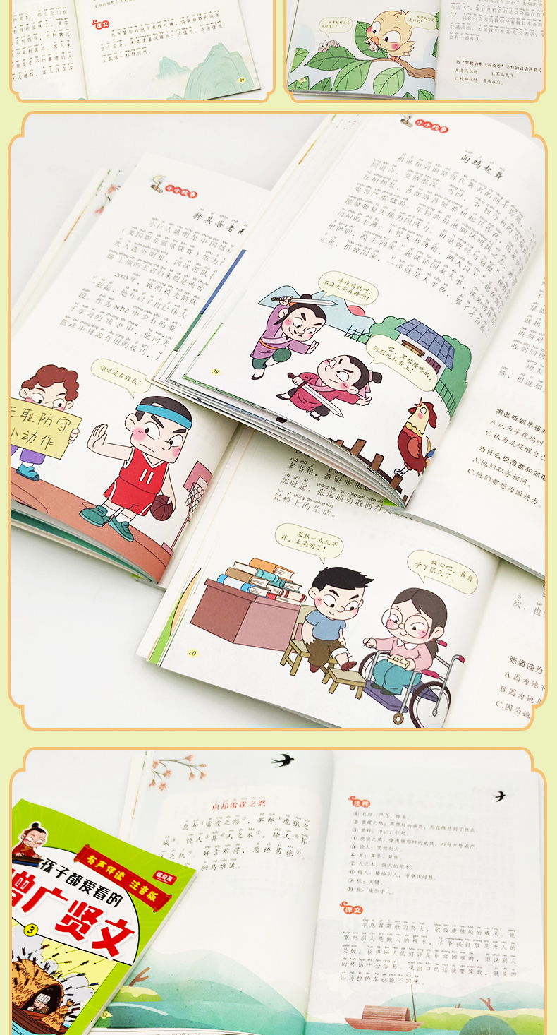 全3册 孩子都爱看的漫画增广贤文 足本完整无删减 扫码免费听音频 积累做作文素材 全文注音通俗易懂注释 考一考板块 Q萌漫画