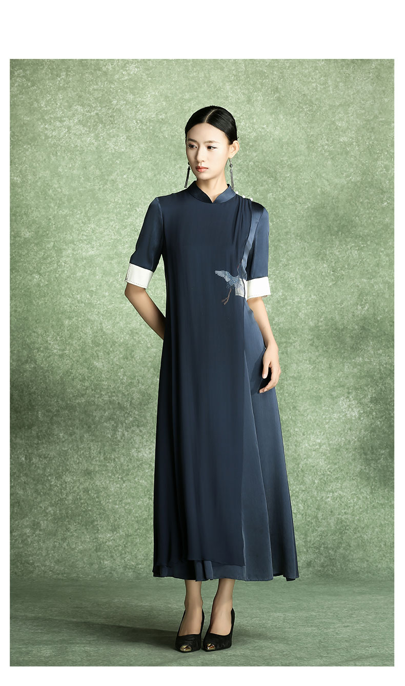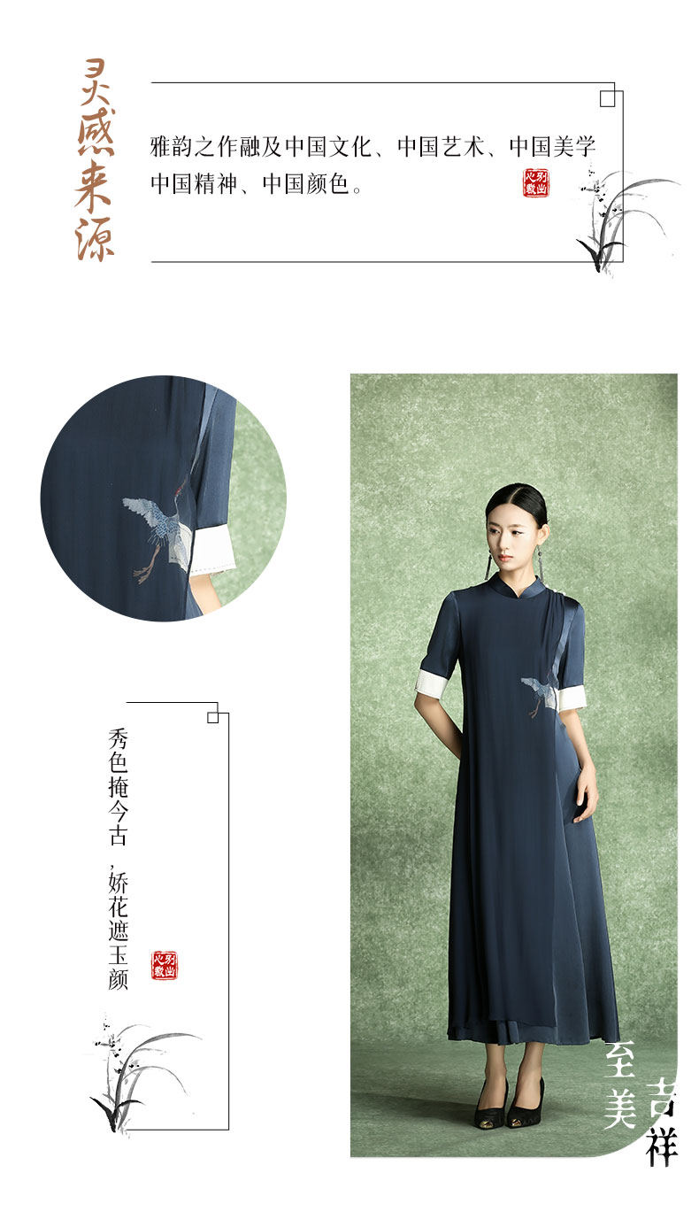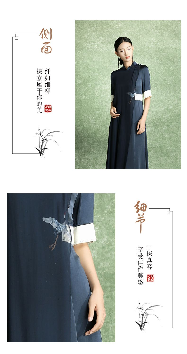 吉祥衣家新中式国风夏新款裙子气质修身显瘦女装逸鹤连衣裙