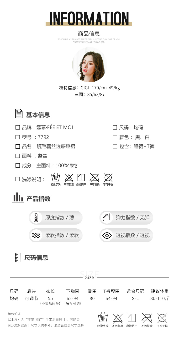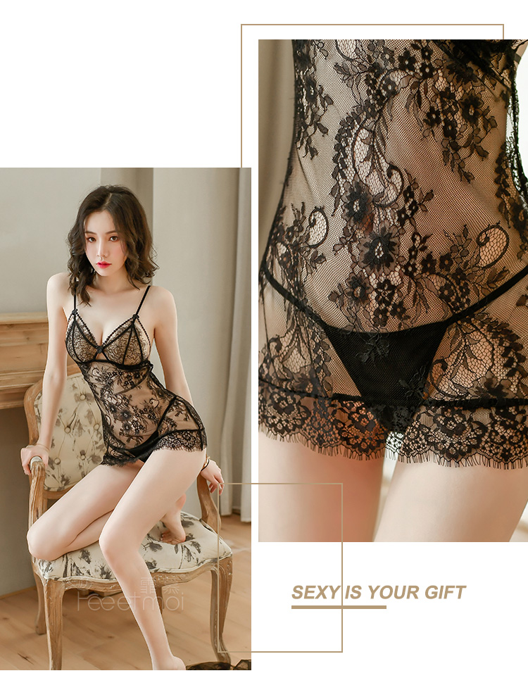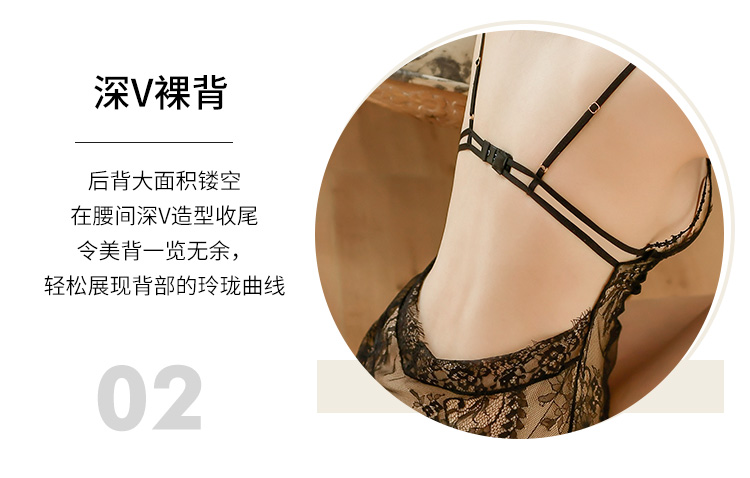 【深V的迷恋】情趣睡衣 女士内衣 性感 吊带 蕾丝 居家睡裙 套装 欧美 7792