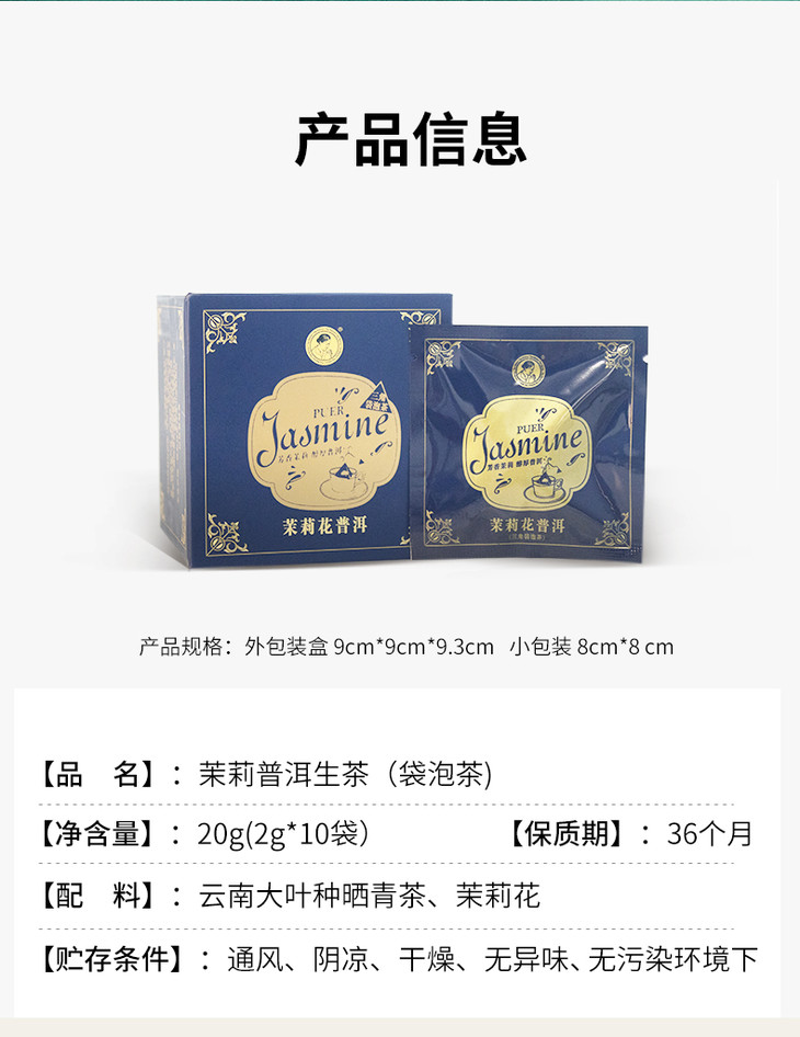 【积分兑换】澜沧古茶茶妈妈茉莉花普洱袋泡茶三角茶包普洱茶生茶叶花茶2g*10