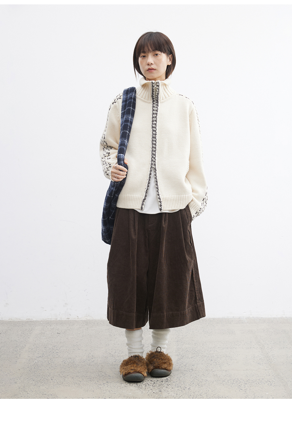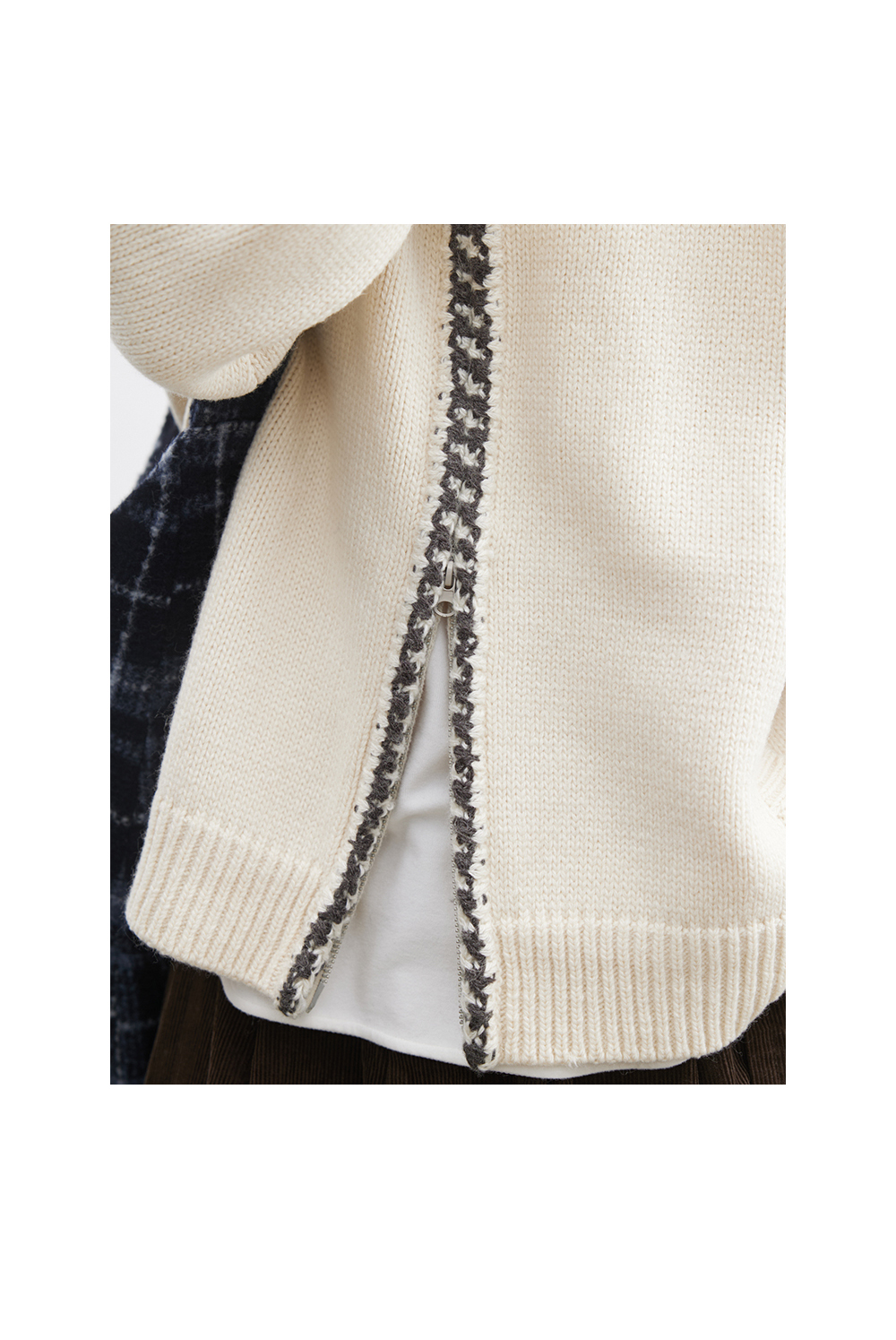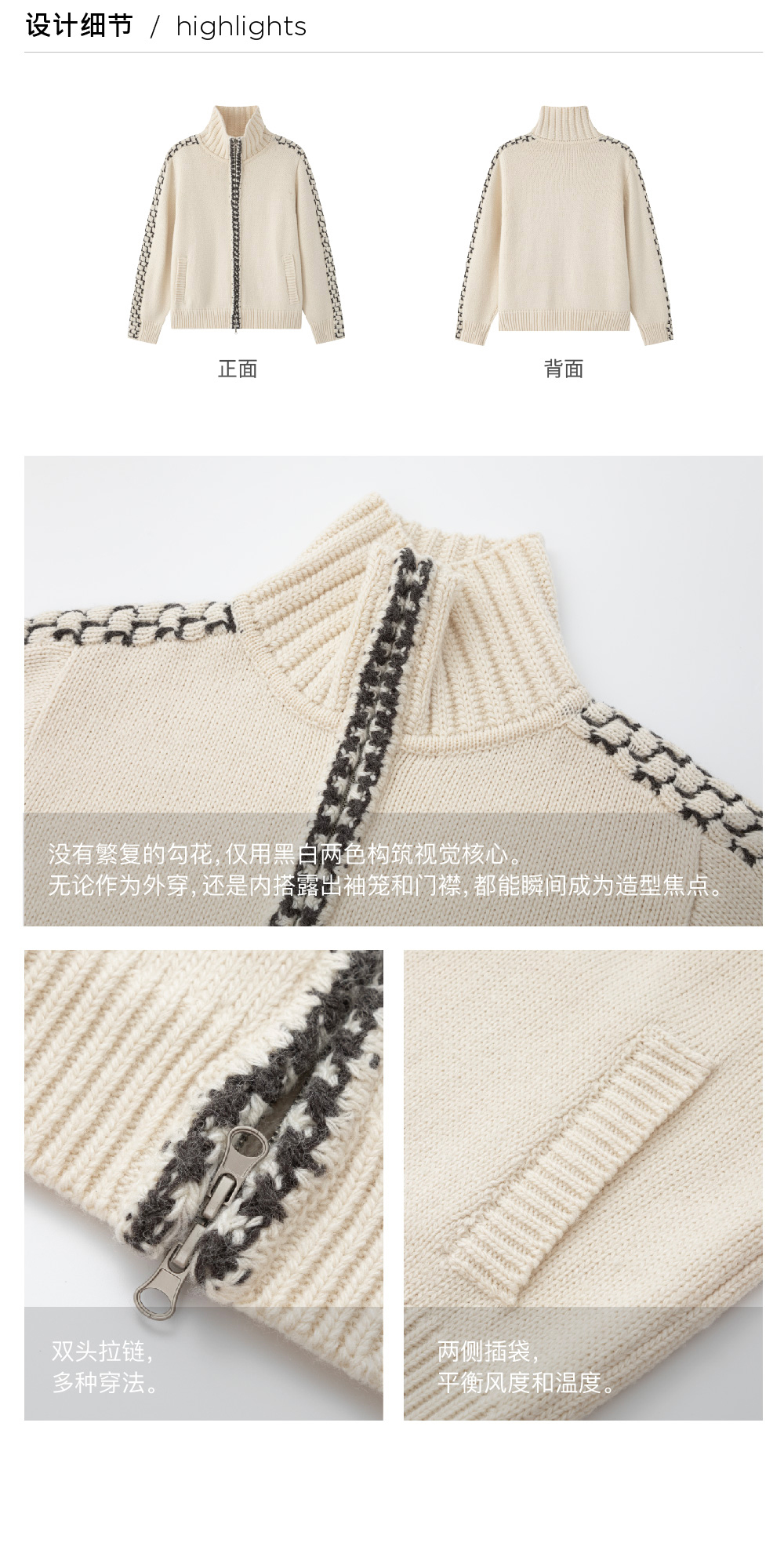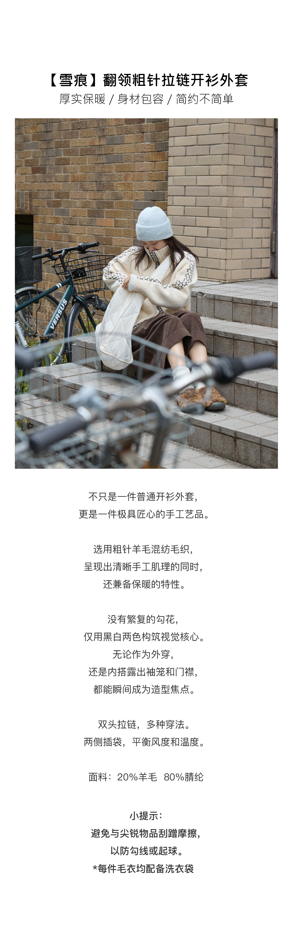 步履不停/5D13304C/翻领粗针拉链开衫外套