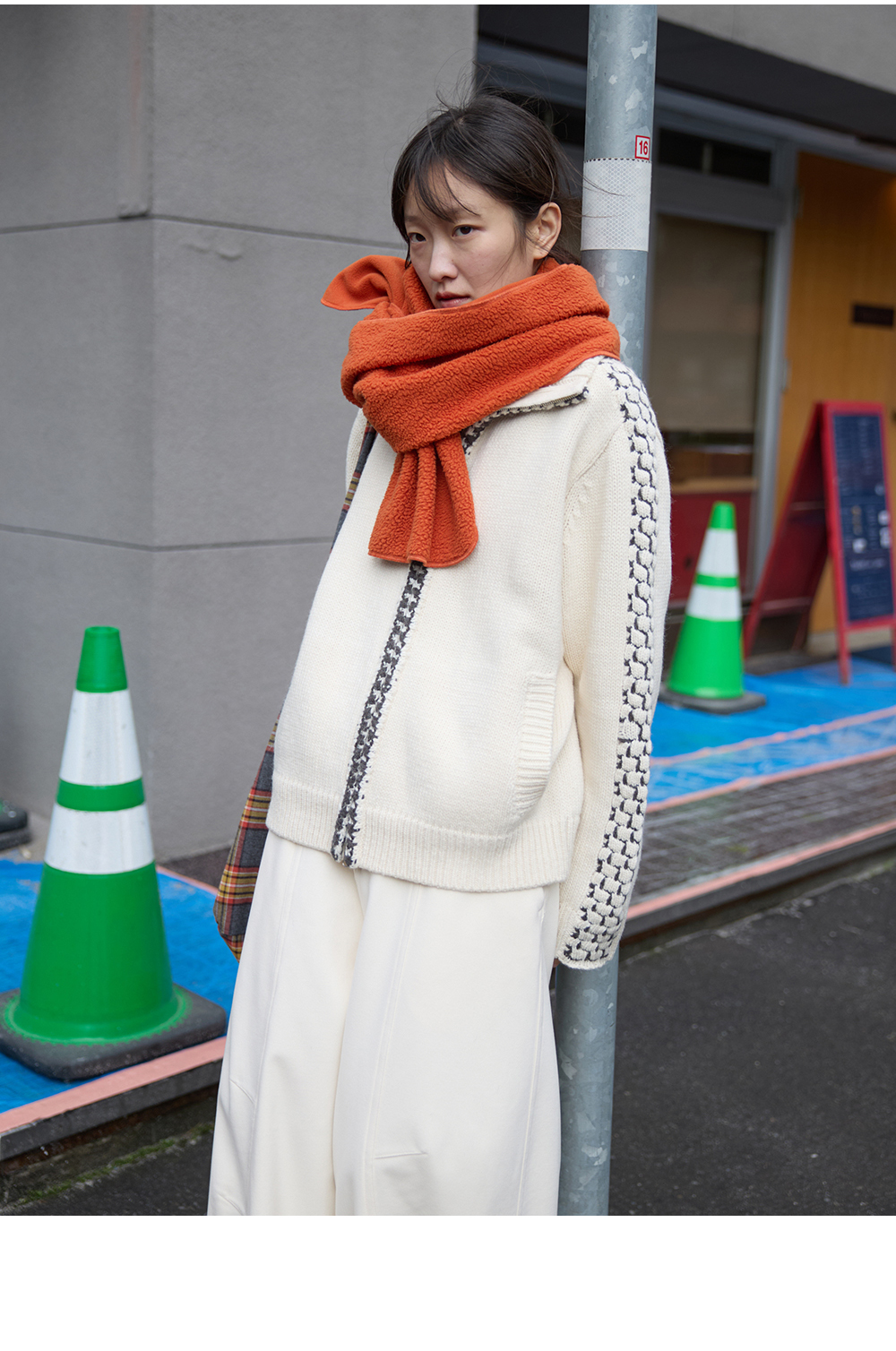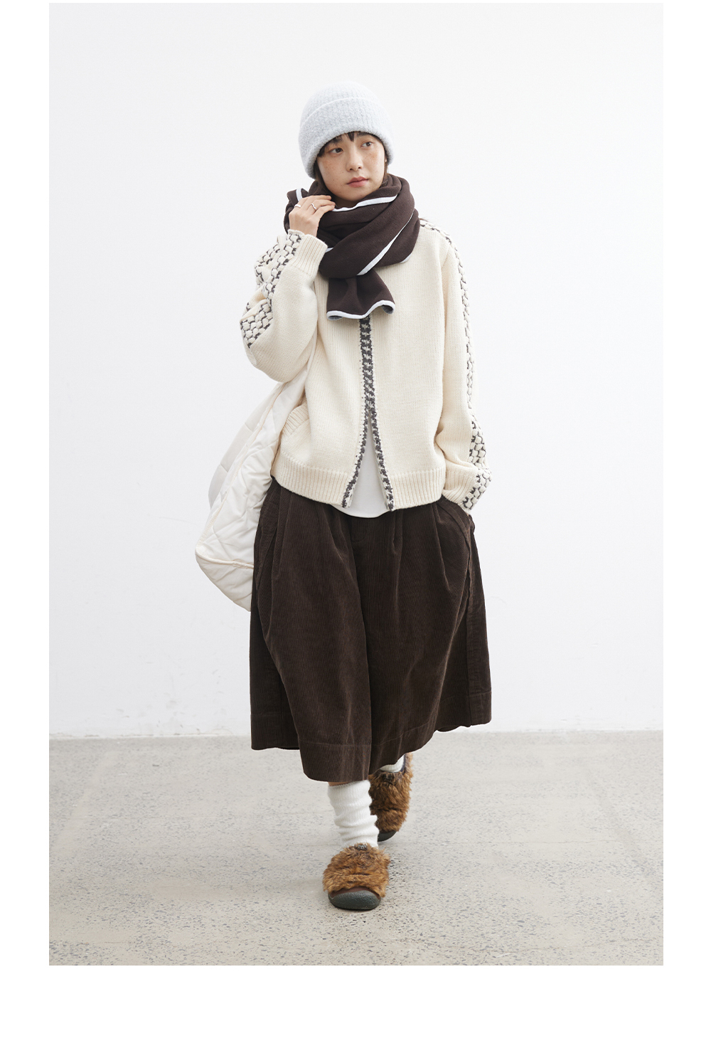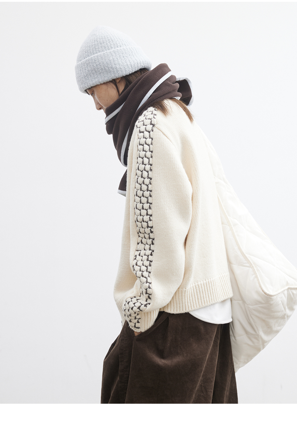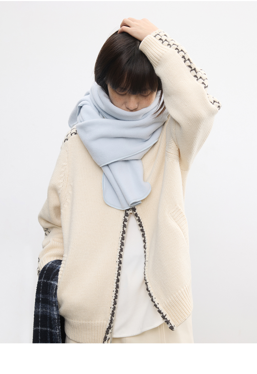 步履不停/5D13304C/翻领粗针拉链开衫外套