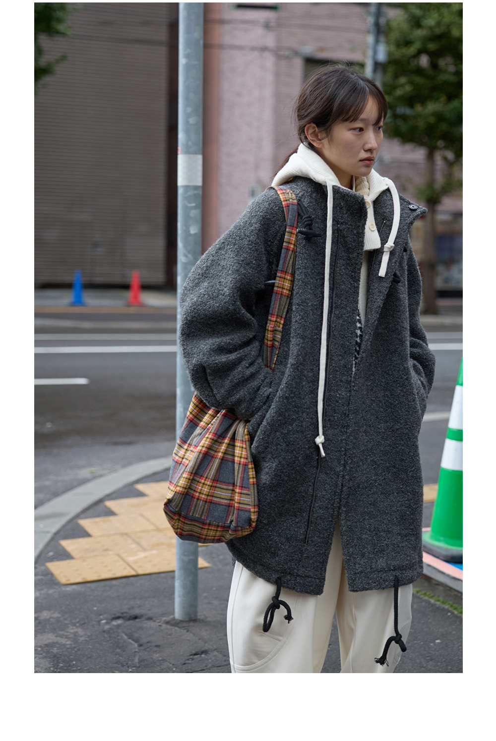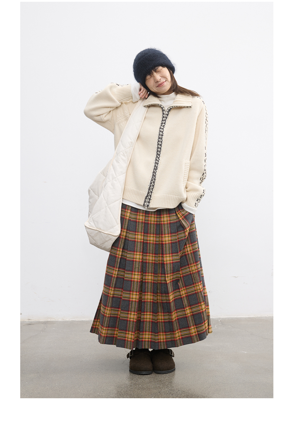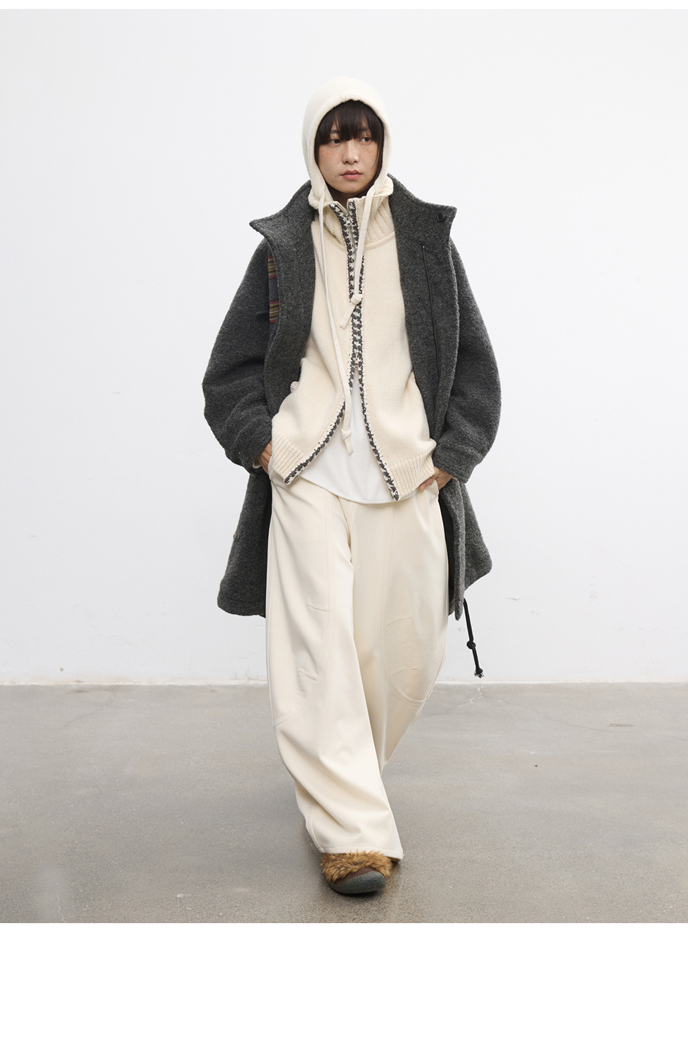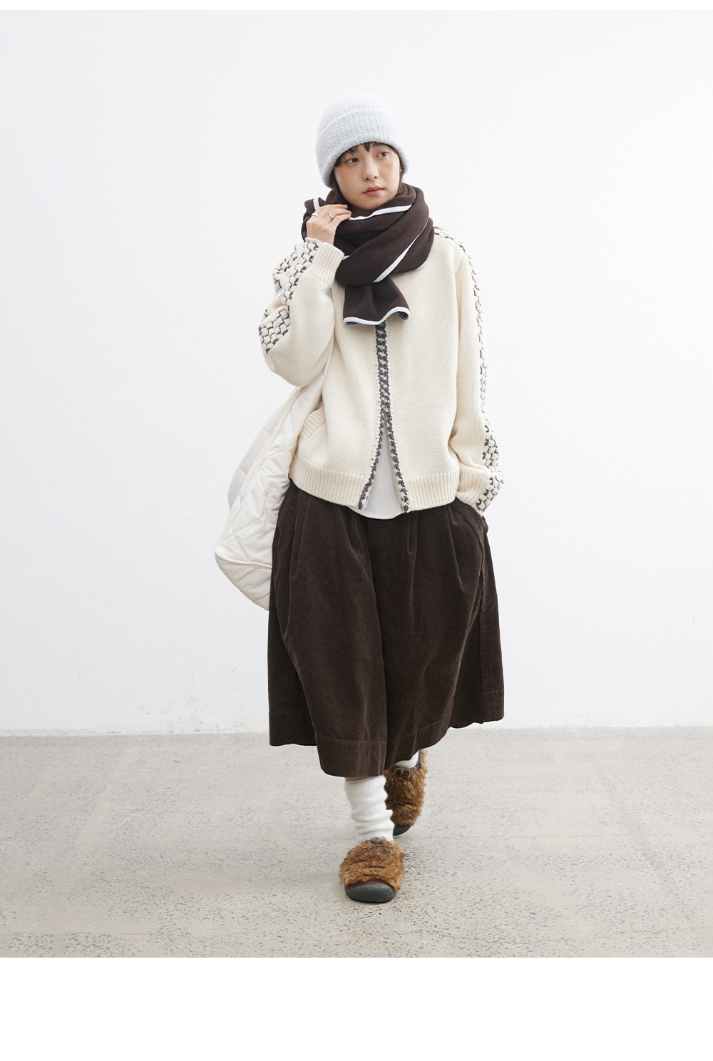 步履不停/5D13304C/翻领粗针拉链开衫外套