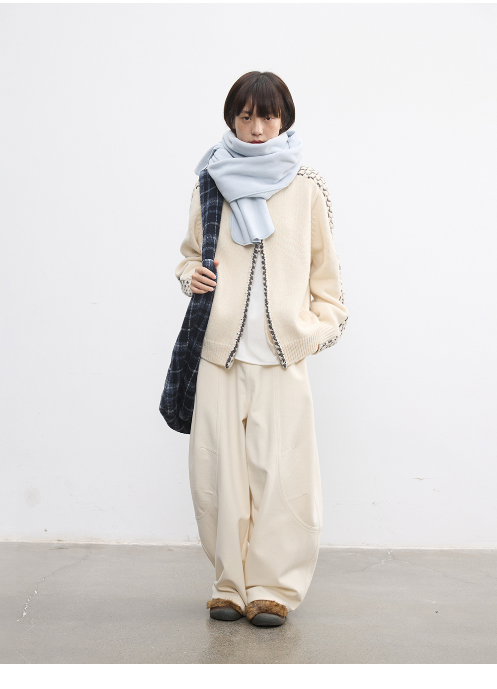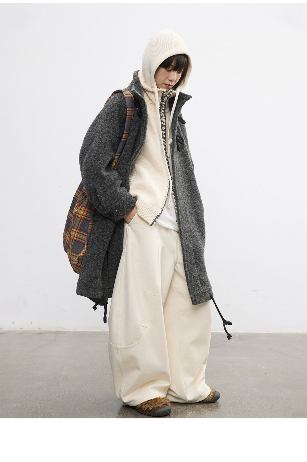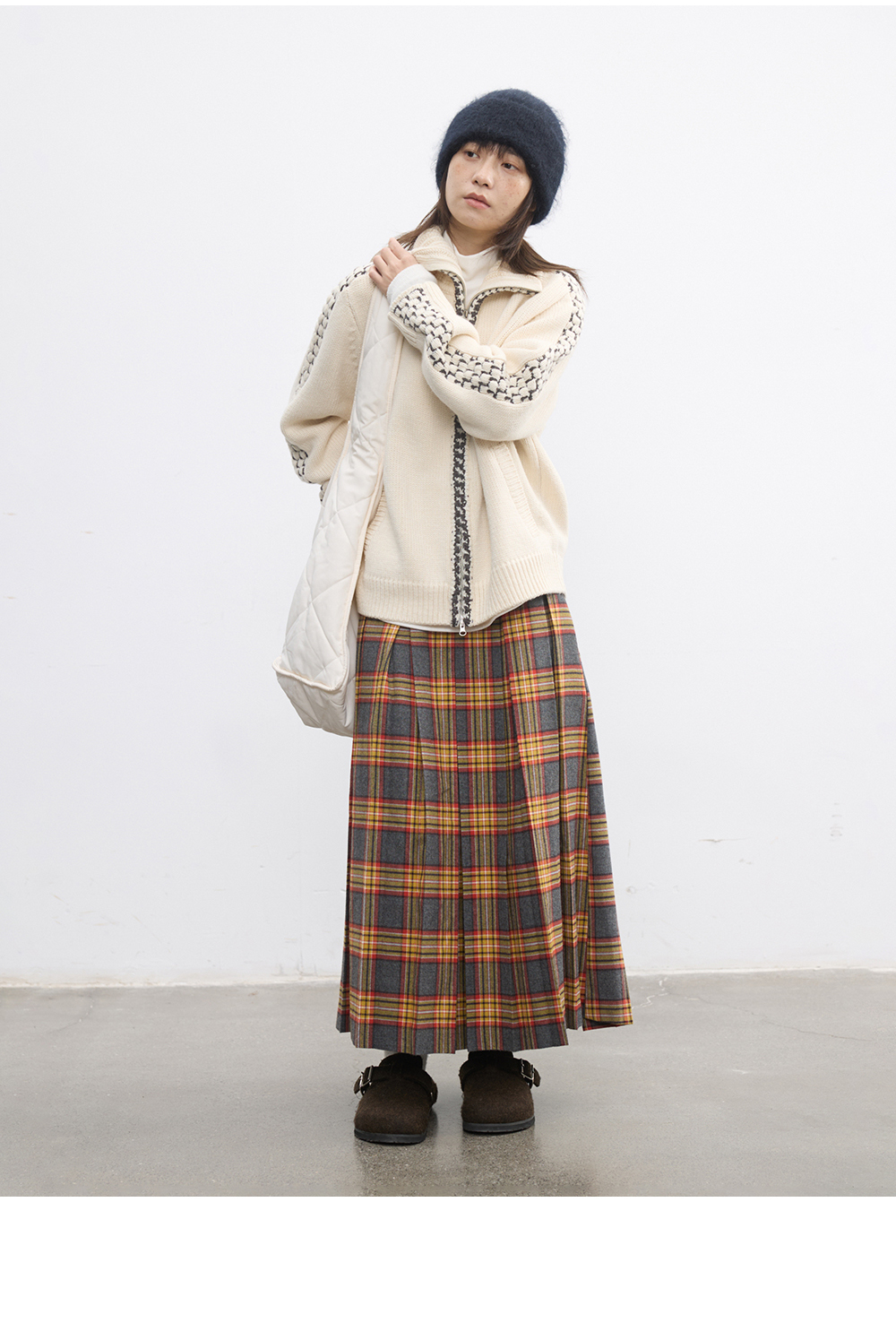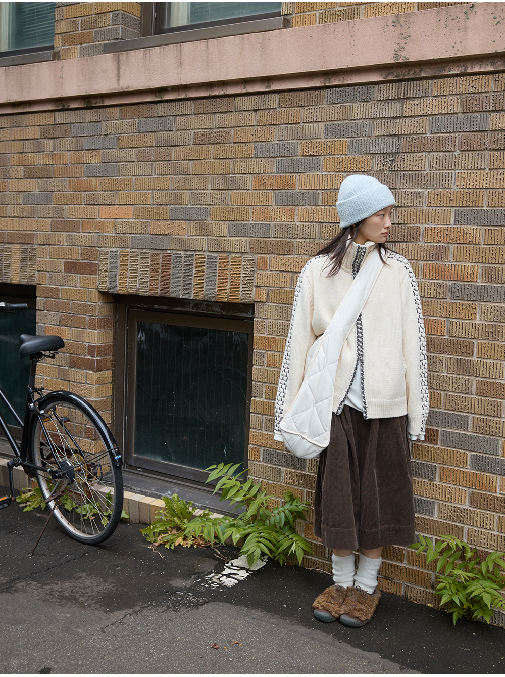 步履不停/5D13304C/翻领粗针拉链开衫外套