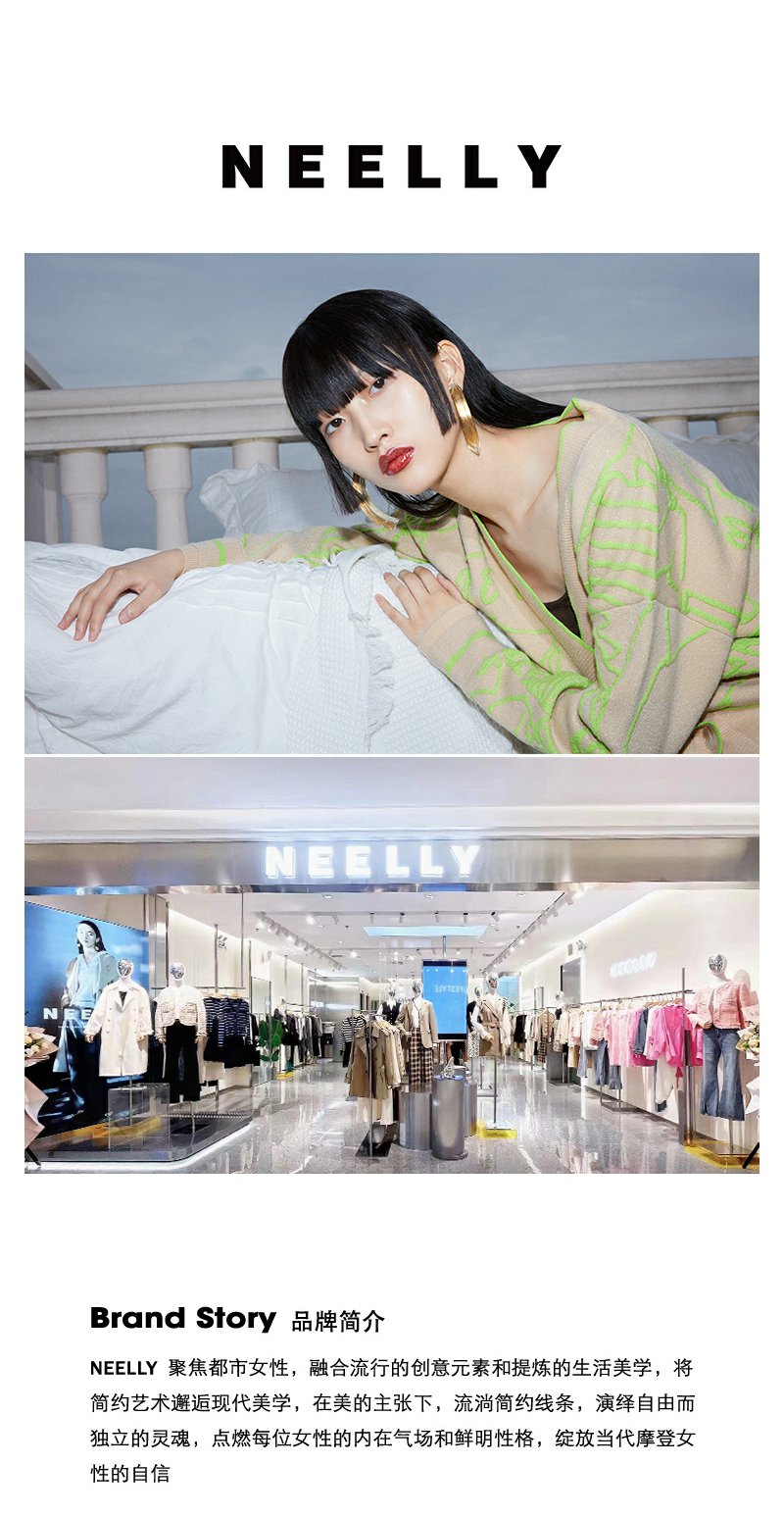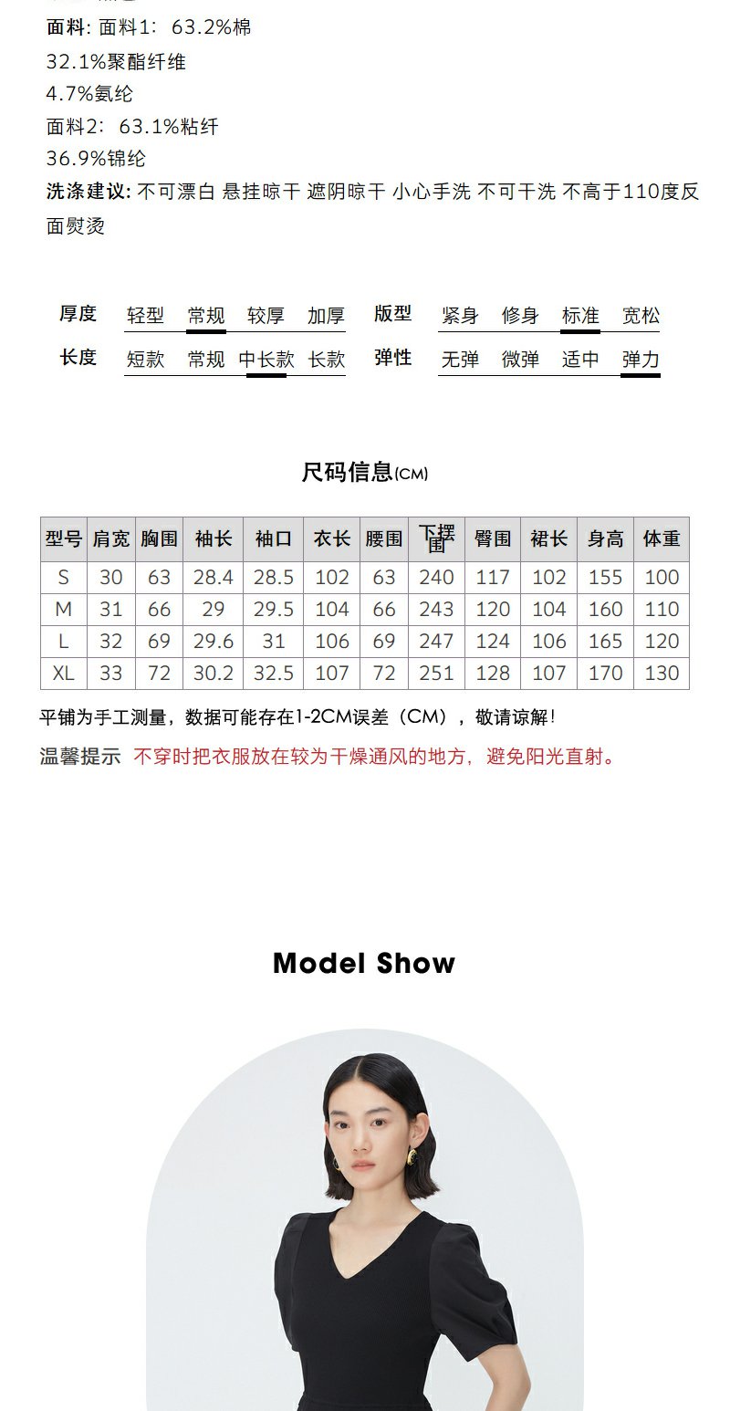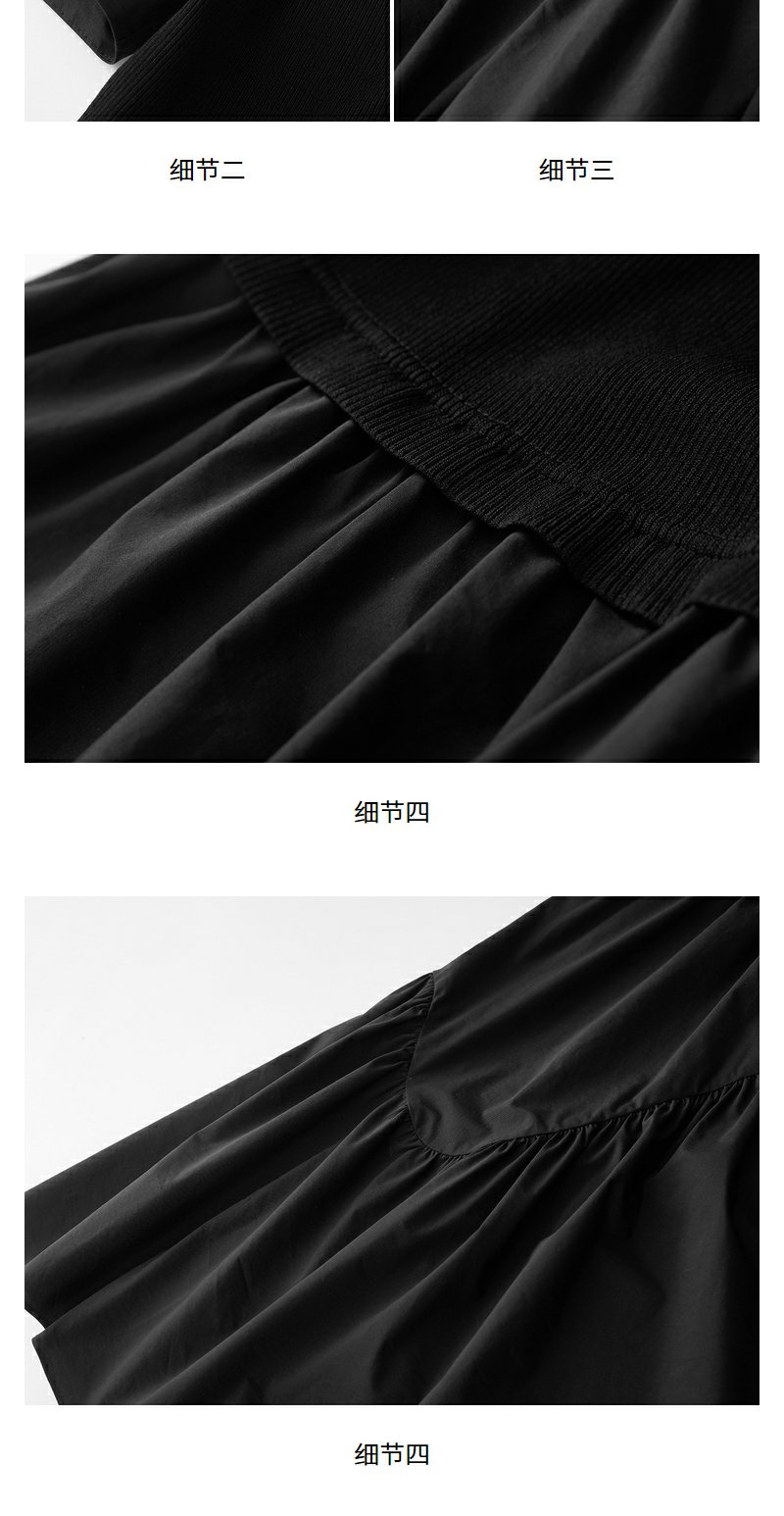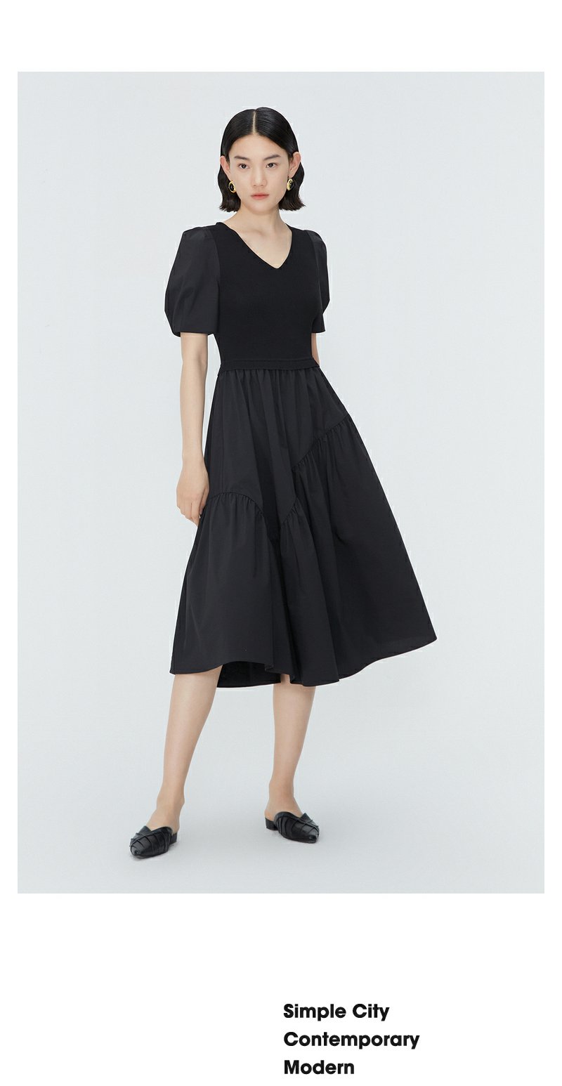 NEELLY纳俪商场同款夏季新款针织拼接短袖连衣裙女V领优雅长裙N25054Y04656