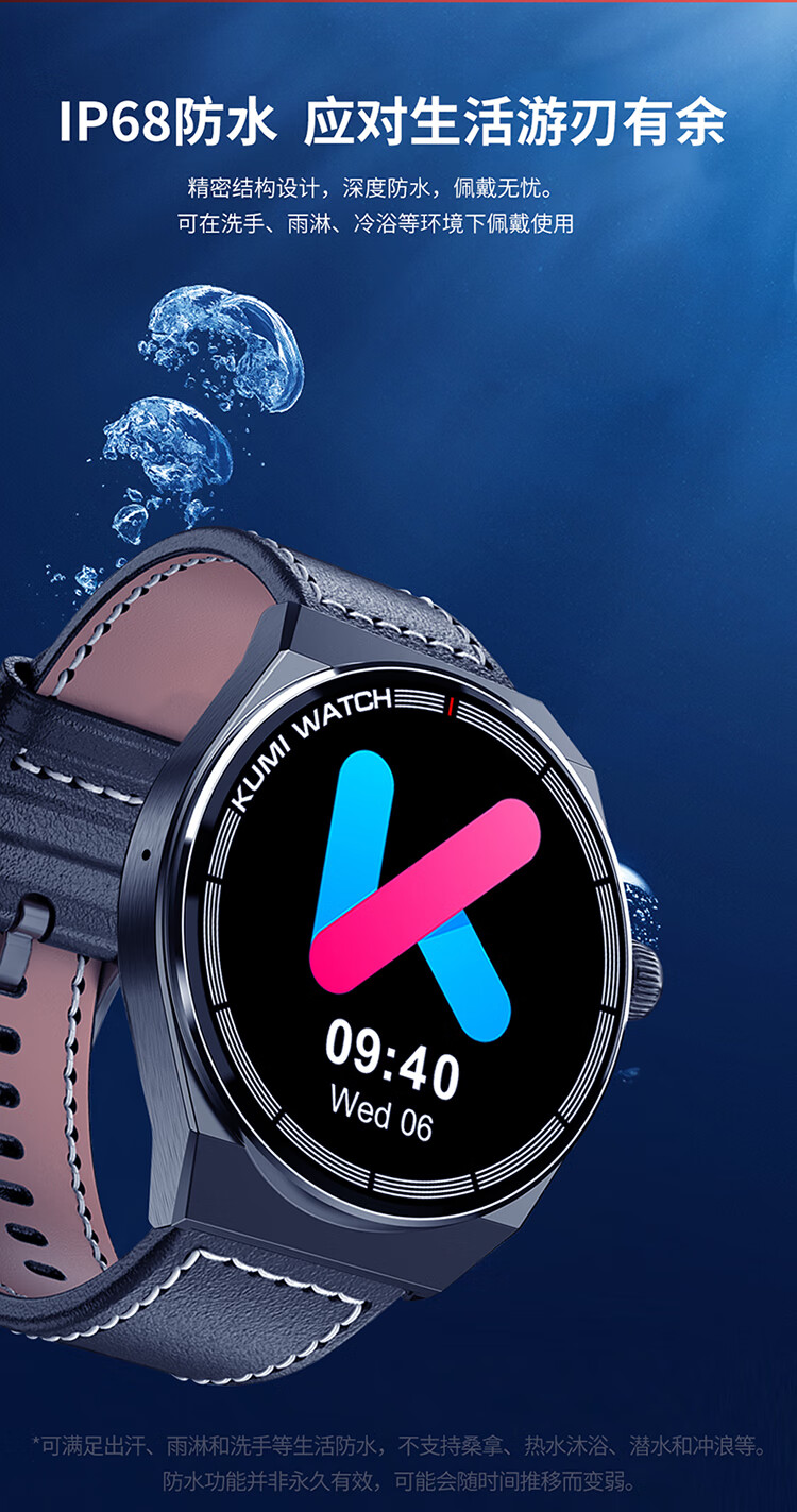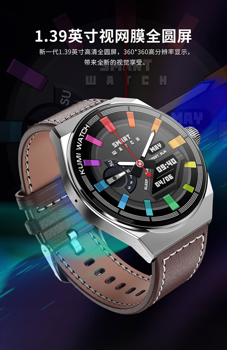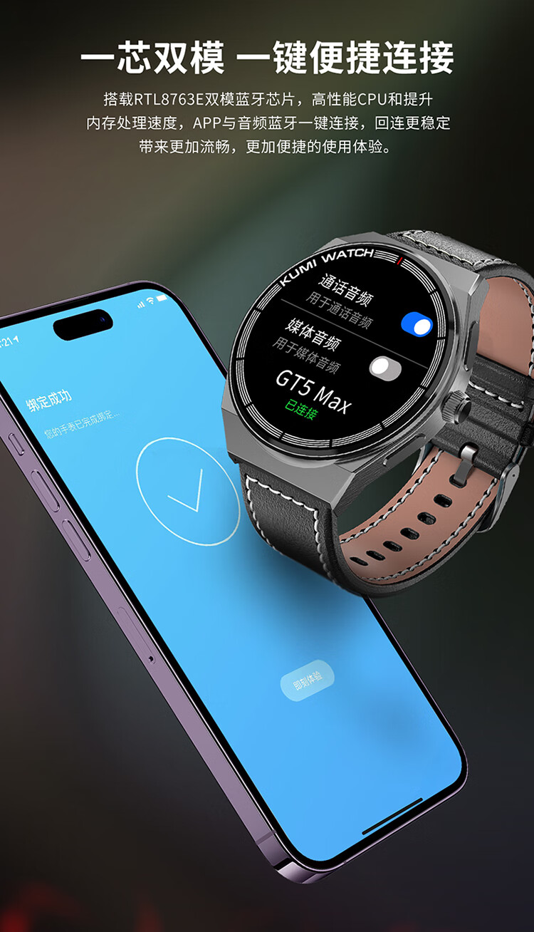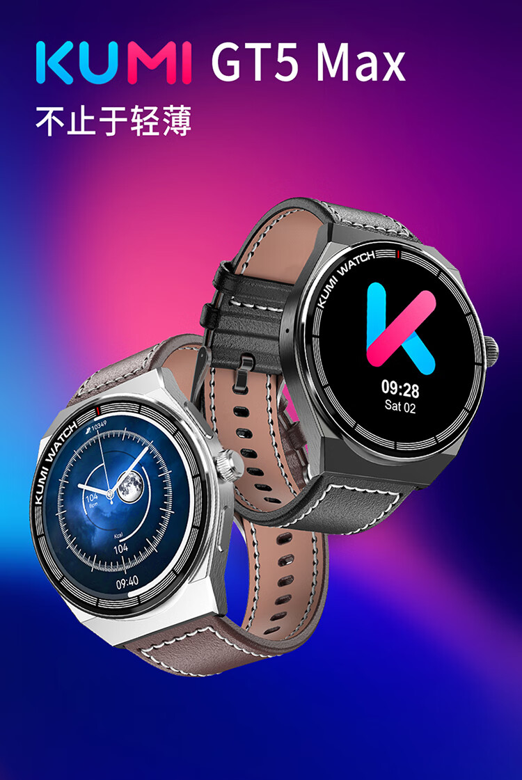 KUMI GT5 Max 智能手表男运动健康商务心率血压睡眠监测防水语音助手NFC门禁离线钱包支付