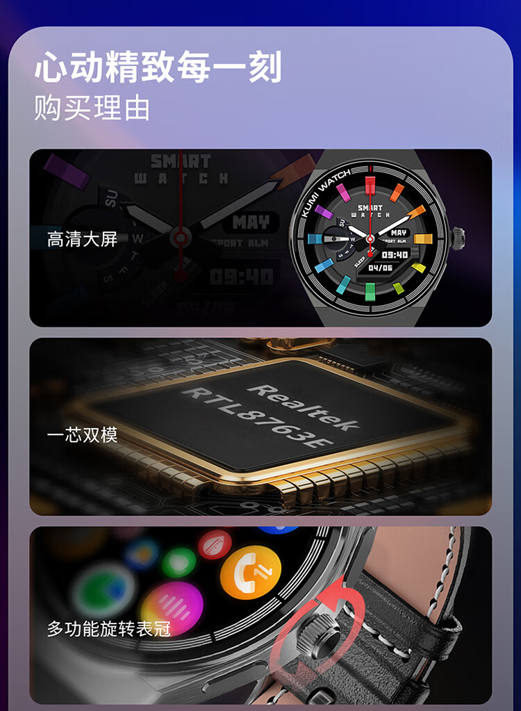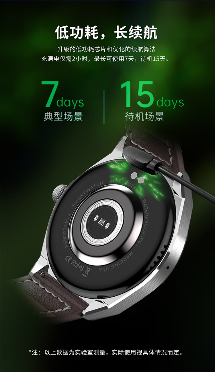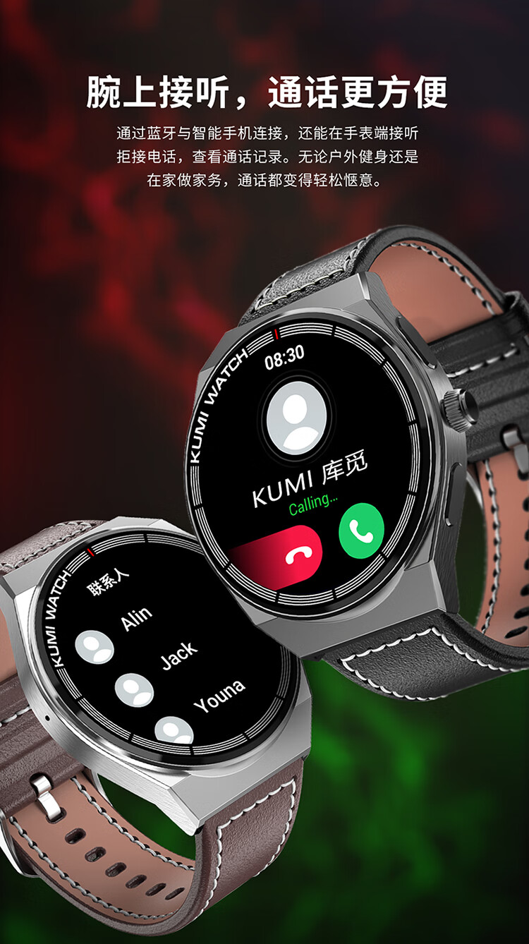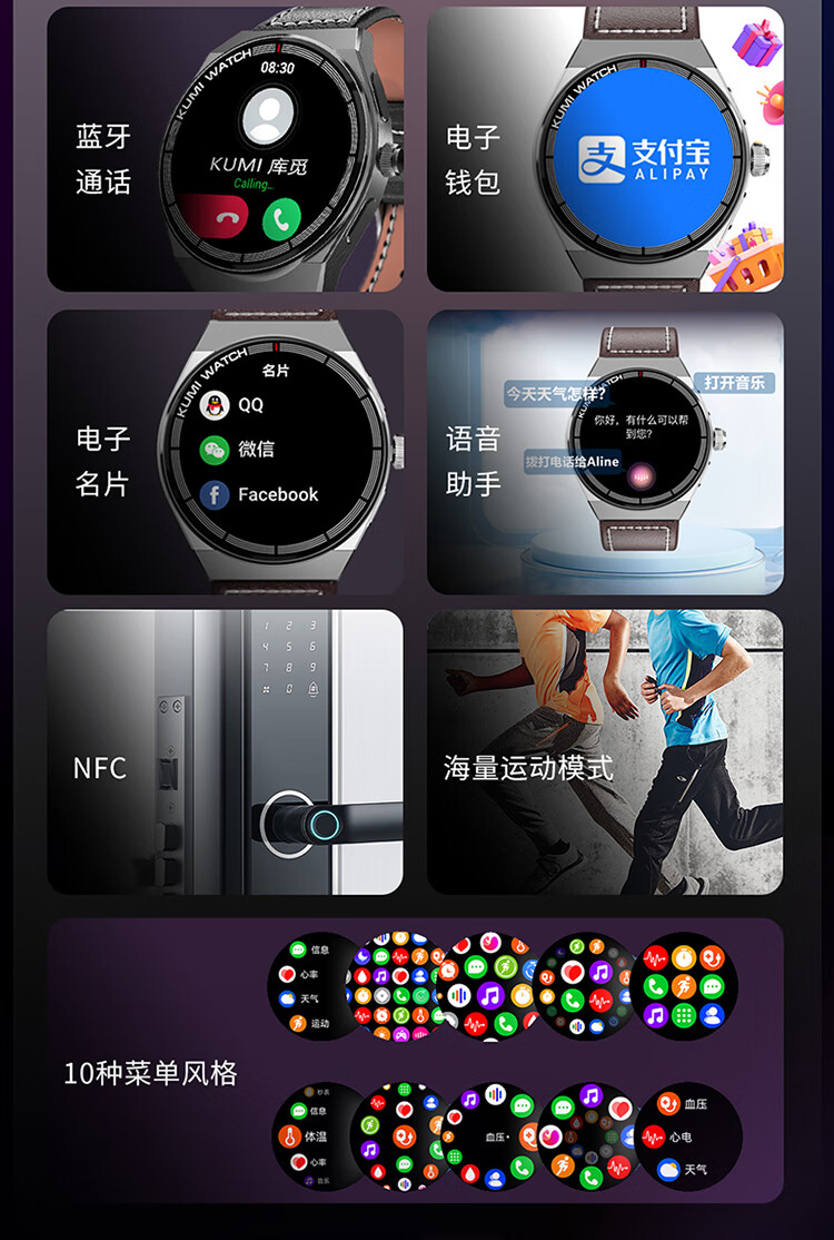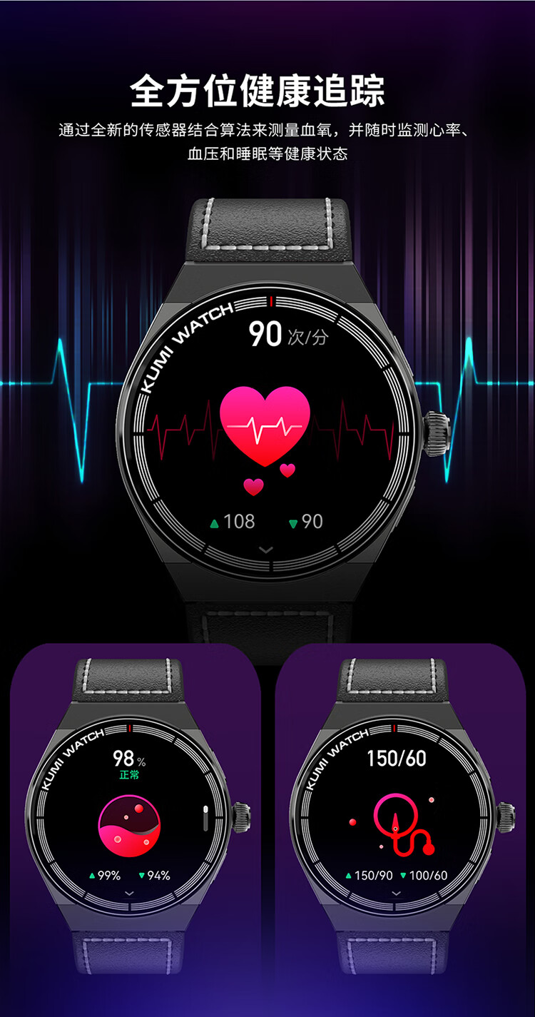 KUMI GT5 Max 智能手表男运动健康商务心率血压睡眠监测防水语音助手NFC门禁离线钱包支付