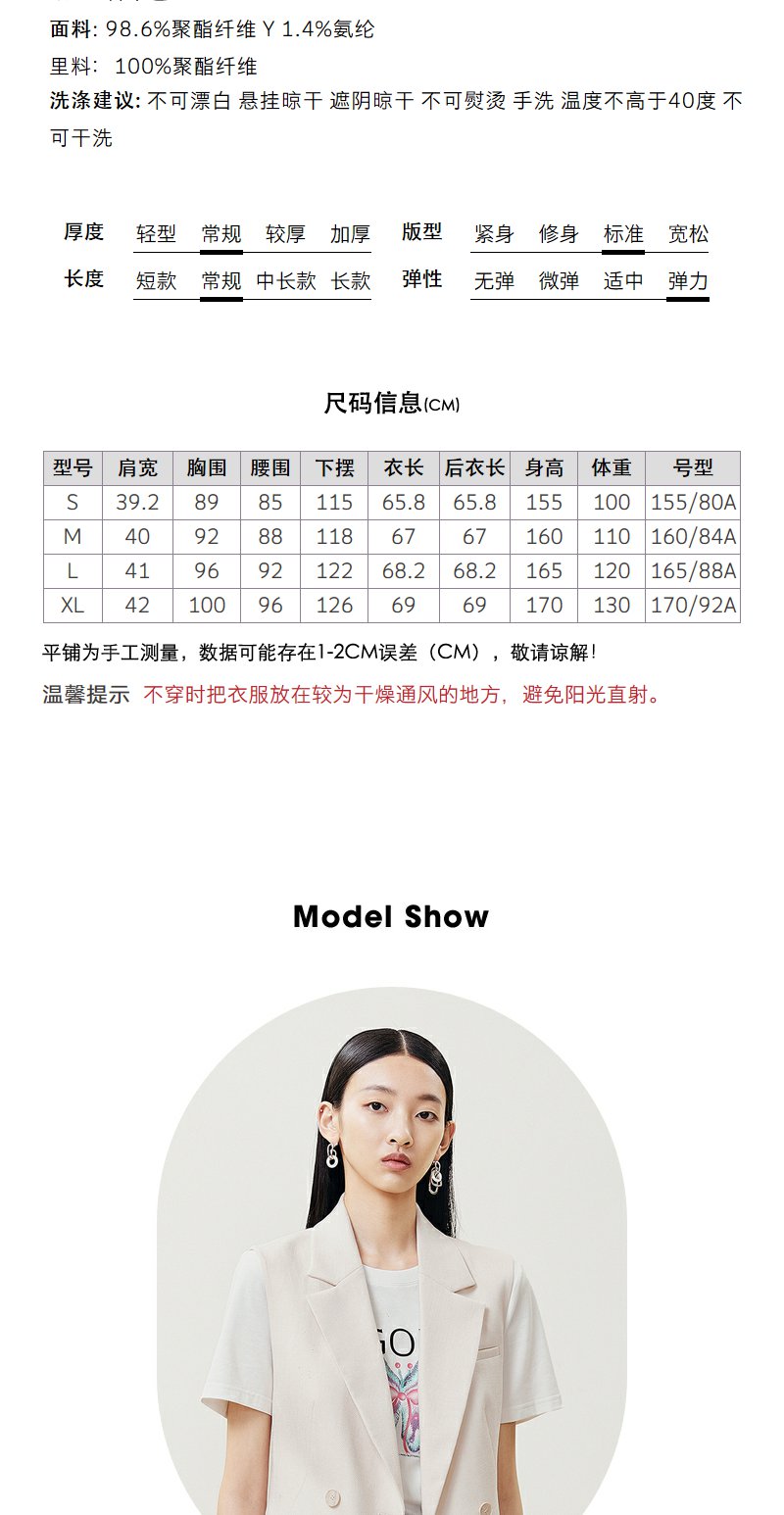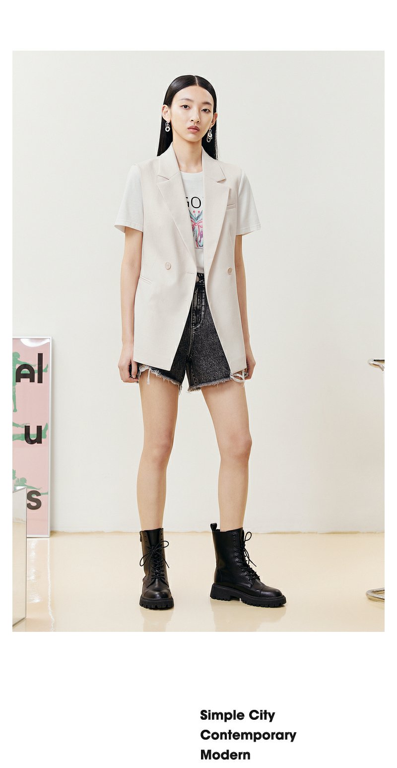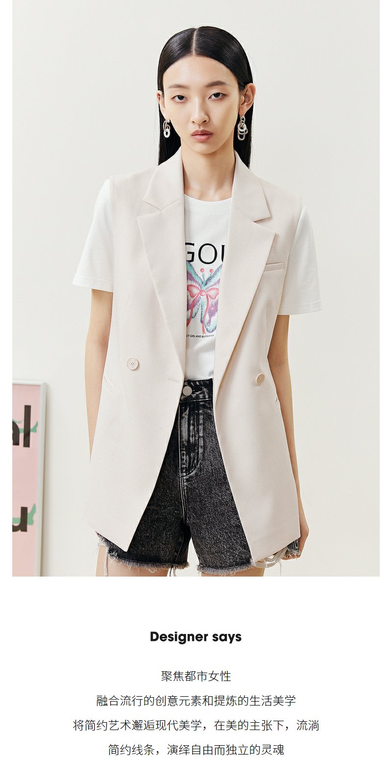 NEELLY纳俪商场同款春夏无袖西装马夹女时尚休闲通勤职业背心外套N22051D01151