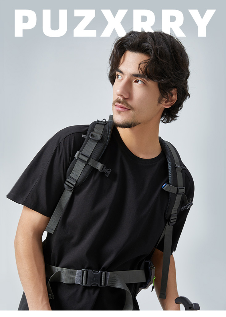 puzxrry男士短袖t恤夏季圆领青年户外运动休闲宽松凉感速干体恤衫