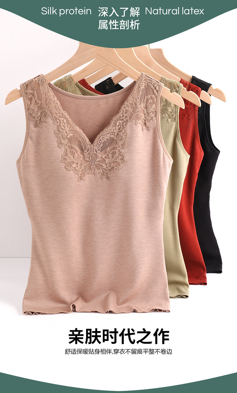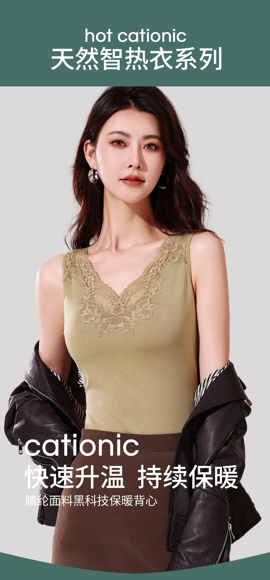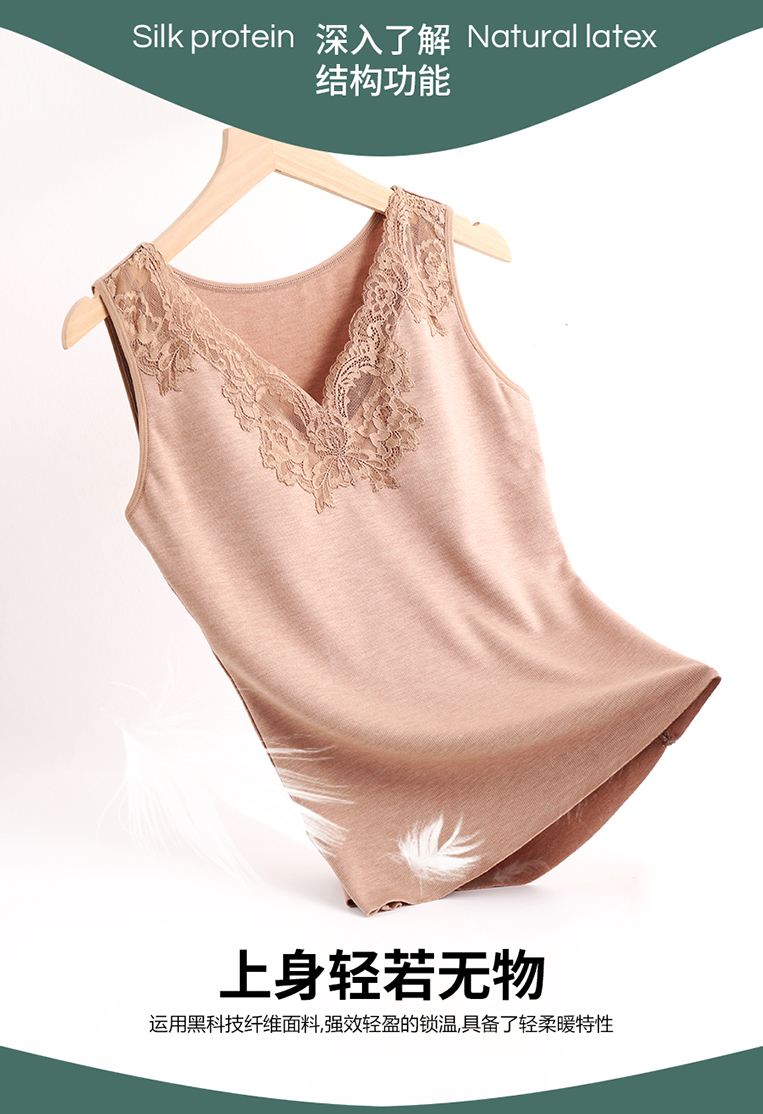【149元2件,数胸垫一体保暖背心蕾丝V领气质女款内搭外穿背心BNM8352