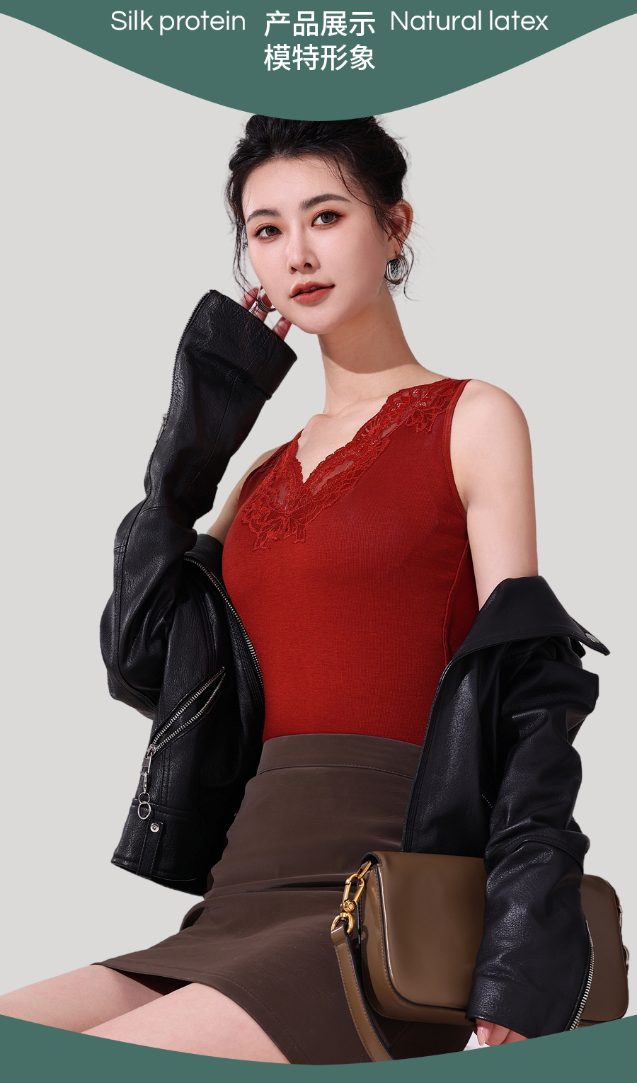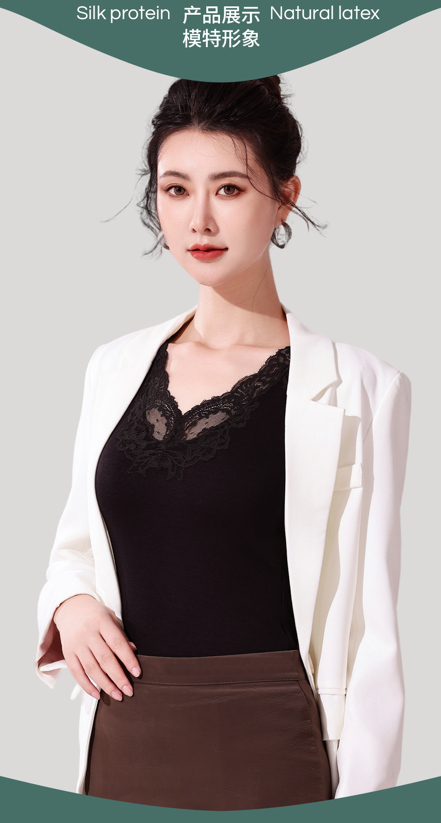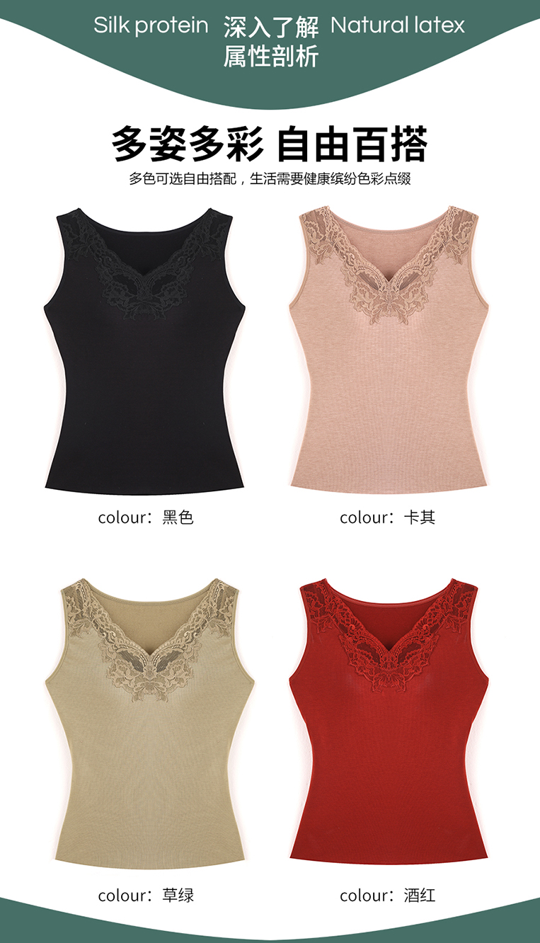 【149元2件,数胸垫一体保暖背心蕾丝V领气质女款内搭外穿背心BNM8352