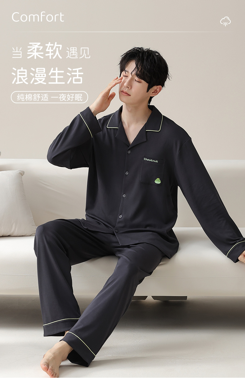 给先生的舒适感|100% 棉男士睡衣 宽松透气抗起球ZXJJN2632