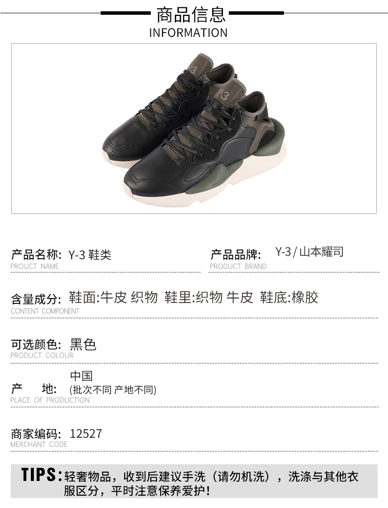 【超惠秒】Y-3 男士 百搭真皮轻便软弹运动休闲鞋 12527