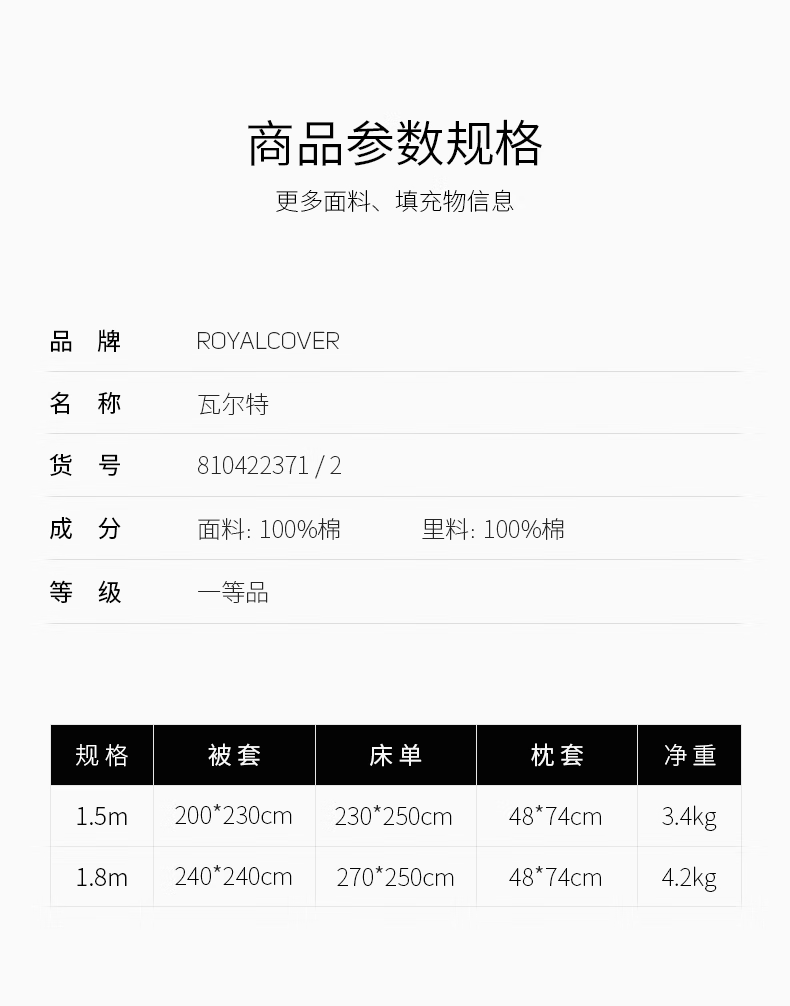罗卡芙纯棉加厚床品套件 全棉磨毛印花四件套 瓦尔特