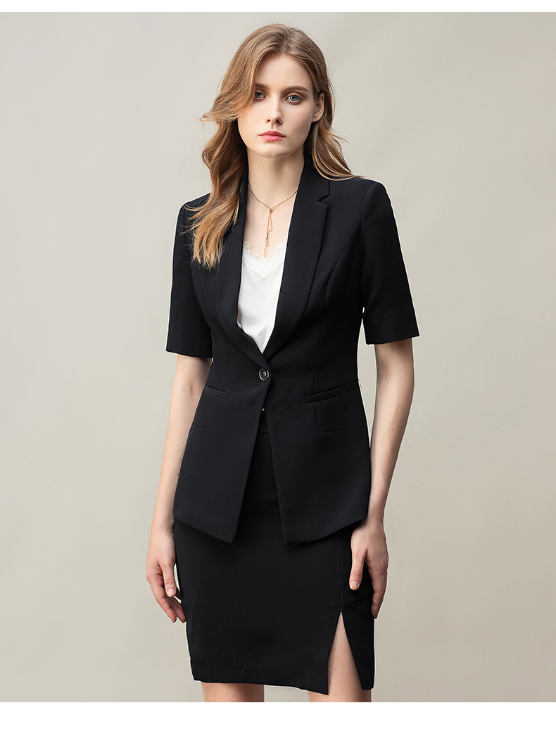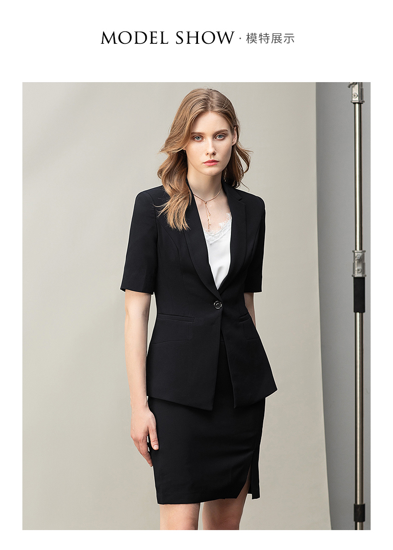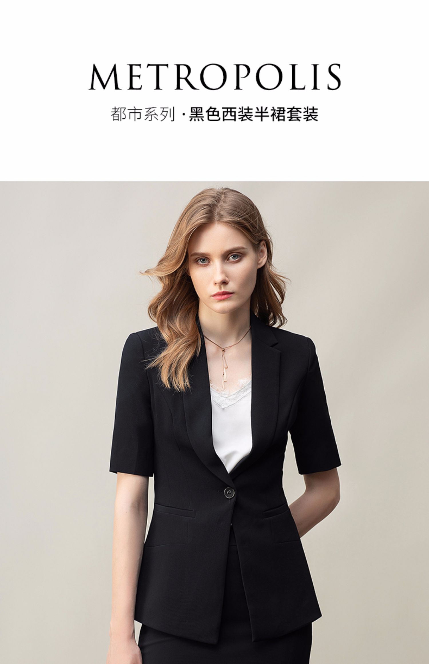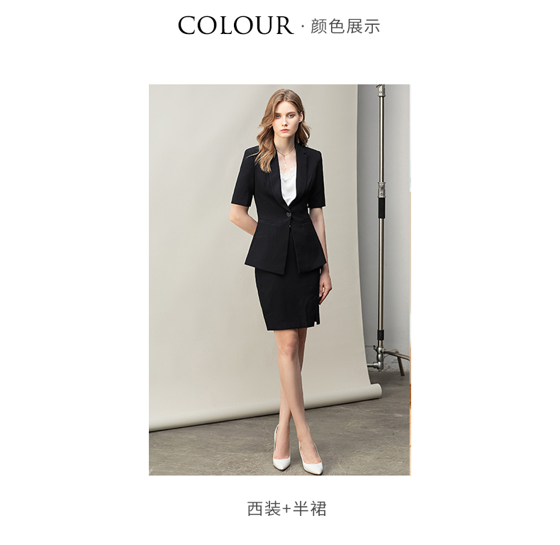 IWY/黑色女装套装一粒扣气质收腰显瘦西装短袖上班族百搭职业套裙 CS11232黑色
