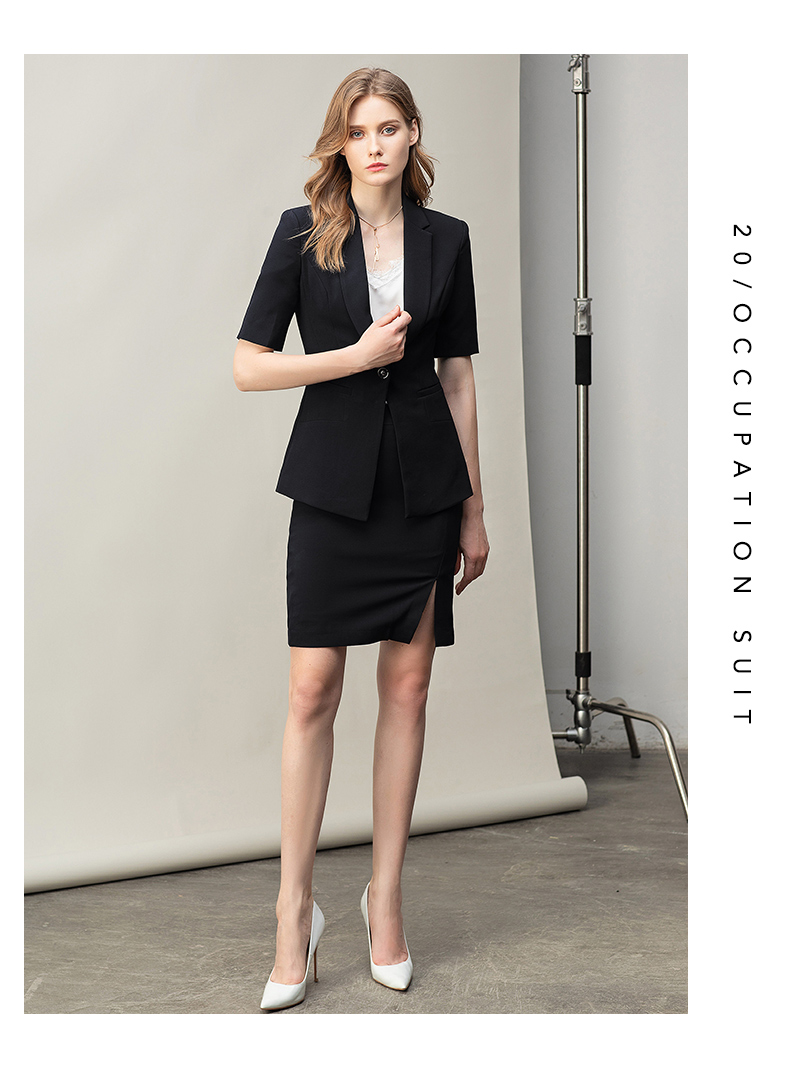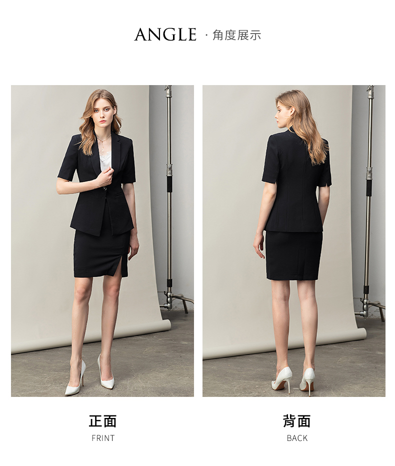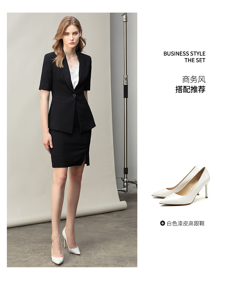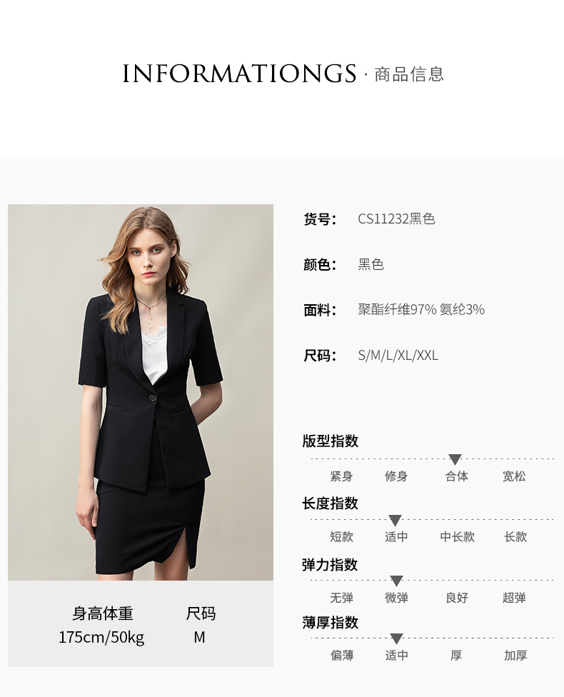 IWY/黑色女装套装一粒扣气质收腰显瘦西装短袖上班族百搭职业套裙 CS11232黑色