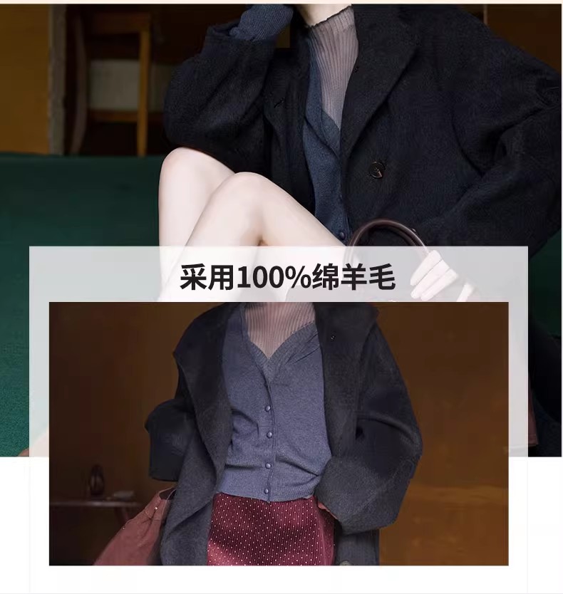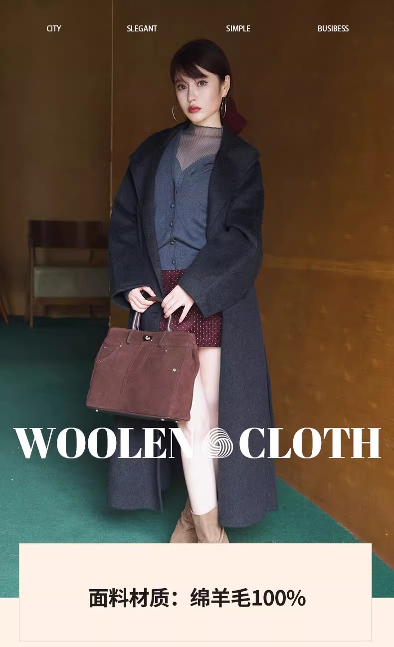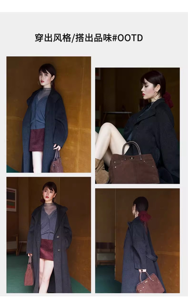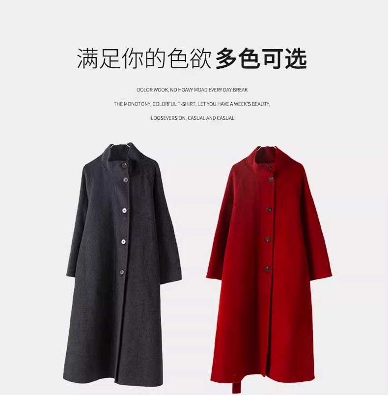 【门店同款】ENJOY冬季柔韧与共月光海面立领排扣大衣 159495842