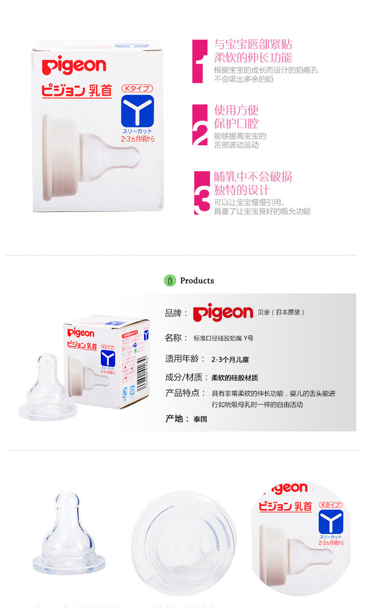 【一般贸易】日本贝亲PigeonK系列标准口径硅胶奶嘴 Y