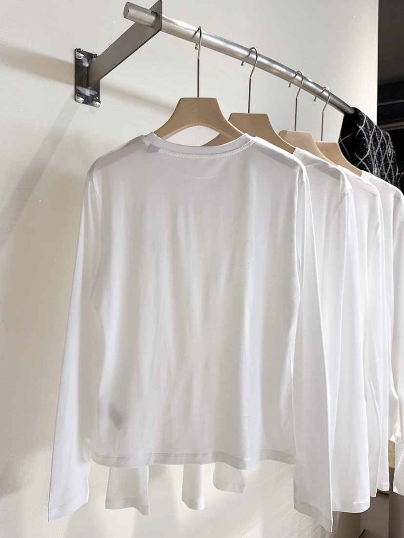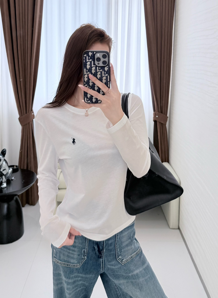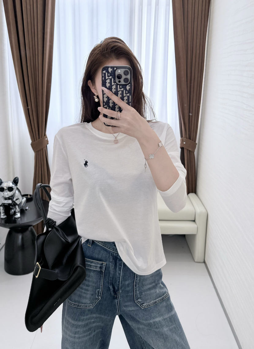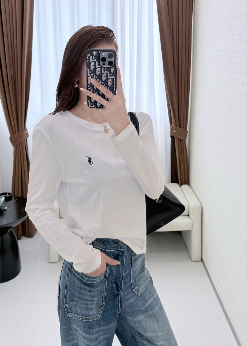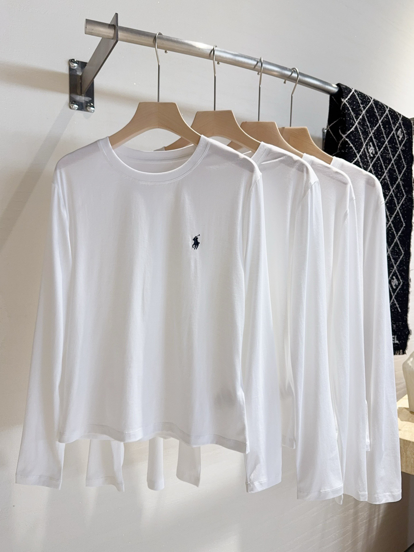 33-1 圆正渠道货 小马刺绣 基础款 女士白色圆领长袖 单穿打底