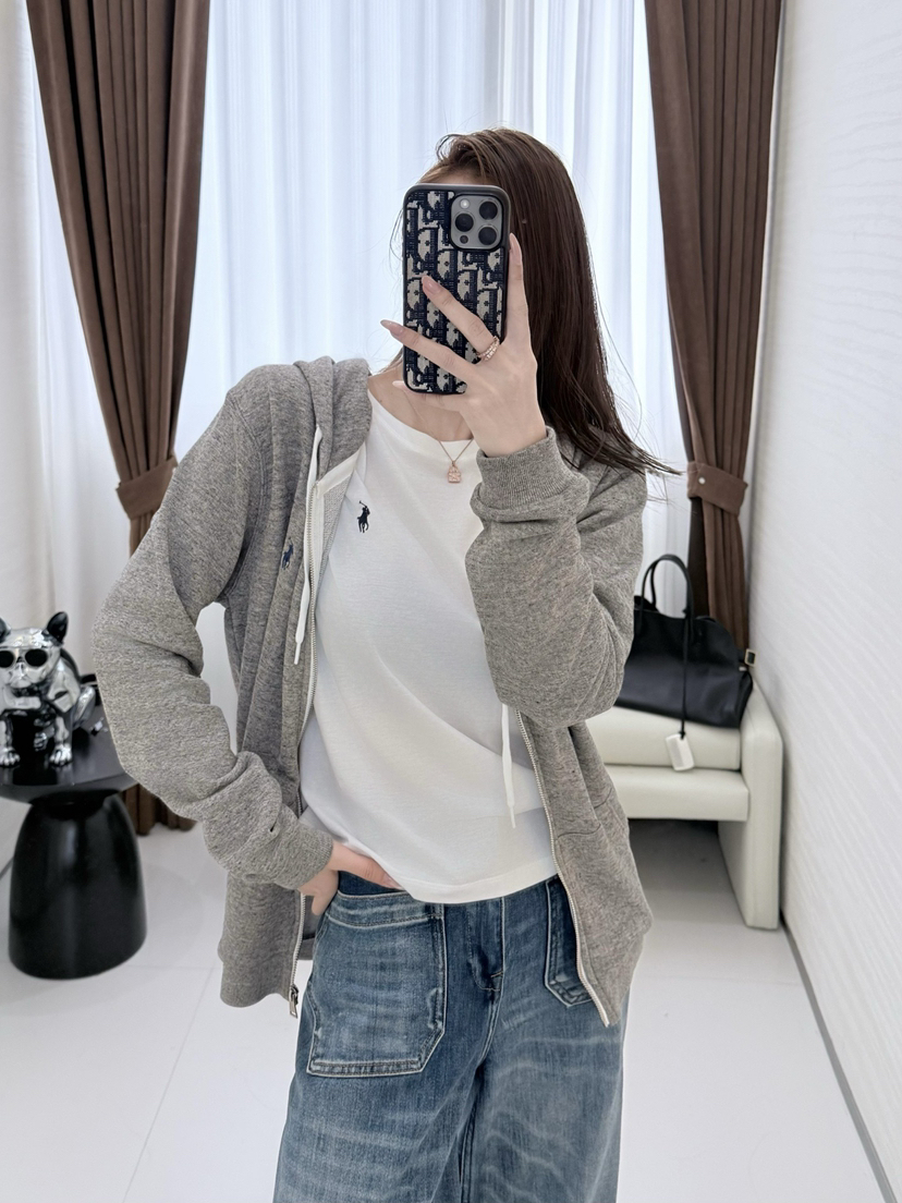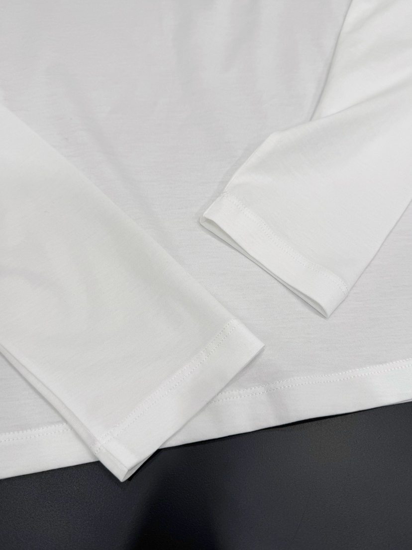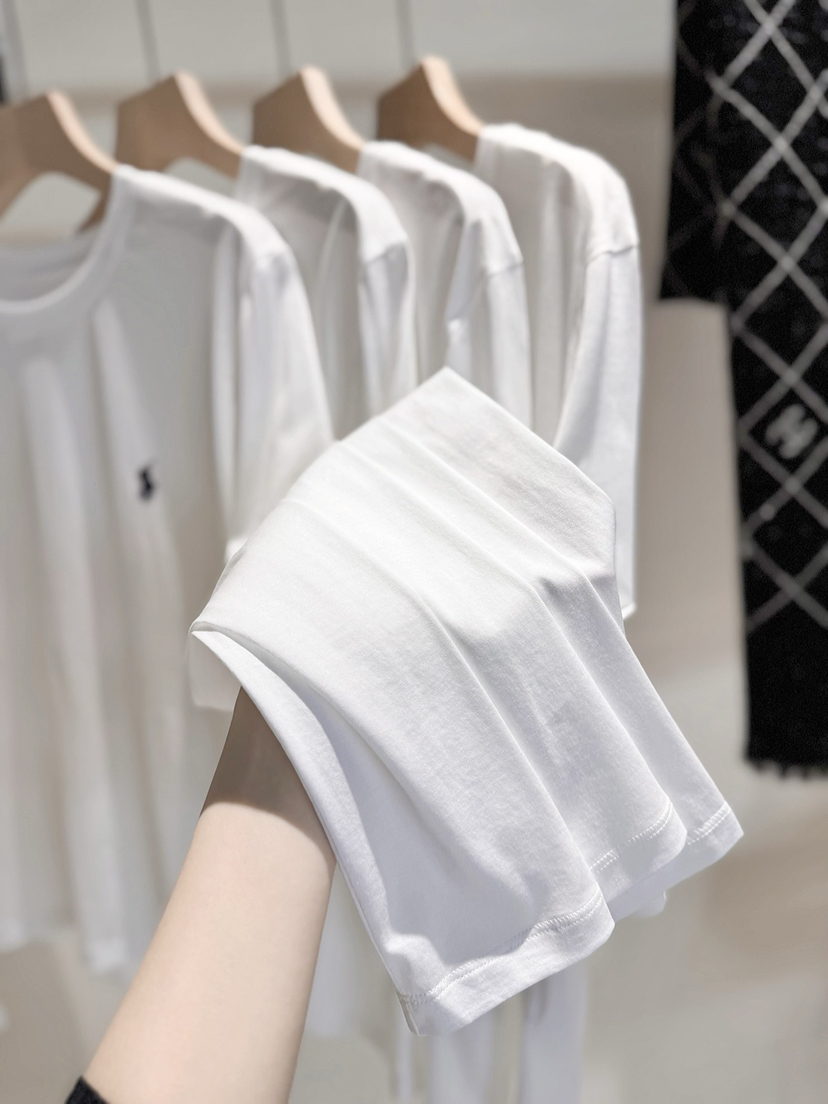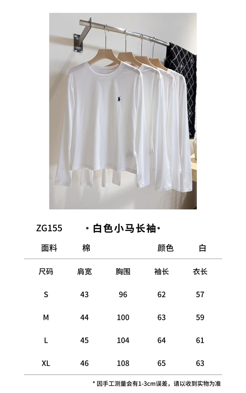 33-1 圆正渠道货 小马刺绣 基础款 女士白色圆领长袖 单穿打底