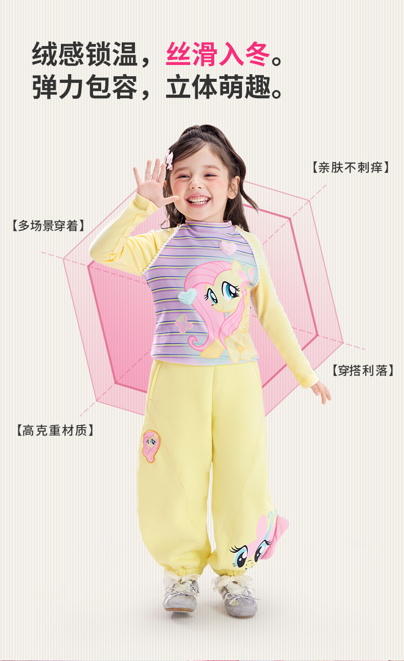 小马宝莉联名年衣童装裤子秋冬新款儿童弯刀裤小马宝莉加绒裤子