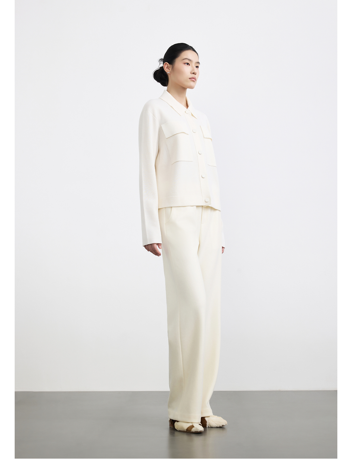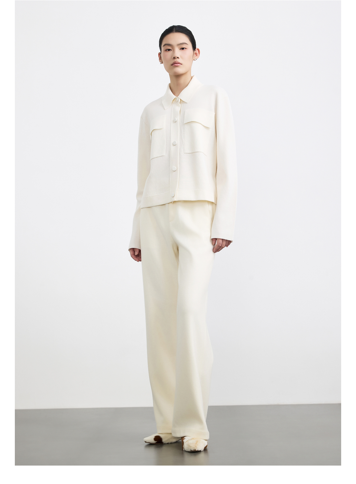 商场同款PURE TOUCH女装25秋冬新款翻领羊毛针织开衫宽松针织外套