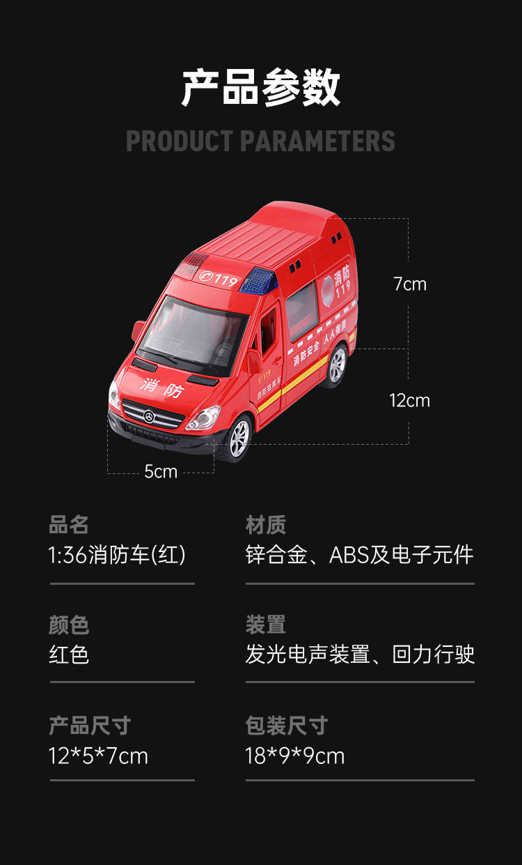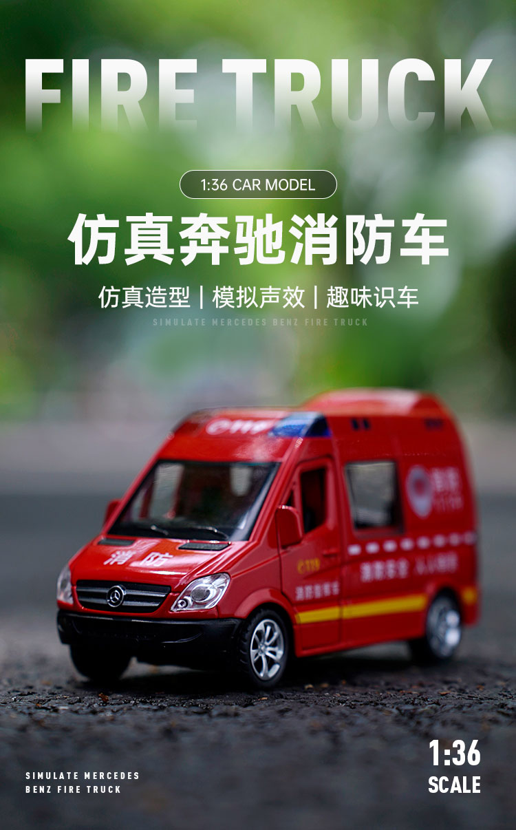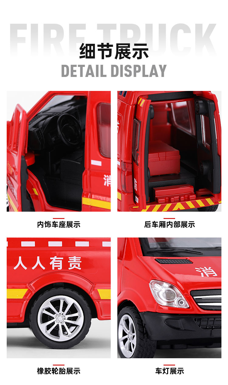 【实付满199送钥匙扣】【1:36消防车】合金汽车模型摆件儿童玩具车送礼仿真车模
