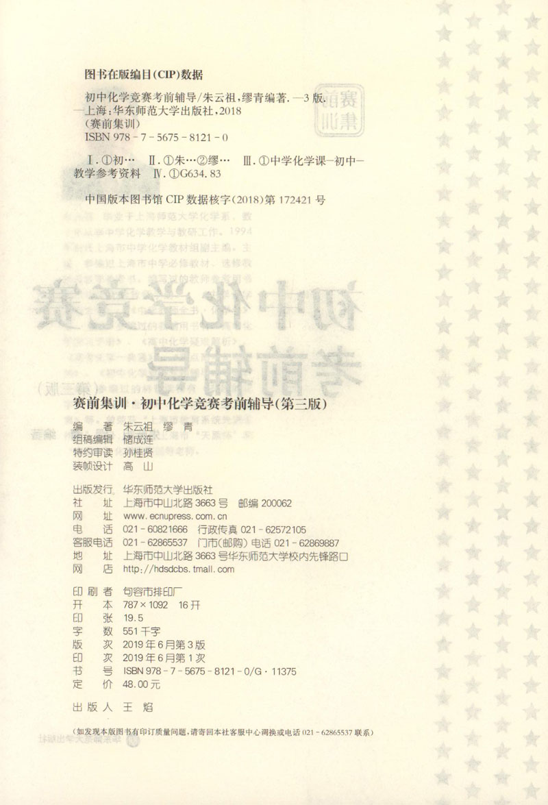 初中化学竞赛考前辅导 赛前集训 第三版 竞赛考前辅导 金牌教练 经典竞赛教材知识梳理例题精讲实战演练 华东师范大学出版社