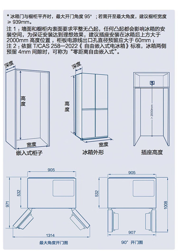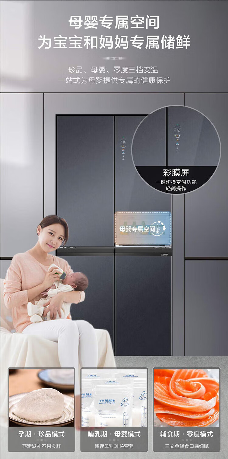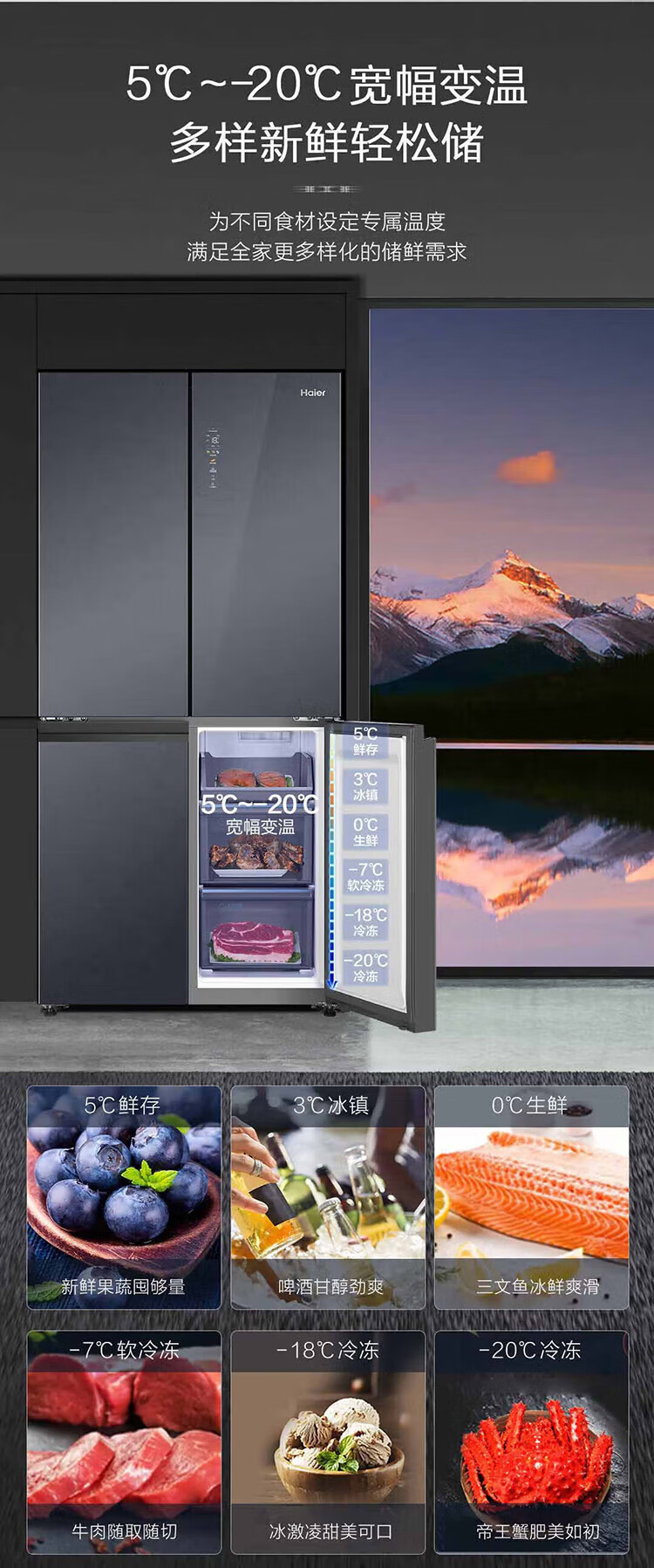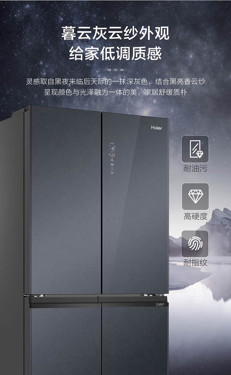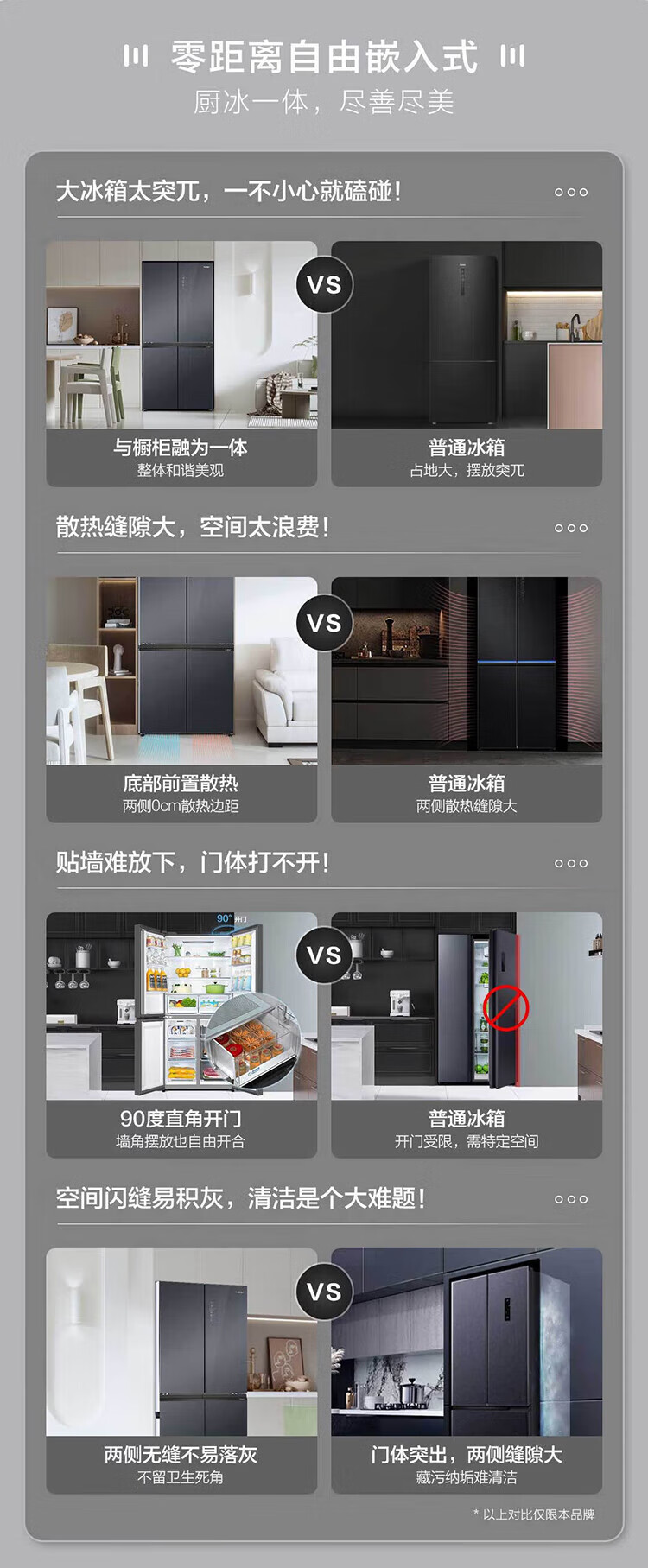 海尔(Haier)零嵌入式冰箱463升零距离四开门双开门十字门家用超薄家电一级能效双变频风冷无霜大容量底部散热 463L+黑金净化+阻氧干湿分储+WiFi智控