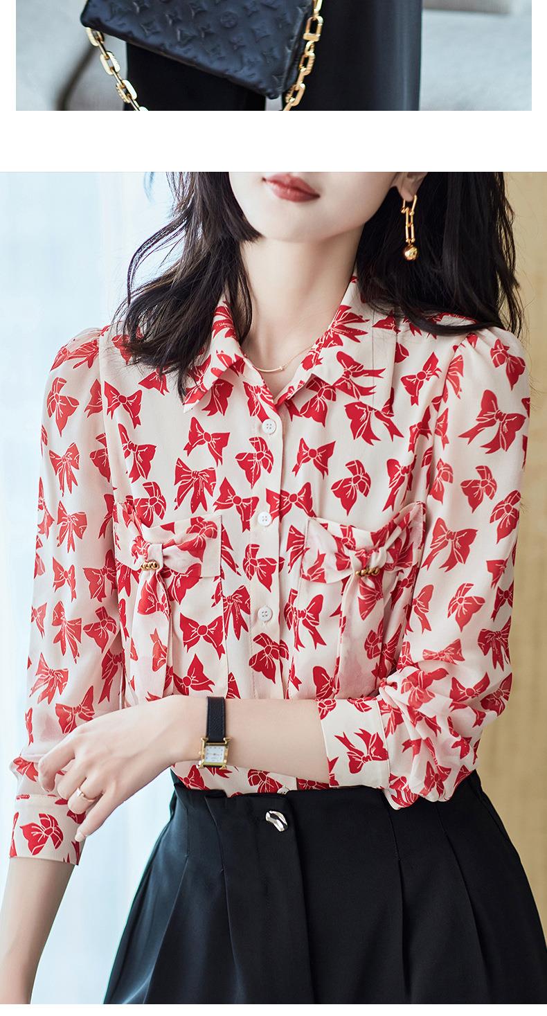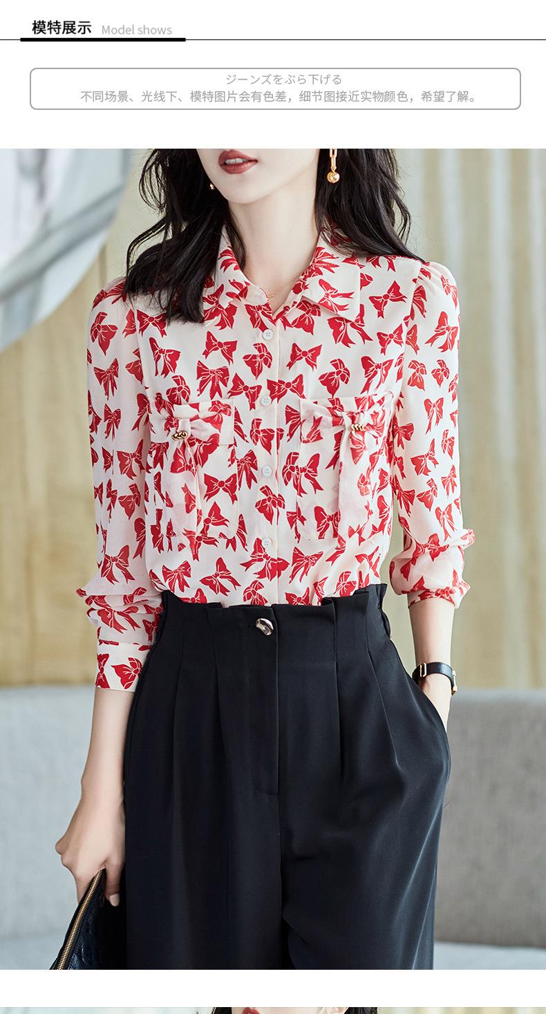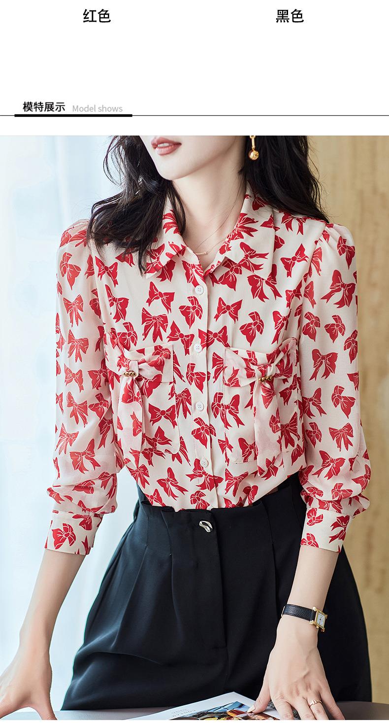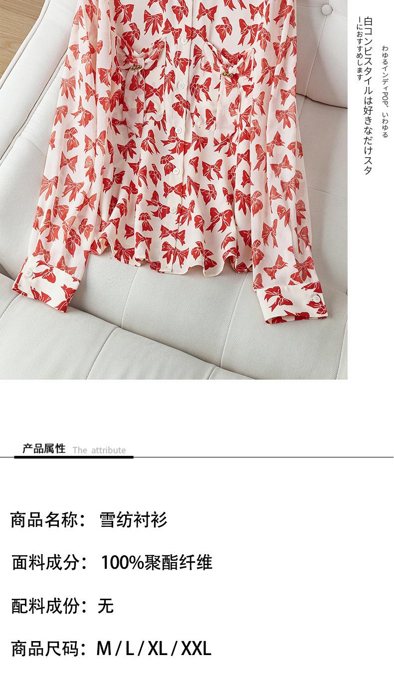 2023秋装新款衬衫女长袖宽松雪纺衫蝴蝶结女士衬衣A2393