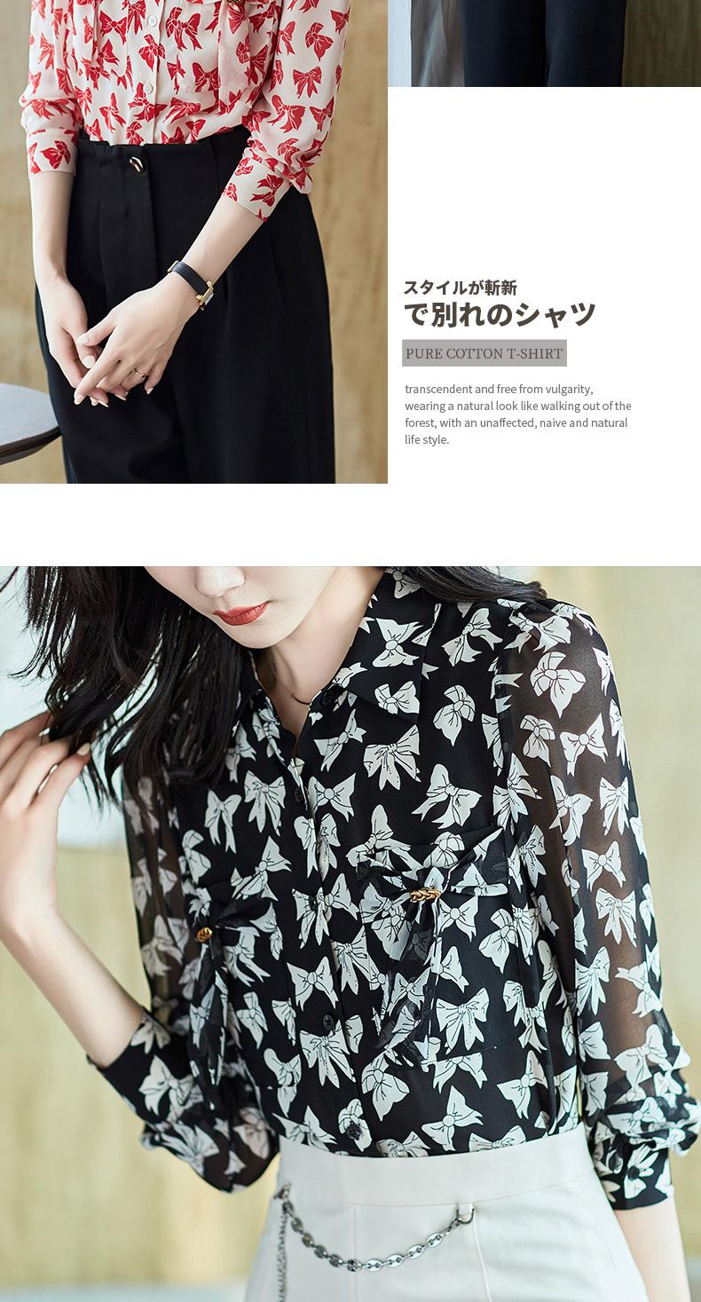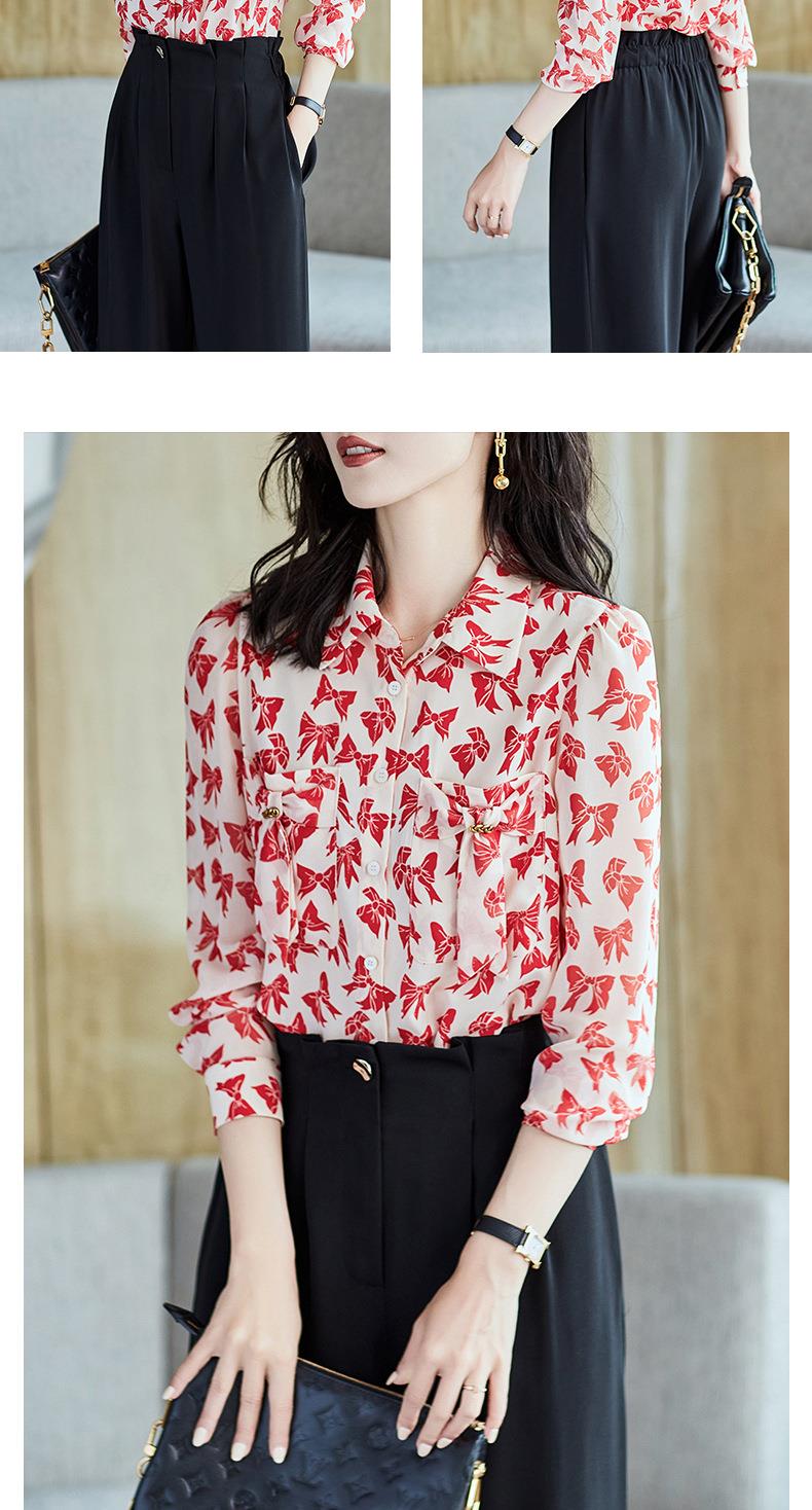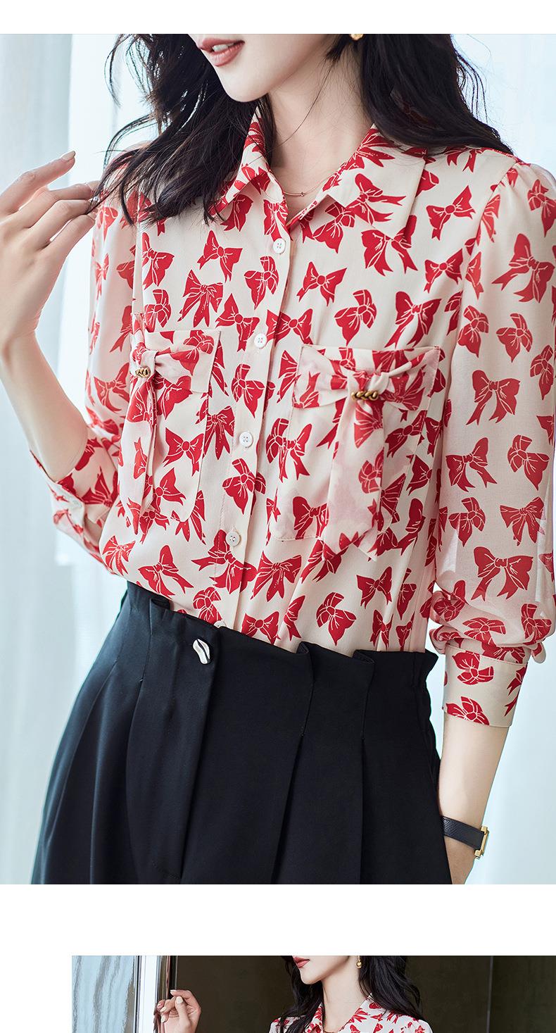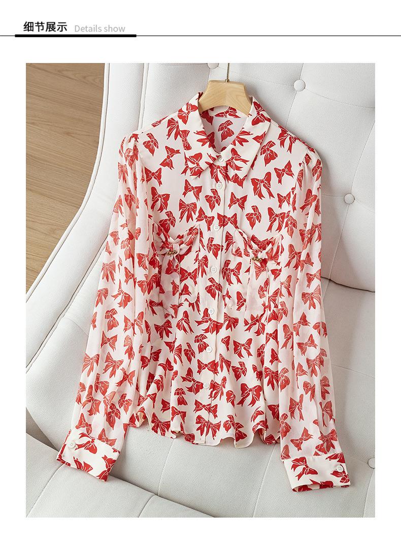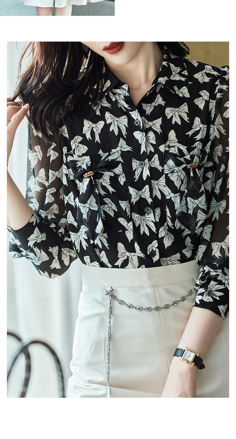 2023秋装新款衬衫女长袖宽松雪纺衫蝴蝶结女士衬衣A2393