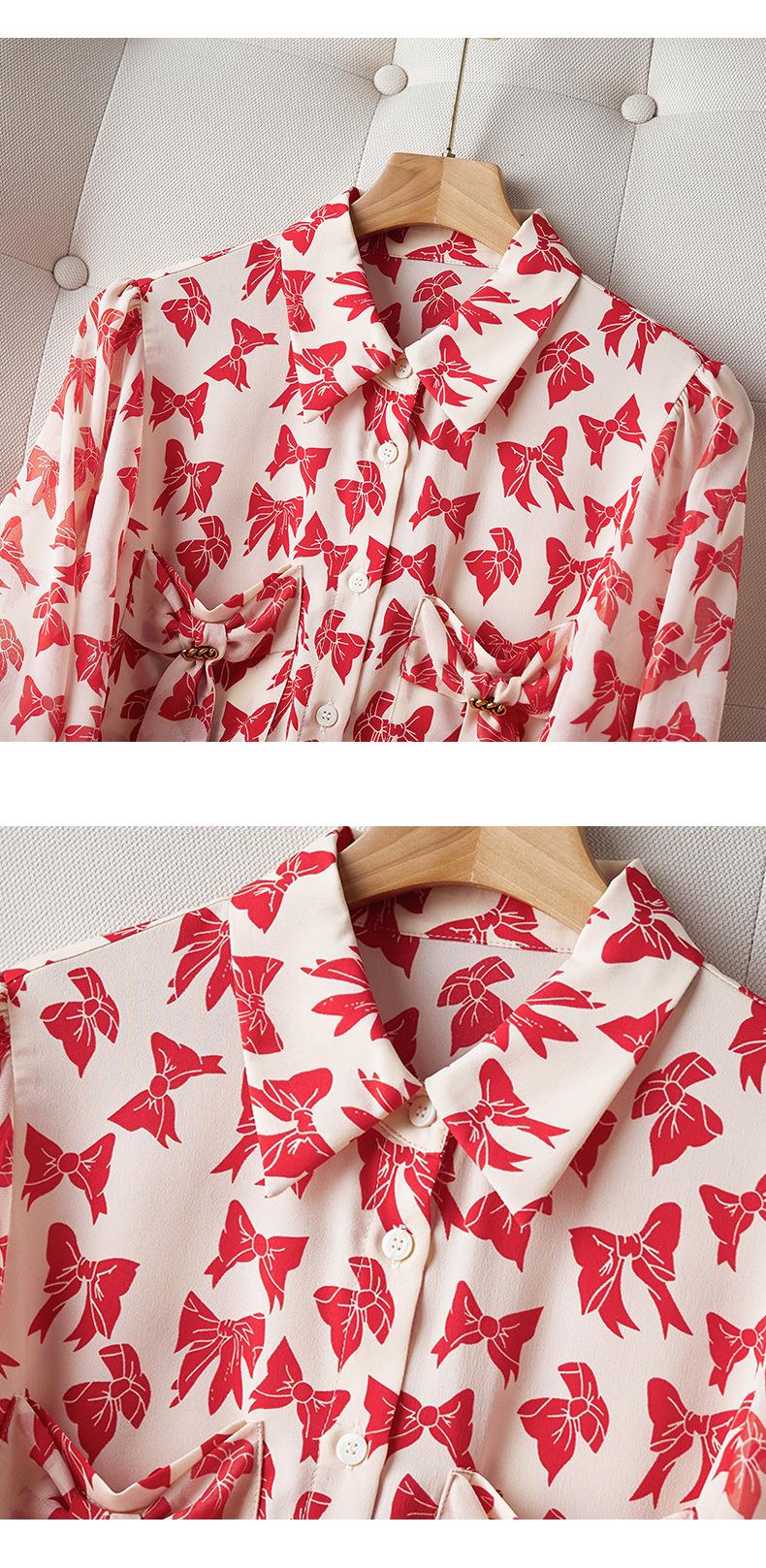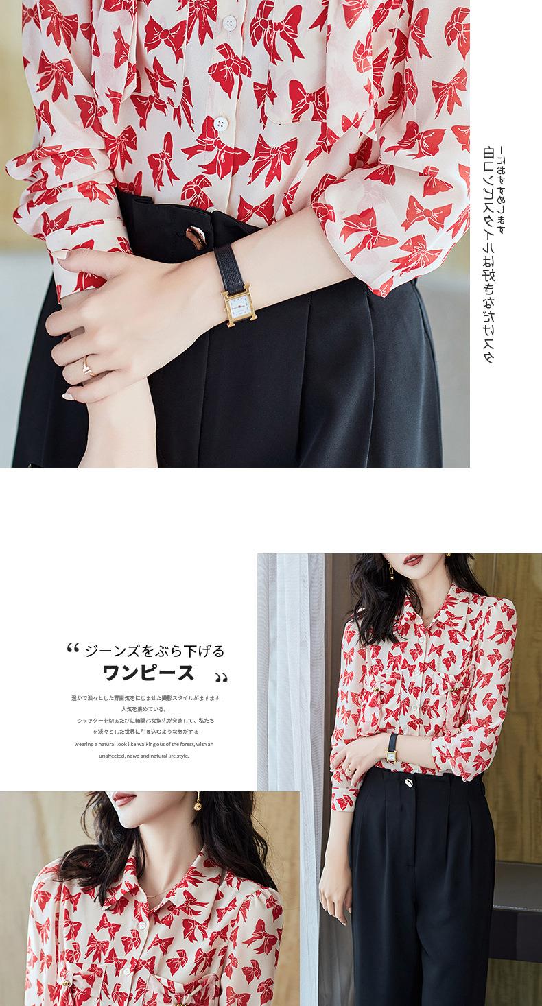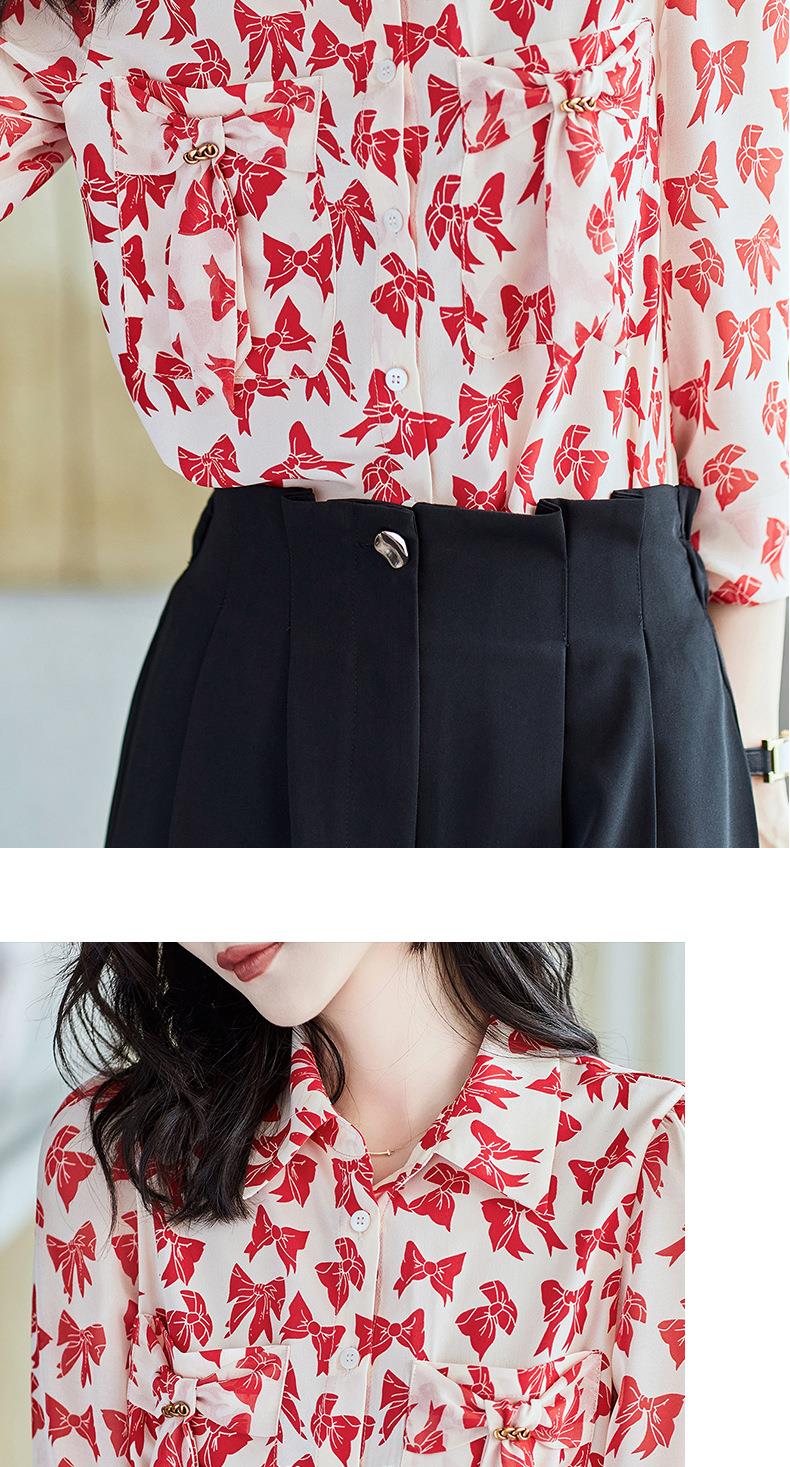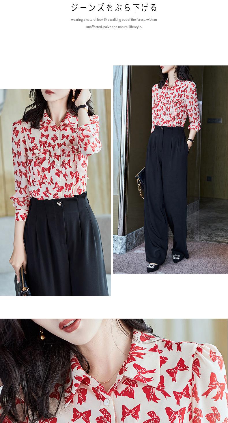 2023秋装新款衬衫女长袖宽松雪纺衫蝴蝶结女士衬衣A2393