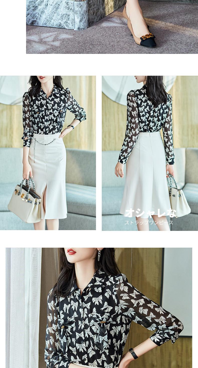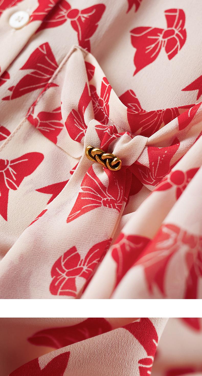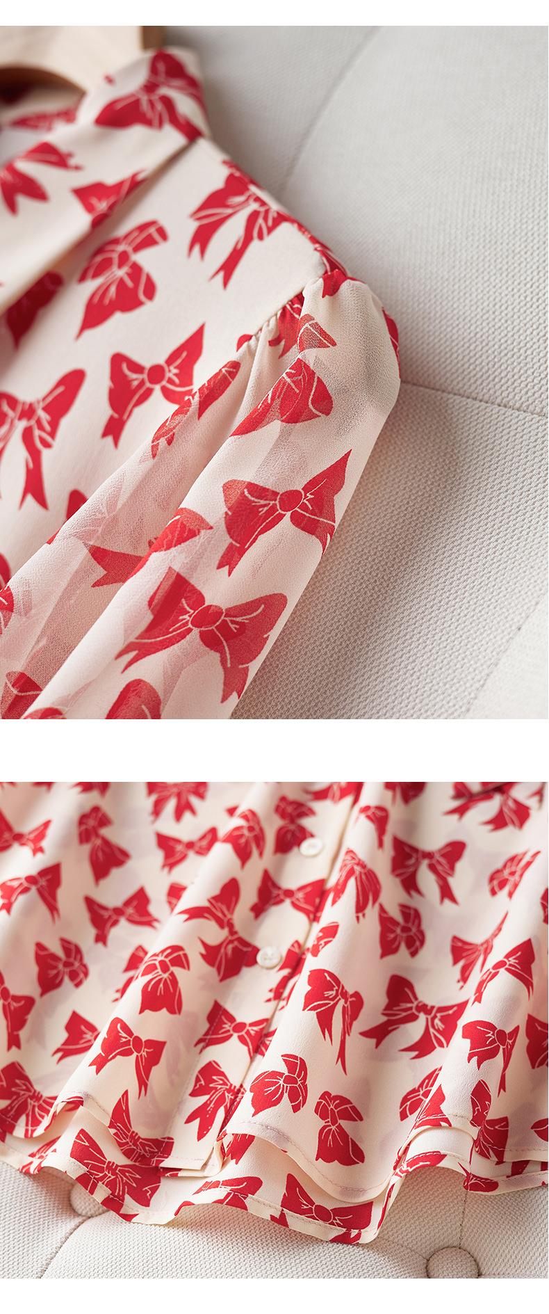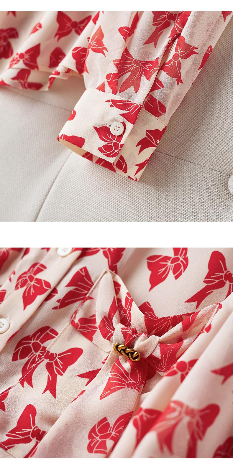 2023秋装新款衬衫女长袖宽松雪纺衫蝴蝶结女士衬衣A2393