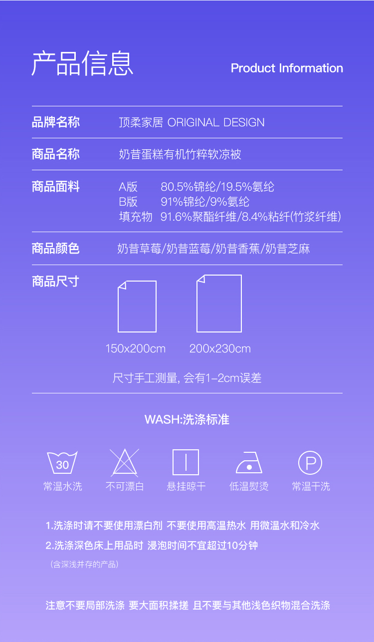 顶柔奶昔蛋糕有机竹粹软凉被-BX2250