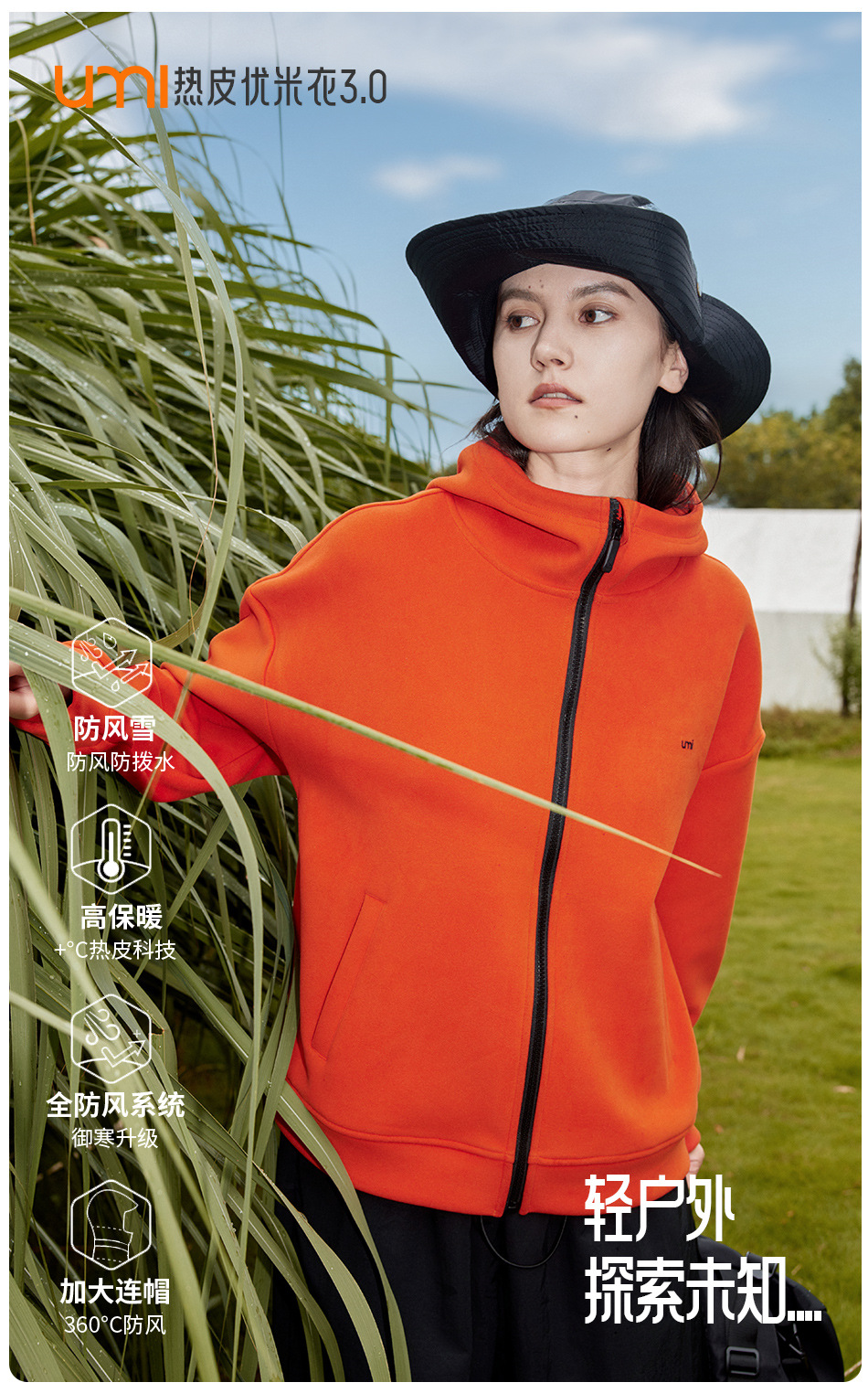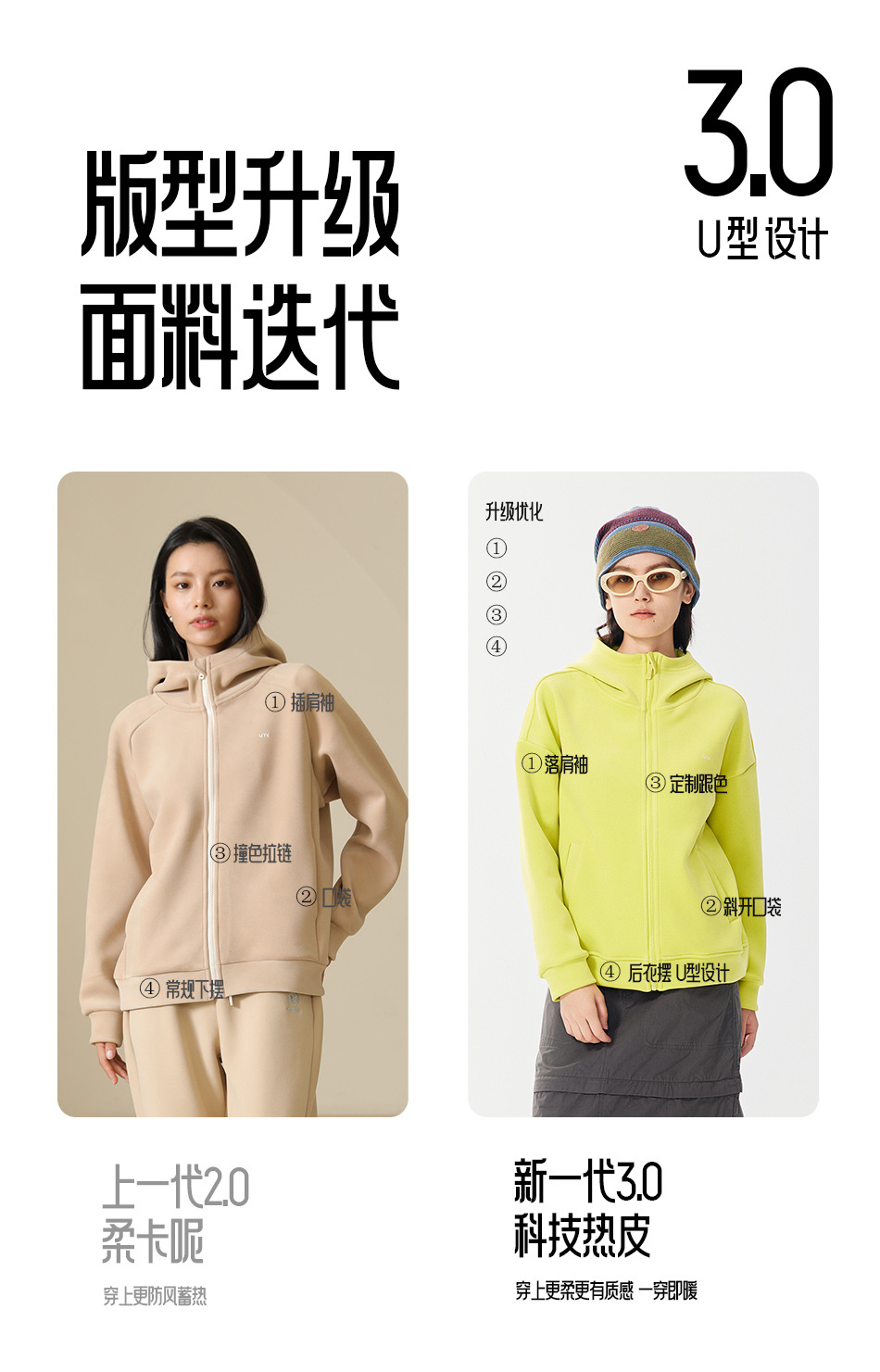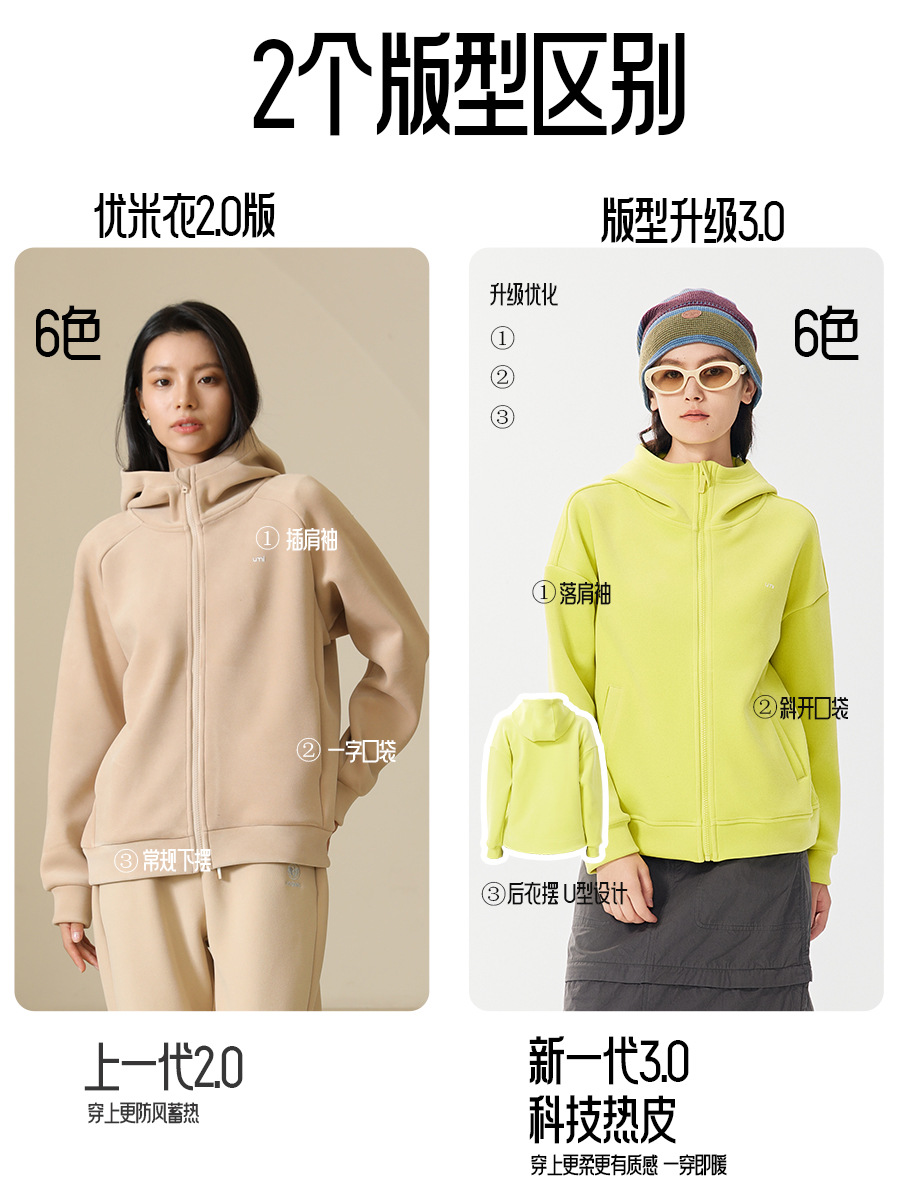 【新一代3.0 热皮柔卡呢外套】【专柜品质】男女同款防风加厚连帽卫衣外套 轻暖舒适有型轻户外运动外套