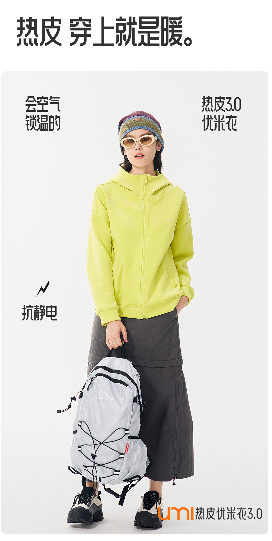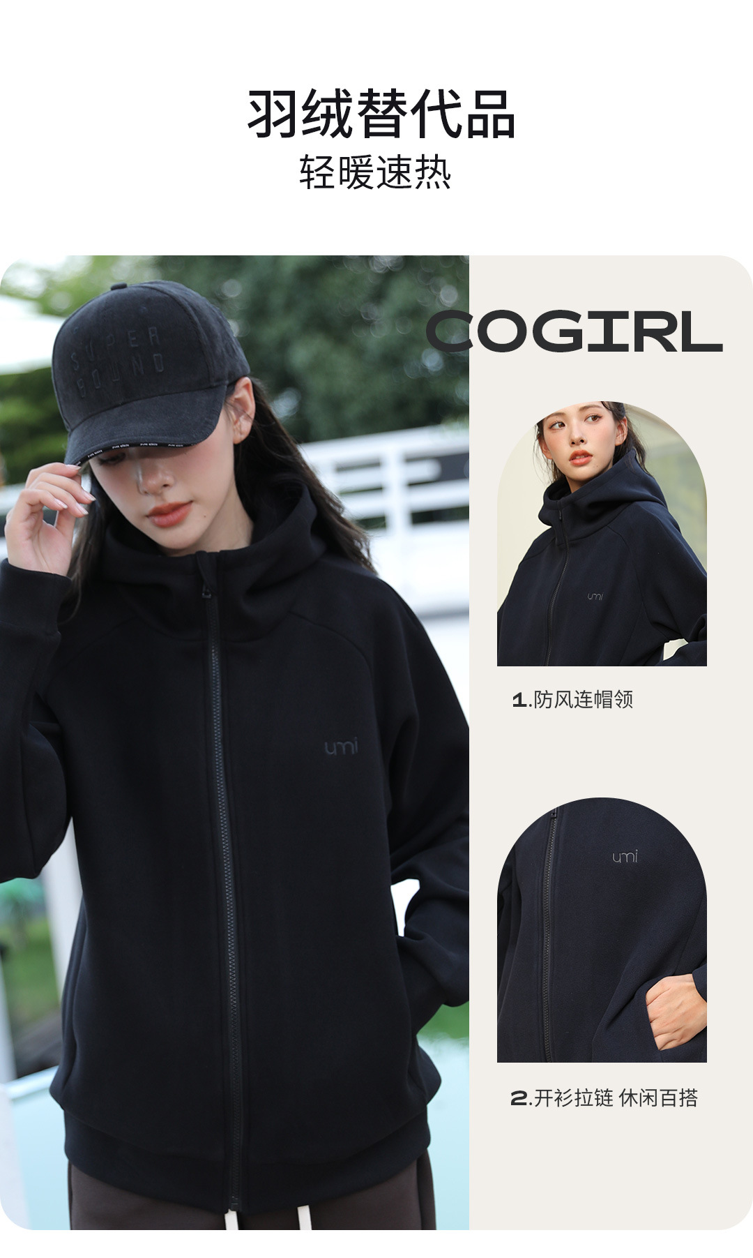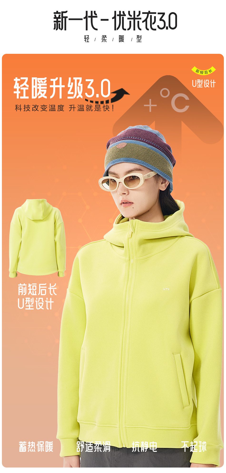 【新一代3.0 热皮柔卡呢外套】【专柜品质】男女同款防风加厚连帽卫衣外套 轻暖舒适有型轻户外运动外套