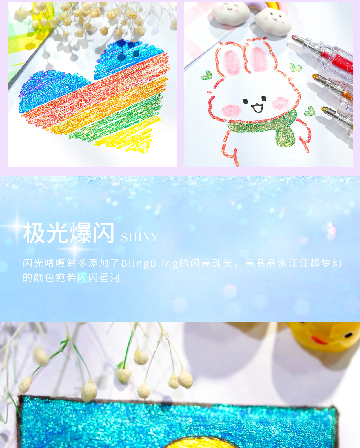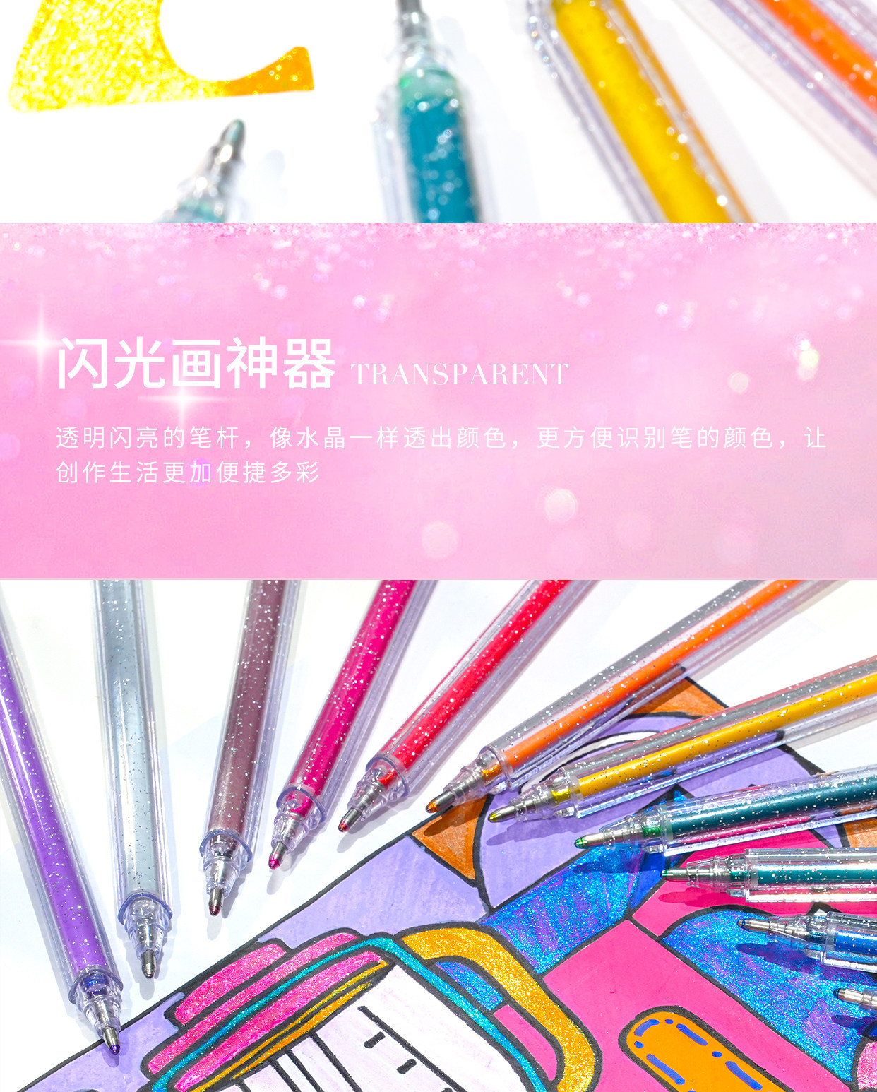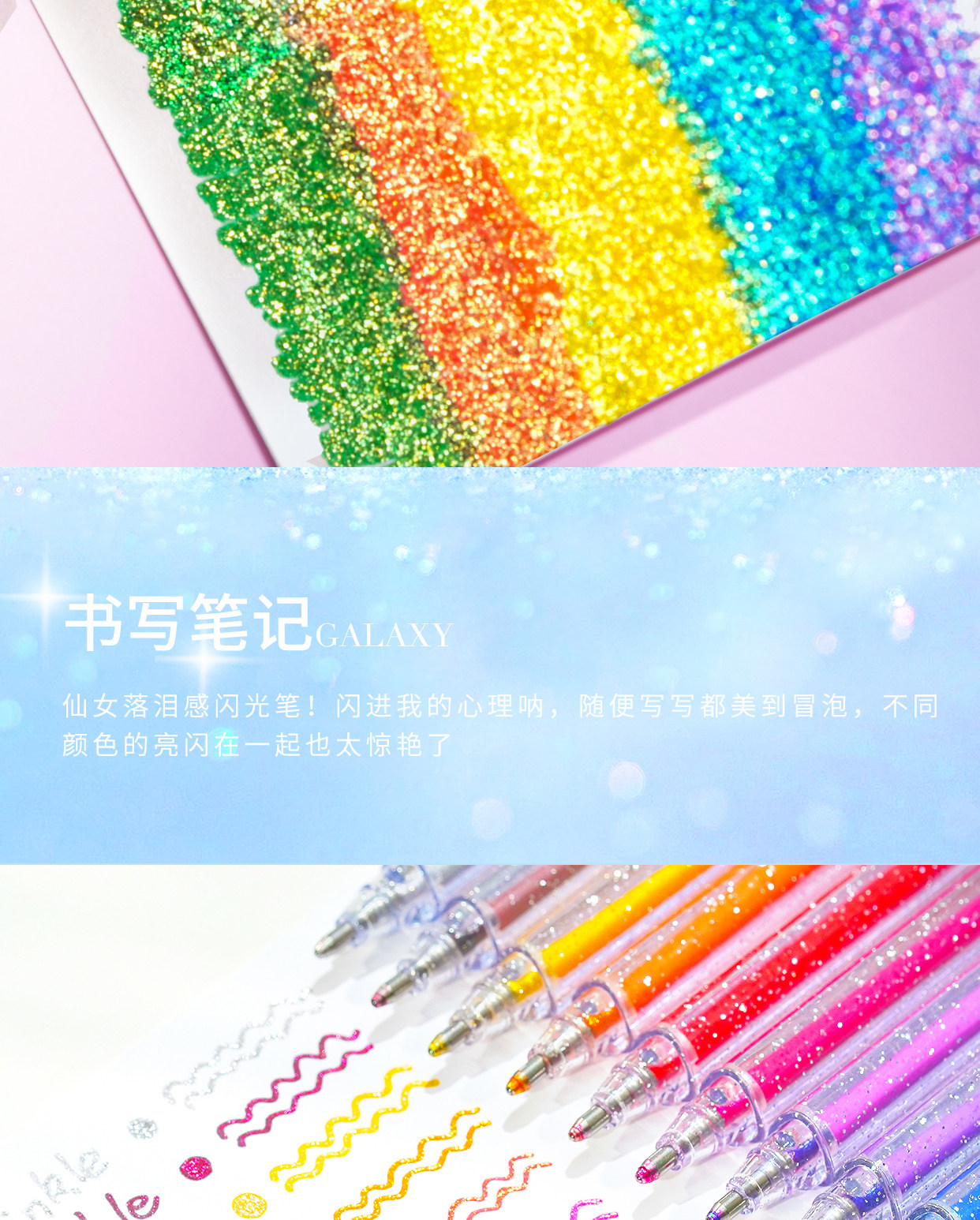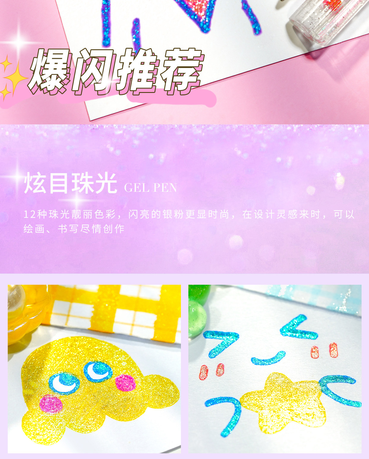 开学季福利!闪光啫喱笔闪光笔荧光手账珠光闪粉亮晶晶流沙彩色荧光笔