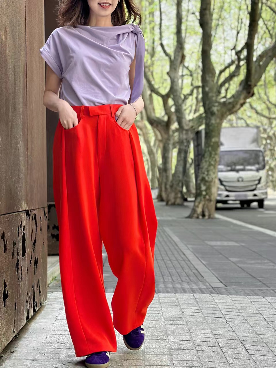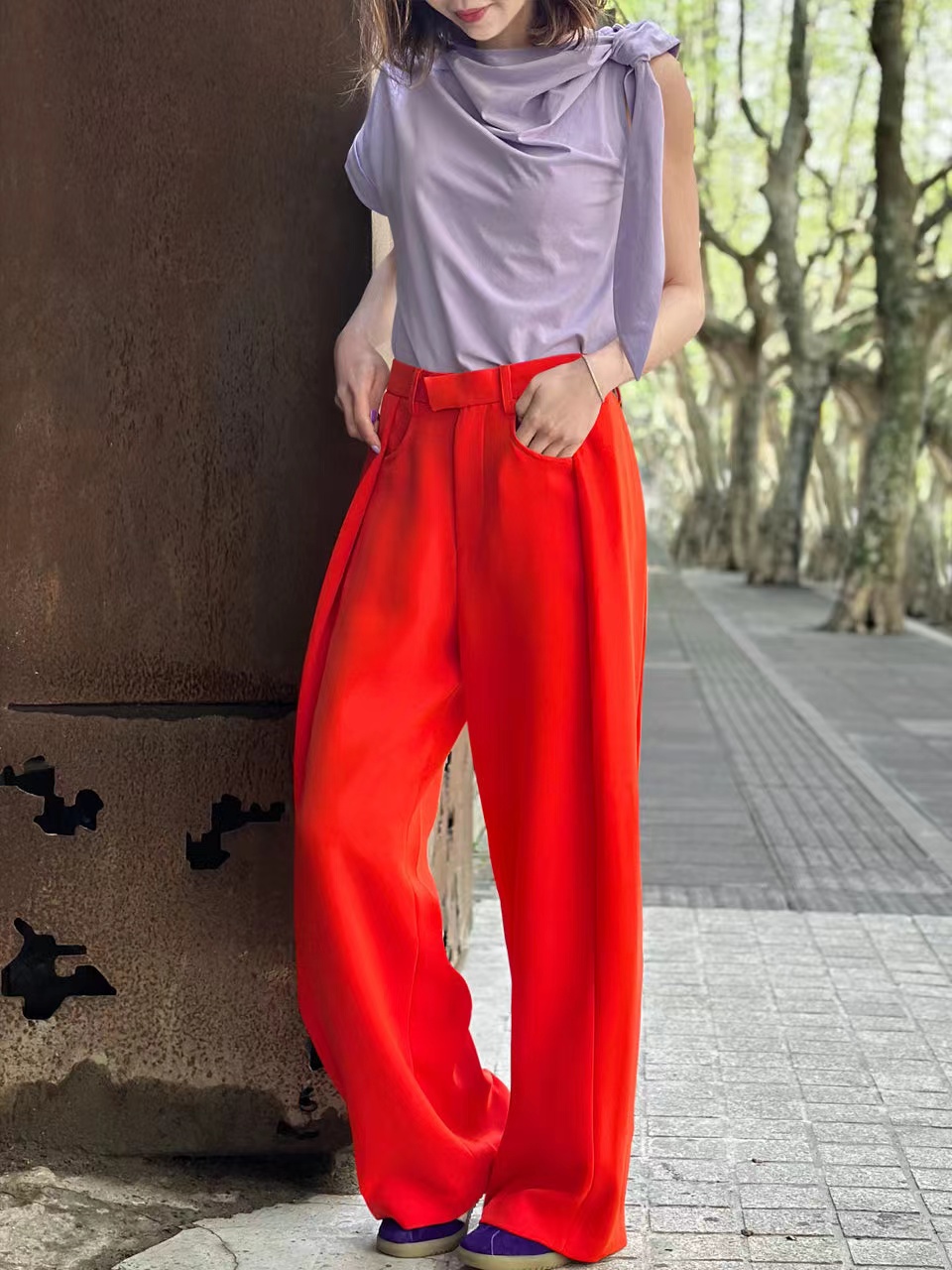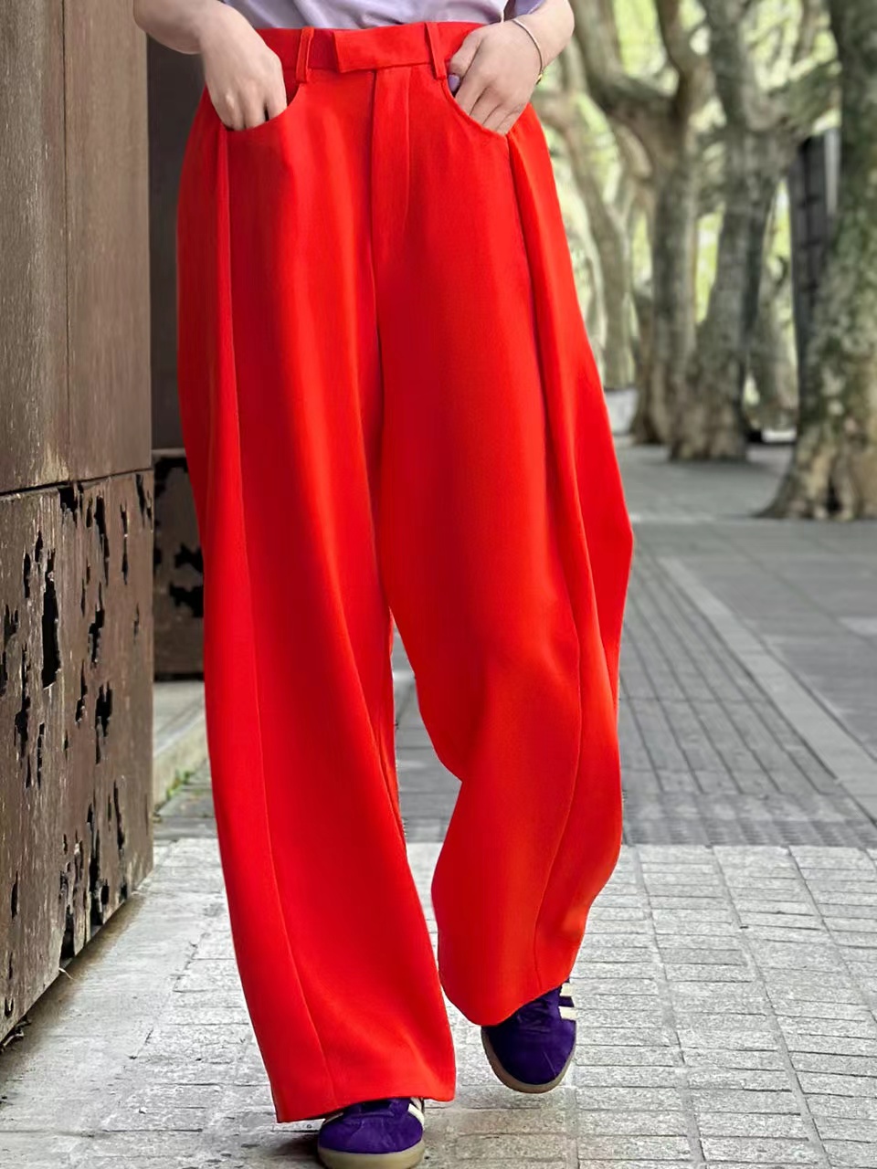 TYNVIE 后松紧腰阔腿裤-亮橘