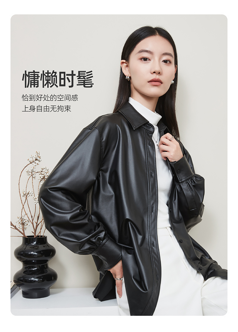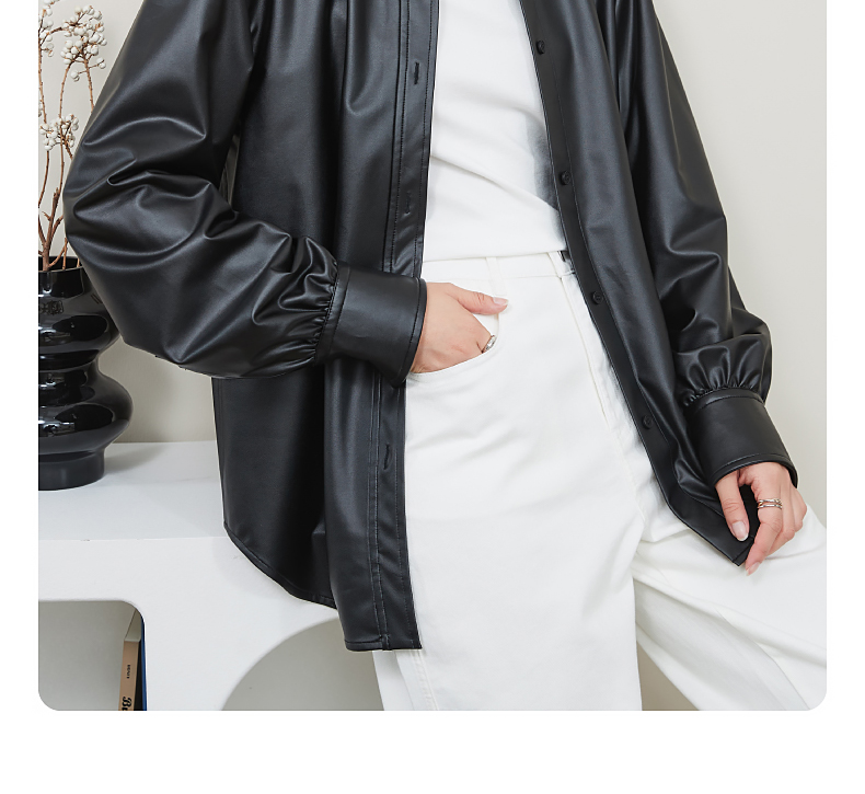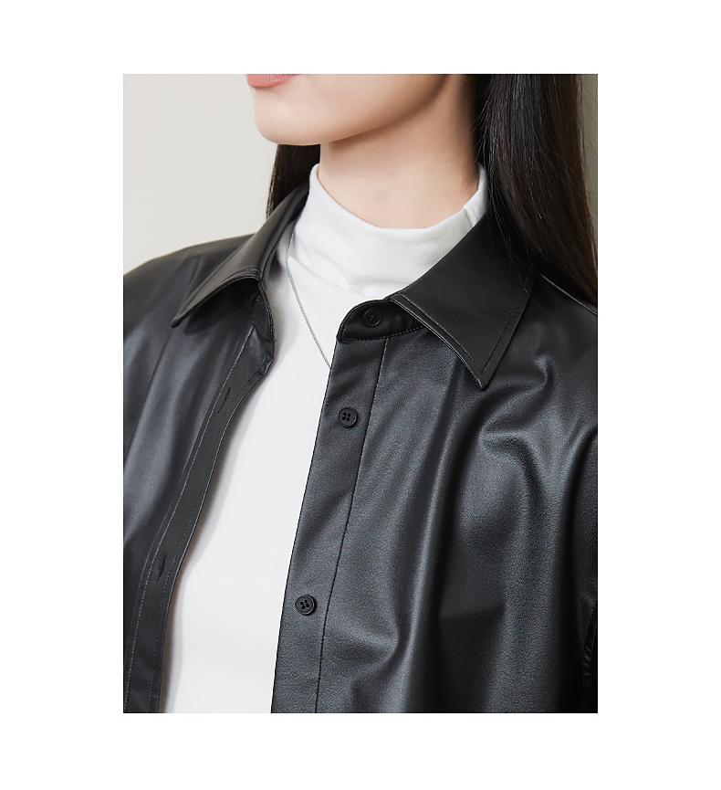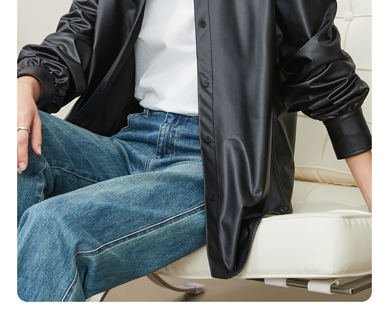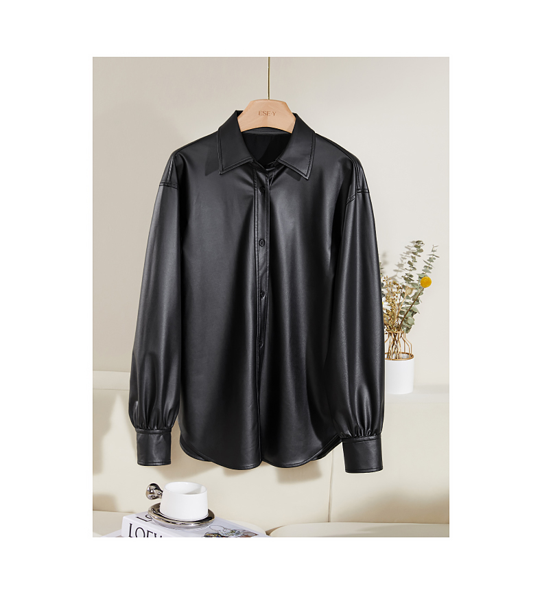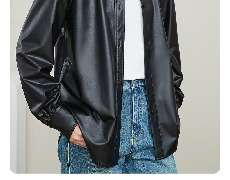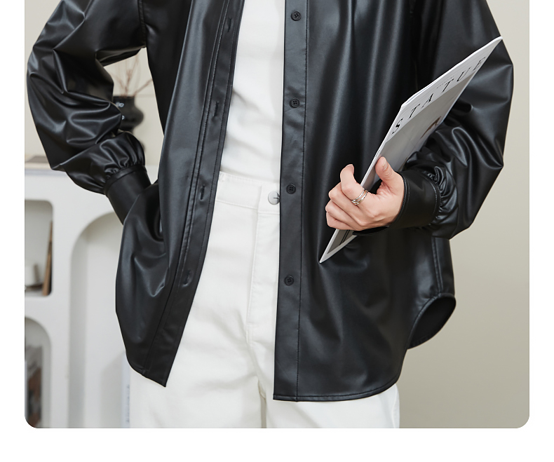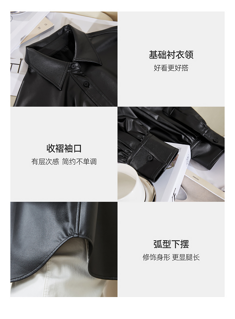 【超值!pu皮翻领衬衫】逸阳仿真皮手感衬衫高级感pu翻领上衣5023