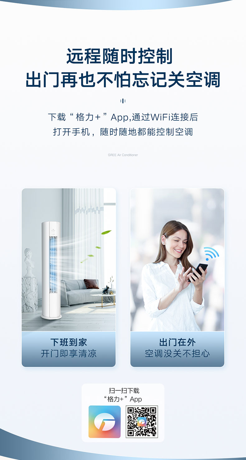 格力·天巧变频冷暖2匹一级能效柜机空调KFR-50LW/(50565)FNhAc-B1(WIFI)(皓雪白)
