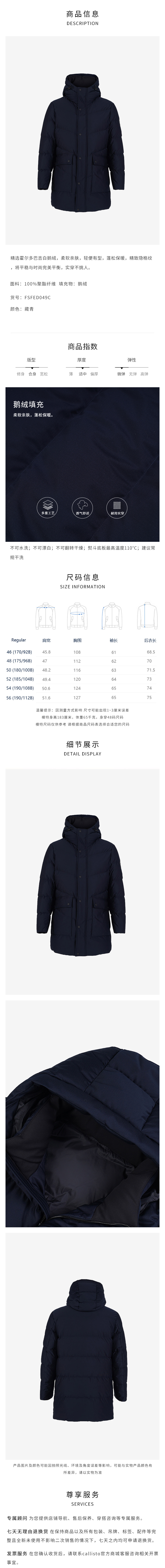 callisto藏青精选霍尔多巴吉白鹅绒羽绒 FSFED049C